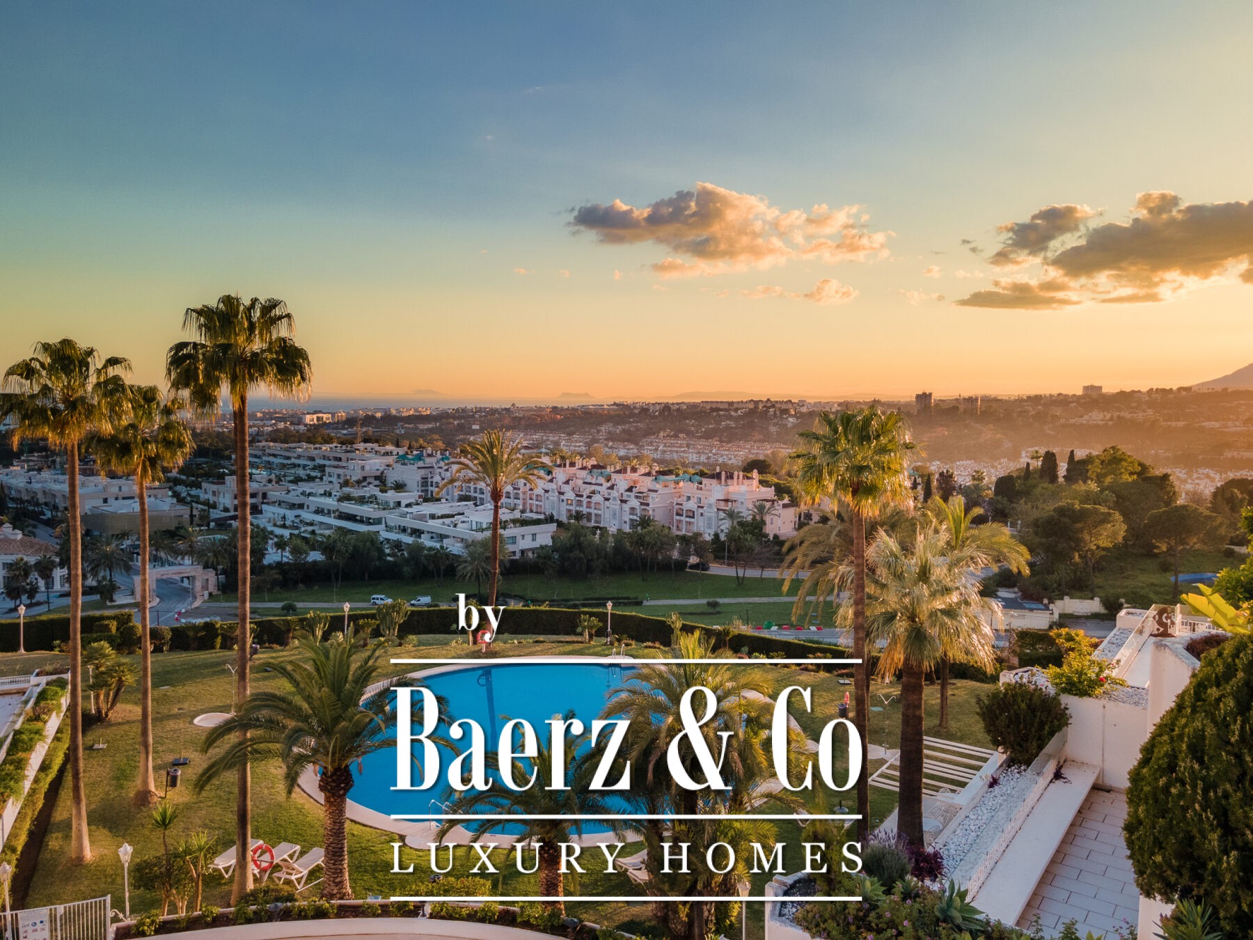 Located in the exclusive community in Marbella's Golden Mile is a fully renovated, key-ready 3-bedroom apartment with 110 m² of elegant interiors and a 20 m² terrace offering panoramic sea views. Just minutes from the beach and Puente Romano’s top restaurants, it combines luxury, comfort, and unbeatable location.