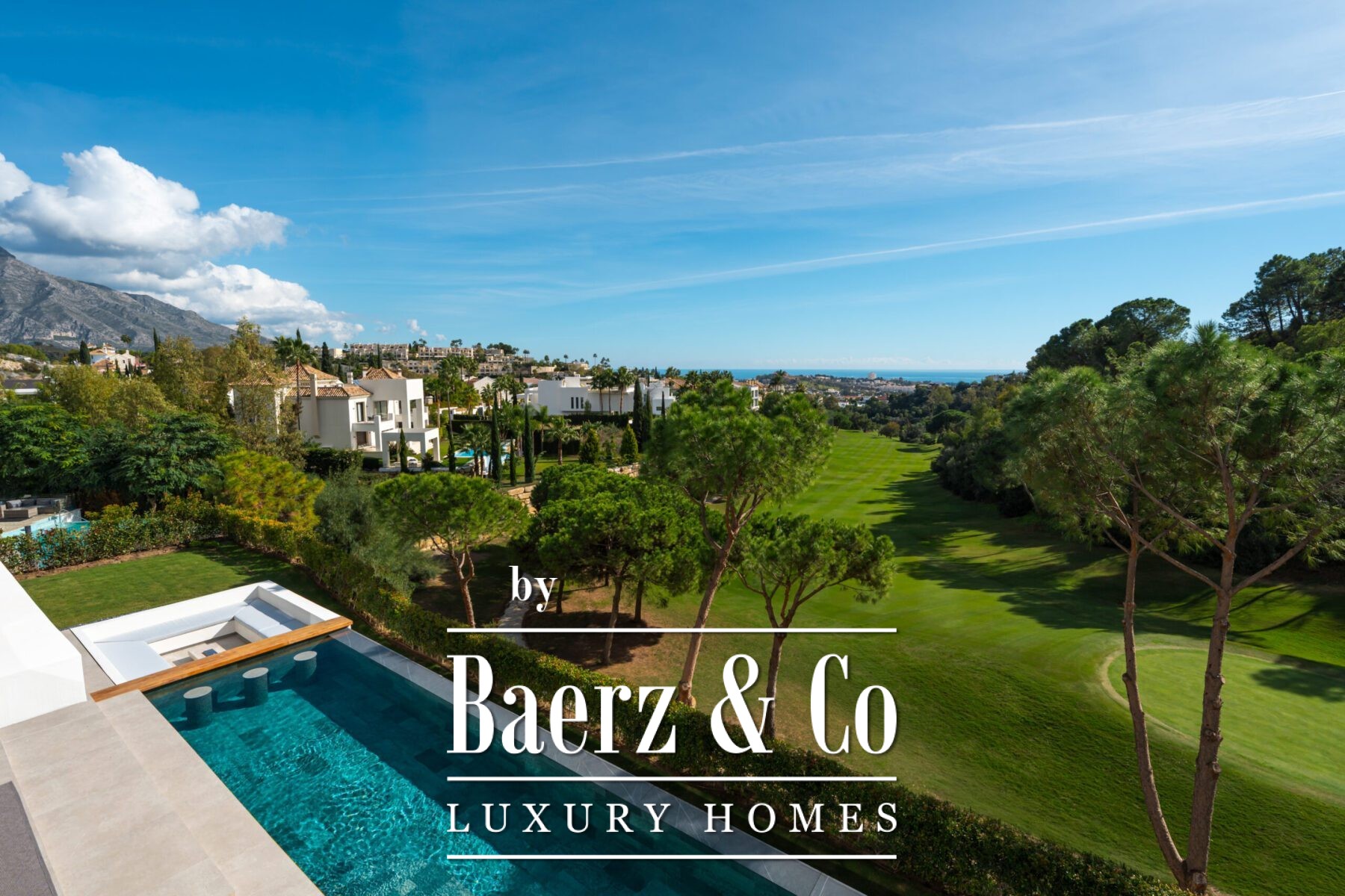 Frontline golfvilla Marbella verenigt privacy, architectonische helderheid en een onbelemmerd uitzicht over zowel de golfbaan als de Middellandse Zee. Gelegen op een perceel van 1.009 m² met een woonoppervlak van 771 m², biedt de villa een veilige, afgesloten positie binnen een van de meest exclusieve enclaves van La Quinta.