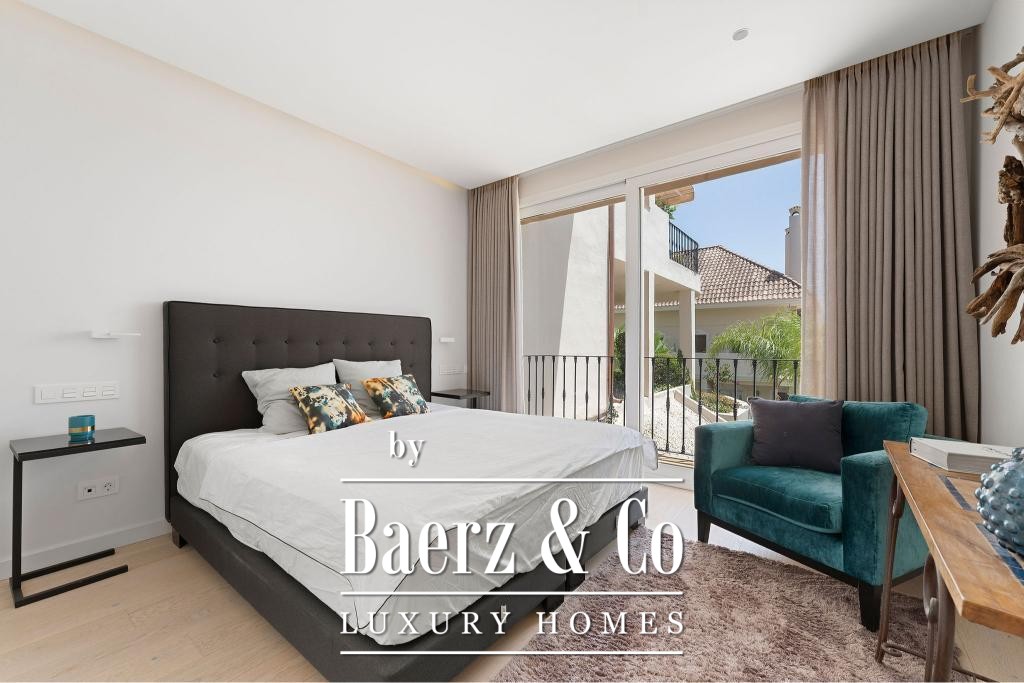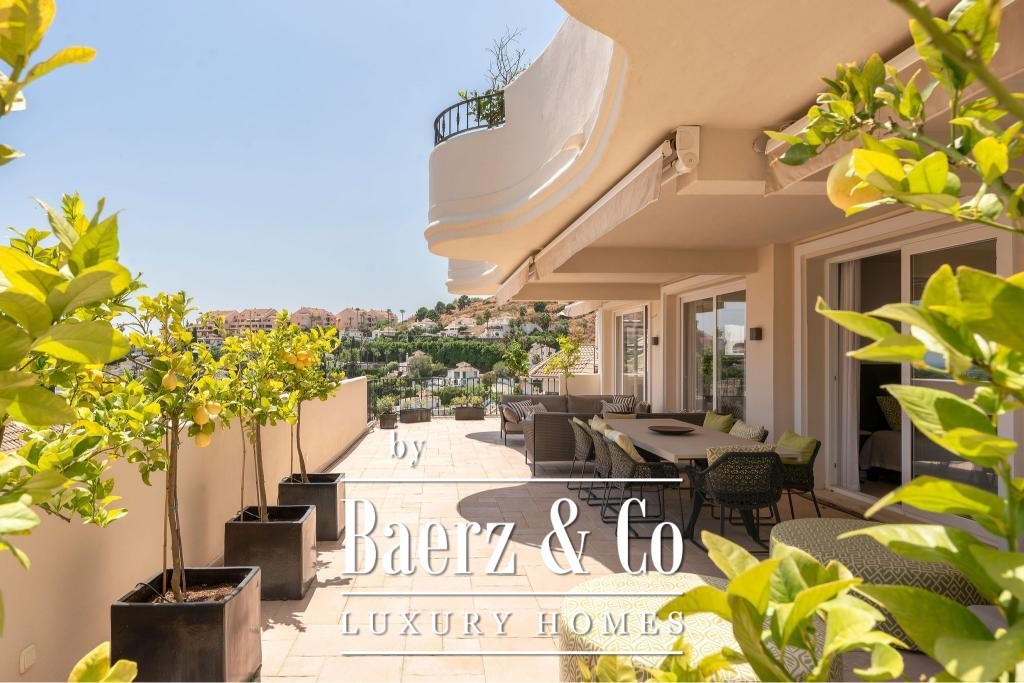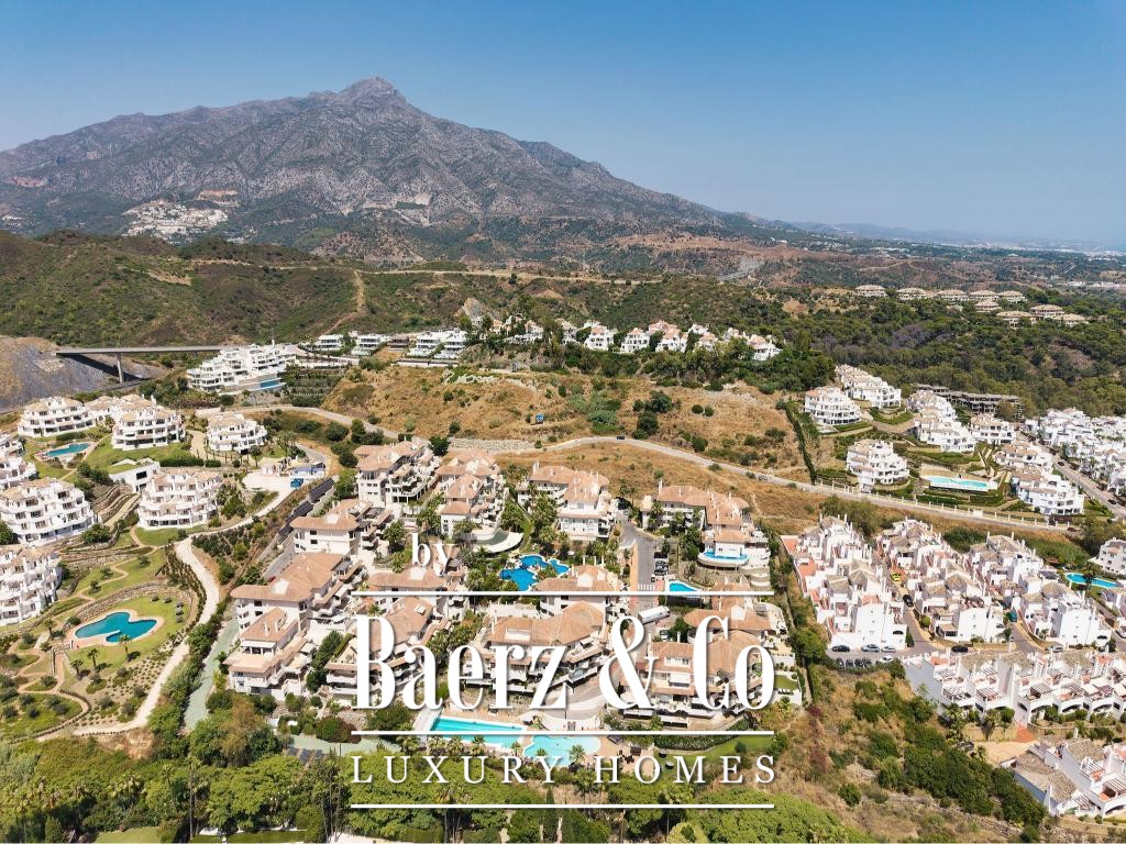 Dit duplexappartement in Marbella ligt in de geliefde Aloha-community in Nueva Andalucía en biedt een harmonieuze balans tussen hedendaagse architectuur en verfijnd design. De woning van 232 m² straalt vanaf het eerste moment discretie en comfort uit, met een royale indeling over twee verdiepingen die privacy combineert met open, gastvrije leefruimtes. De woning beschikt over vier slaapkamers en vier badkamers, elk ontworpen met oog voor rust en gebruiksgemak. Strategisch geplaatste terrassen onthullen een panoramisch uitzicht op de Middellandse Zee en de omliggende bergen.