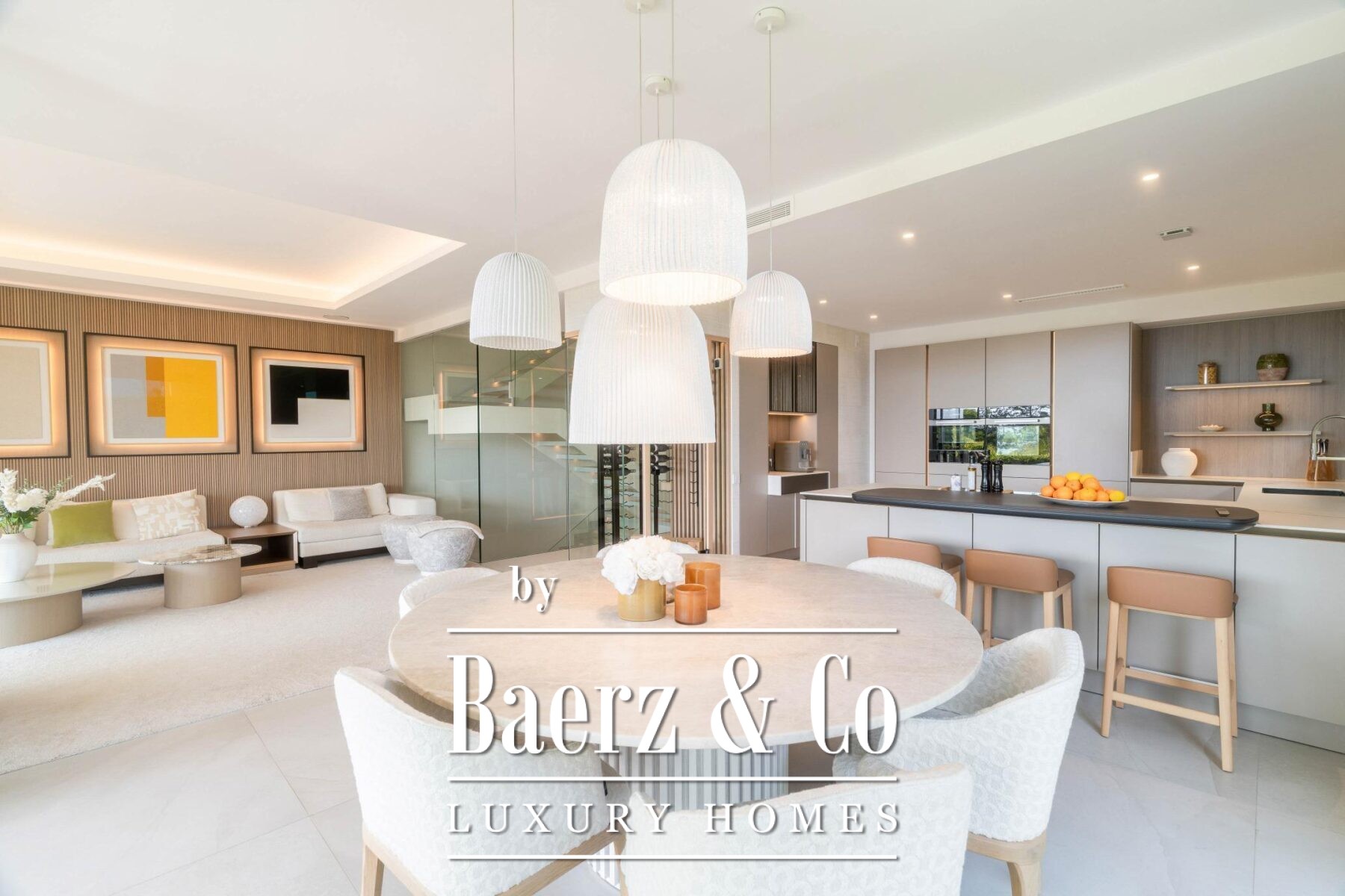 De royale leefruimtes staan in directe verbinding met een overdekt terras, ontworpen voor een naadloze overgang tussen binnen en buiten. Het op maat gemaakte dakterras met privé plunge pool biedt panoramisch uitzicht over de Golf Valley en de iconische berg La Concha. Een privé lift verbindt elk van de vier verdiepingen, waardoor elke ruimte moeiteloos toegankelijk is, terwijl de volledig uitgeruste Siematic keuken uitnodigt tot gezellige momenten samen.