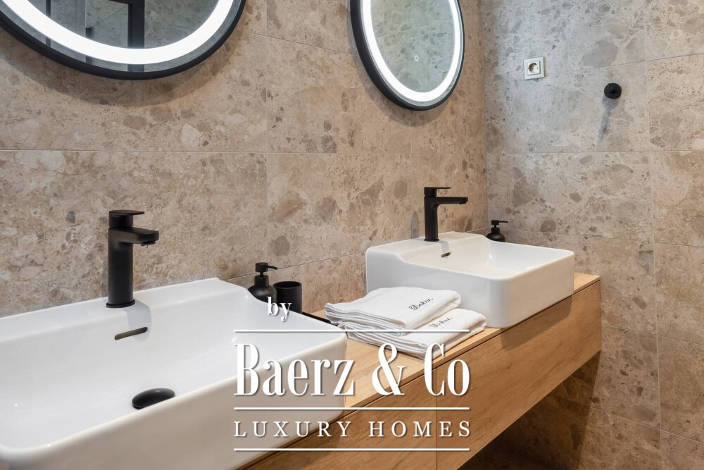 Villa Marina Kroatië ligt volledig privé op een omheind perceel van 5.613 m². Deze villa biedt 419 m² aan moderne woonruimte en is ontworpen voor wie privacy, rust en oog voor detail waardeert. De woning is verdeeld over twee verdiepingen; op de begane grond bevinden zich een ruime woonkamer, eetkamer, keuken, technische ruimte, badkamer, voorraadkamer, een slaapkamer met en suite badkamer en een garage voor twee auto’s. De bovenverdieping beschikt over vier extra slaapkamers, elk met een eigen badkamer, waarbij de praktische elegantie van een vijf-slaapkamerwoning in Marina volledig tot uiting komt.