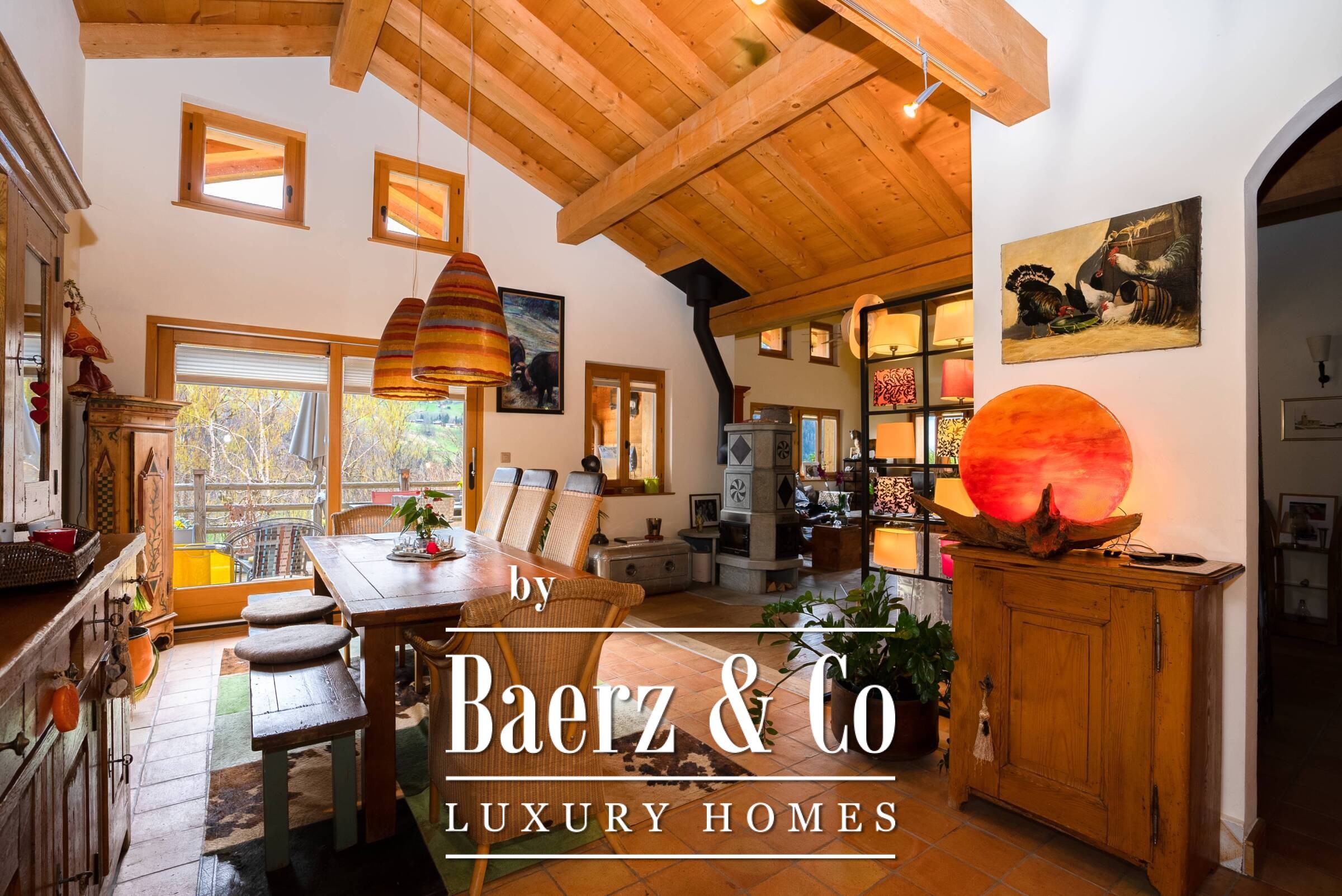 Het chalet omvat 323 m² en beschikt over een royale open woonkamer onder een imposant dak, een keuken die naadloos aansluit op de eetkamer en direct toegang tot het terras en balkon, die een spel van licht en natuurritme vangen. De master suite heeft een eigen badkamer, kleedruimte en privébalkon. De begane grond biedt bovendien een slaapkamer met en suite badkamer, een ontspanningsruimte en een studio van circa 30 m², elk met een rustige verbondenheid met de tuin. Verdere voorzieningen zijn een open haard, sauna, wasruimte en kelder; alle ontworpen met oog voor detail om het dagelijkse leven te verrijken.