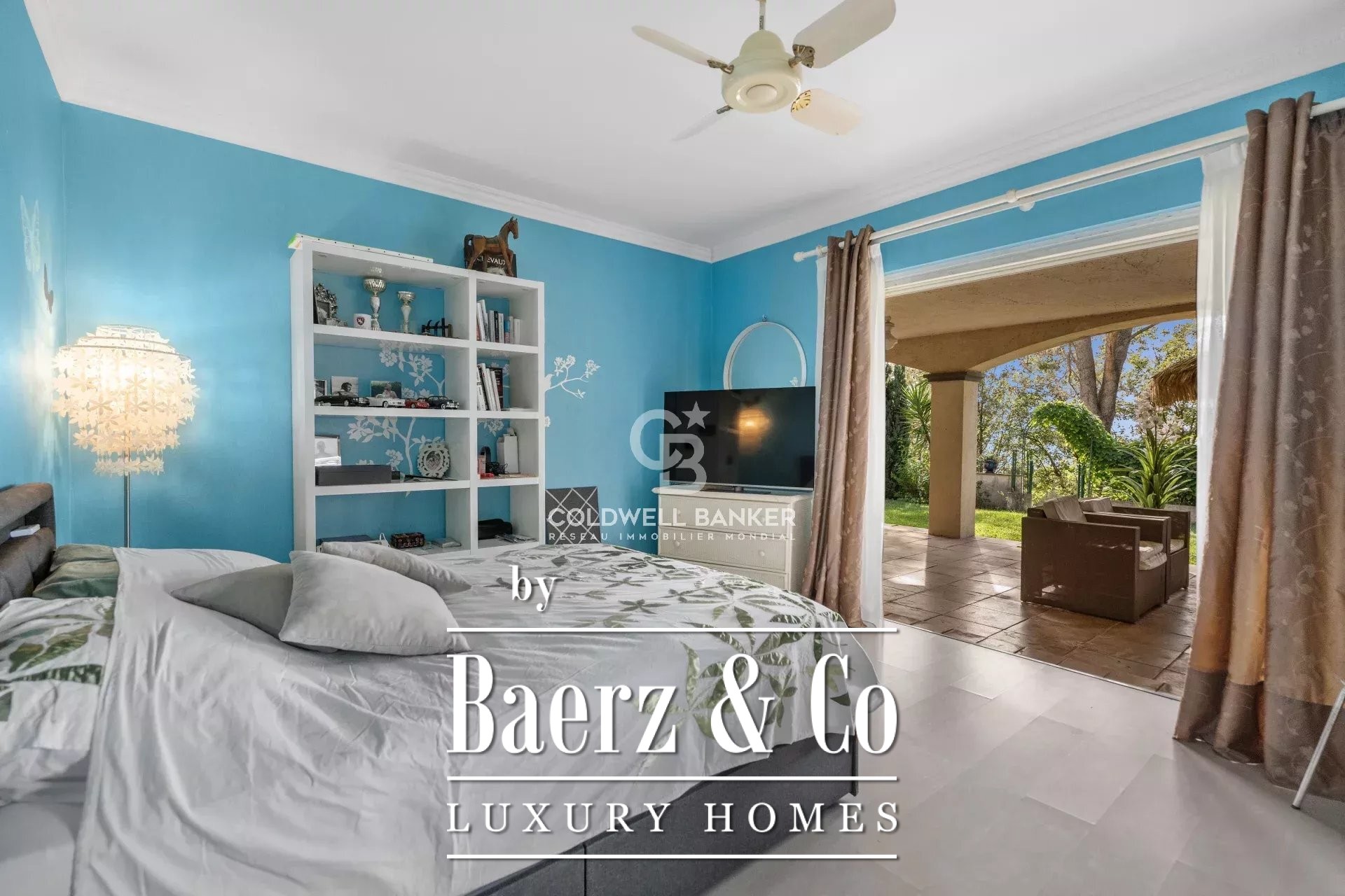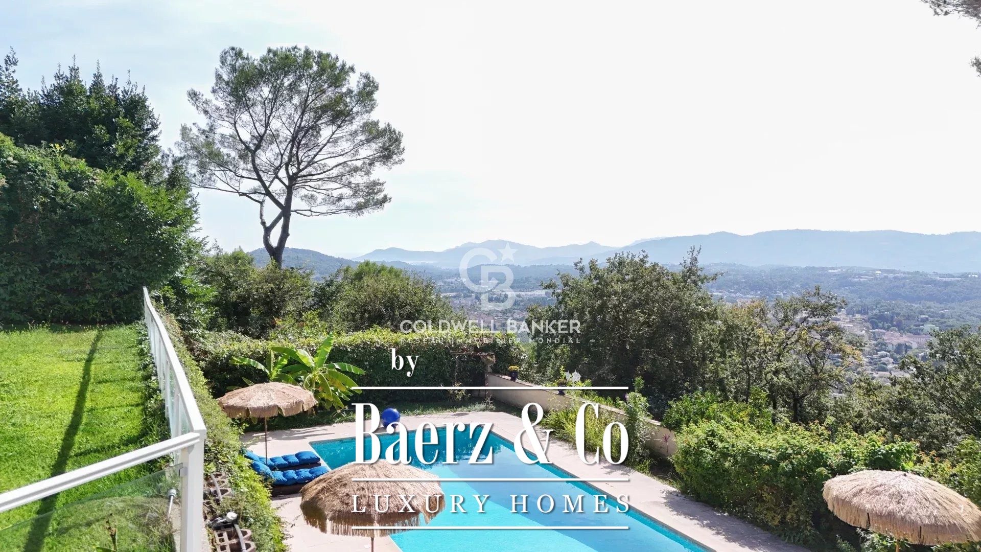Co-Exclusivity - Nice property located in absolute calm and enjoying a very beautiful view of the sea and the Esterel as well as on the surrounding hills, a few minutes from the center of Mouans Sartoux or international schools. The villa is structured on three levels: - on the ground floor: an imposing living room of 95 m2, a kitchen opening onto the pretty terrace, a master suite and a second independent suite (possibility to create a very large master