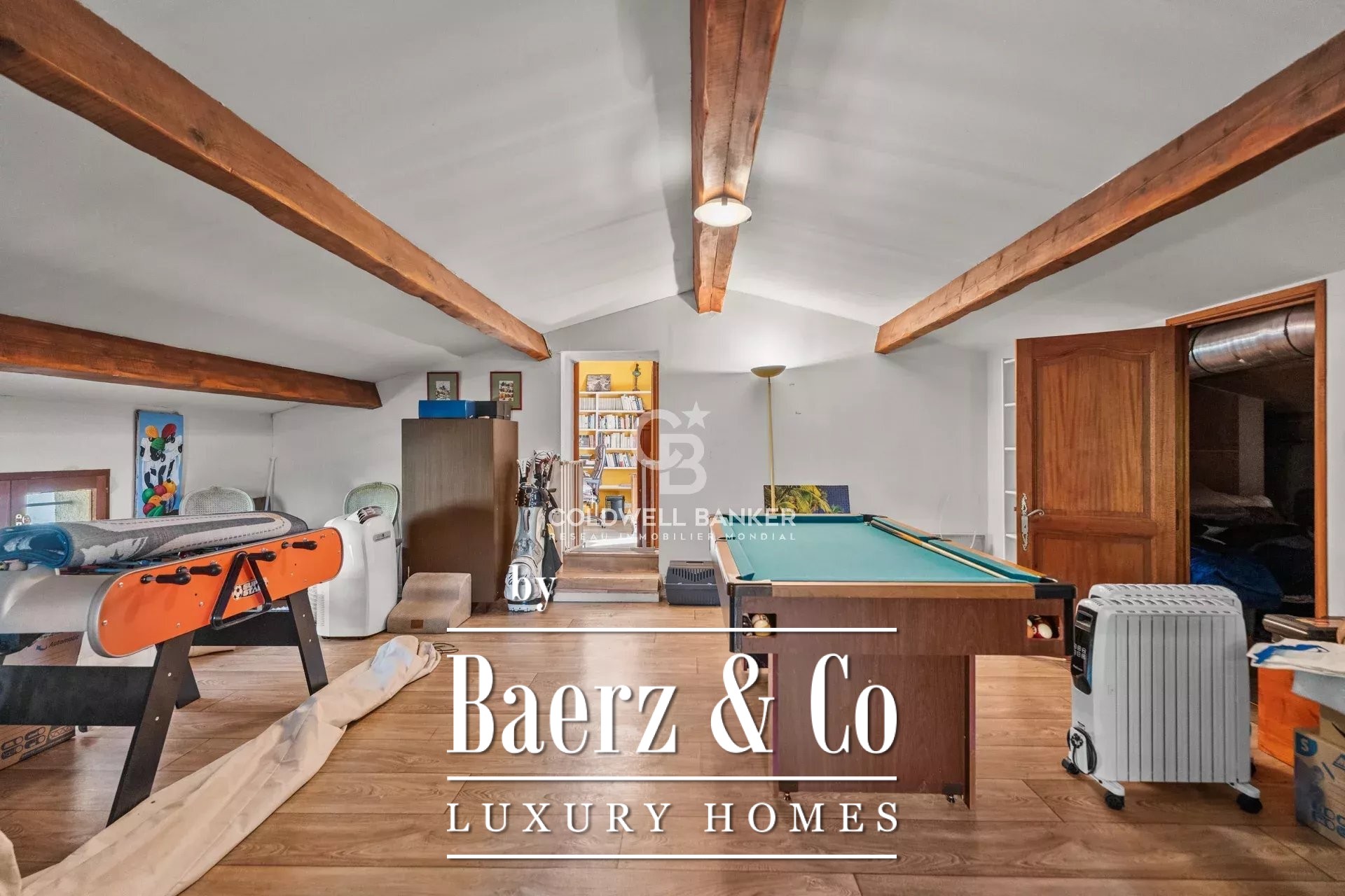 suite with bedroom, bathroom, bathroom and double dressing room). - on the upper floor: an office with terrace and a games room of m2 with attic. - on the ground floor: four bedrooms including a suite and a bathroom. Pretty garden with wide terraces decorated with a beautiful swimming pool of meters by. The property also includes a carport for four cars and a closed garage of 60 m2 easily convertible into a guest house or caretaker’s house.