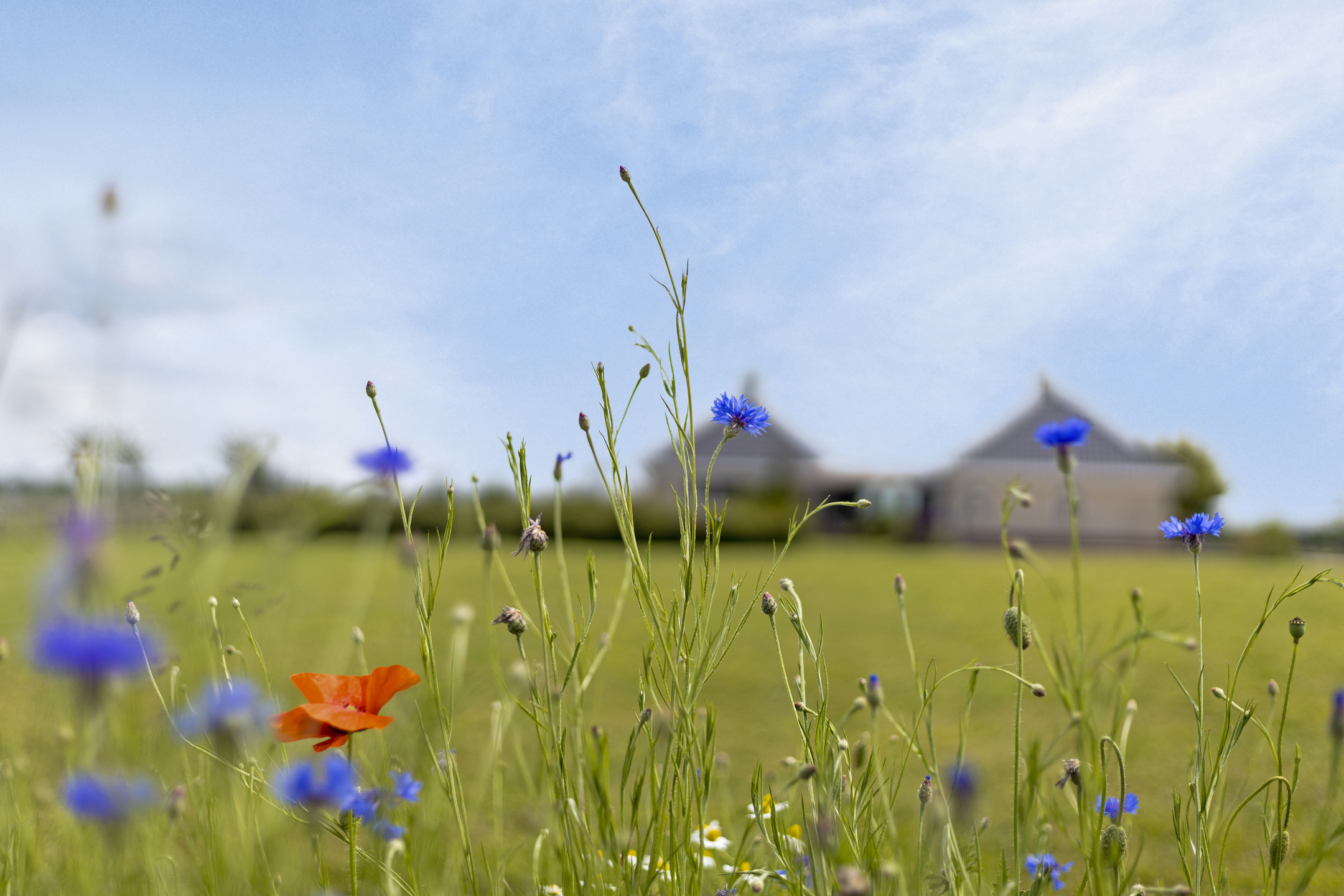 Hier belééft u het land, het weer en de seizoenen, maar bovenal beleeft u hier de natuur. De huidige bewoners hebben zich er met hart en ziel voor ingezet om van dit domein een waar Hof van Eden te maken, met oog voor biodiversiteit én esthetiek. De kleurige borders zijn een gedicht van kleur en vorm door de tuin heen. Aan de achterzijde van de tuin is een halve hectare ingezaaid met wilde bloemen, en dat is iets spectaculairs; rond mei en juni is het hier een zintuigelijk feest van geur en kleur, door de vele duizenden korenbloemen, kamilleknoppen en klaprozen.