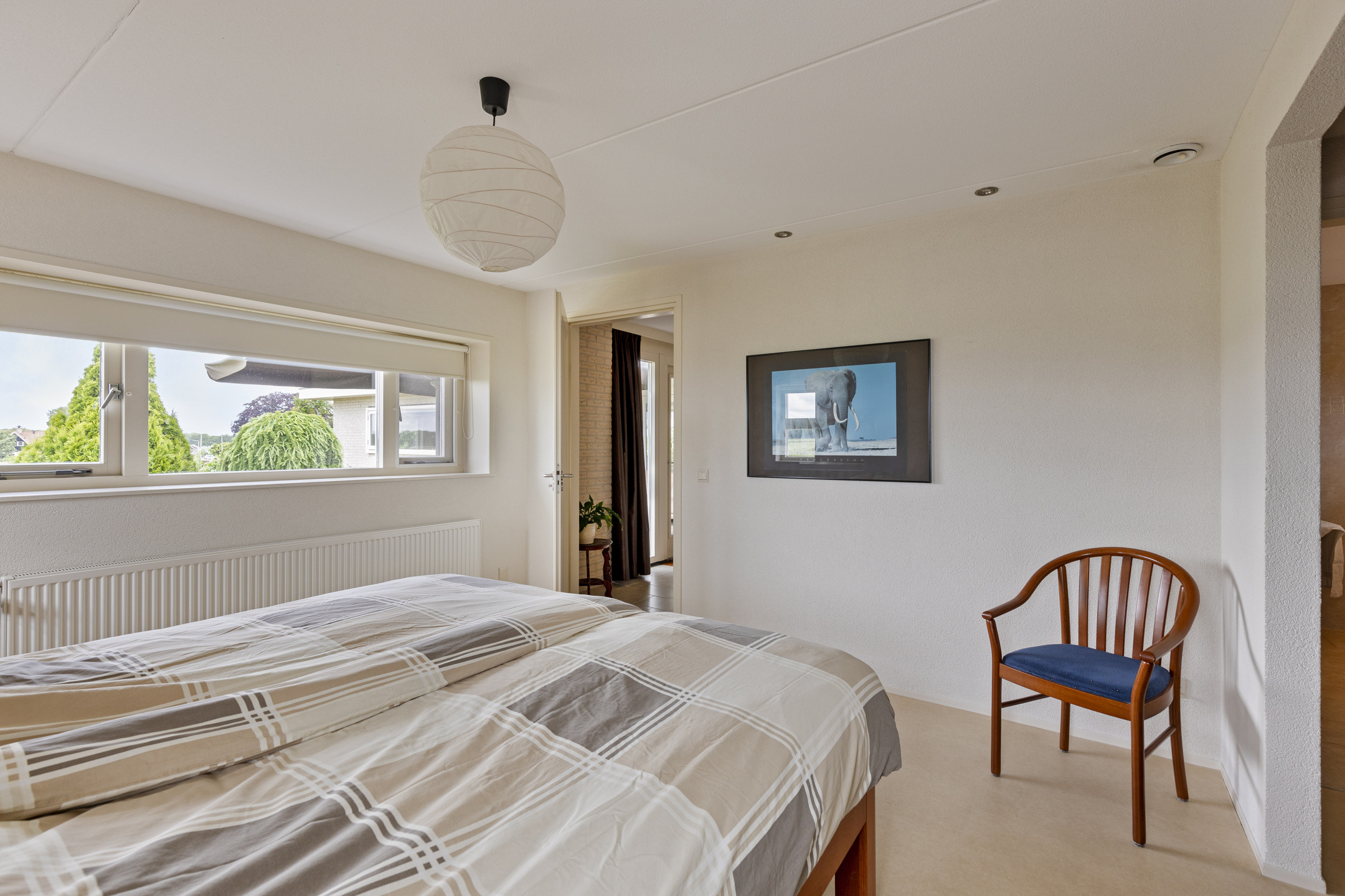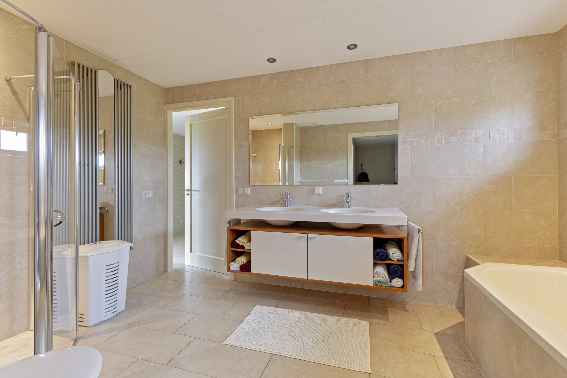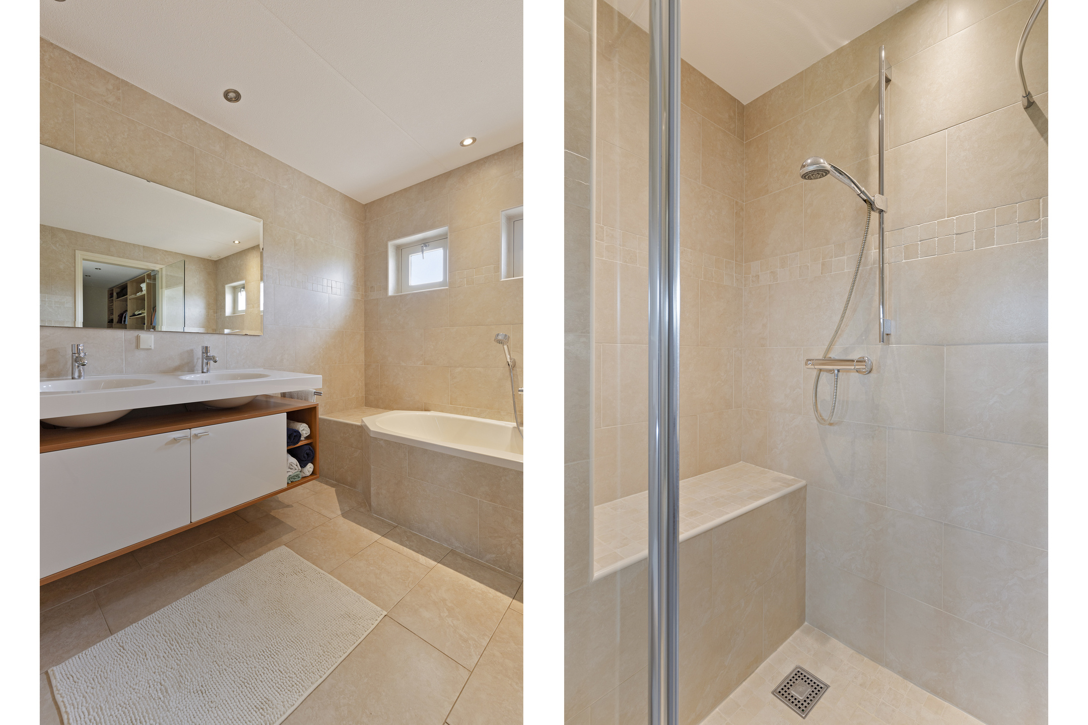 De ouderslaapkamer bevindt zich op de kop aan de achterzijde en heeft een prachtig uitzicht op de tuin en de es. Naast de kamer een grote badkamer, compleet met WC, dubbele wastafels, een douche met zitje en een heerlijke whirlpool. Voor uw garderobe is er een ruime inloopkast.