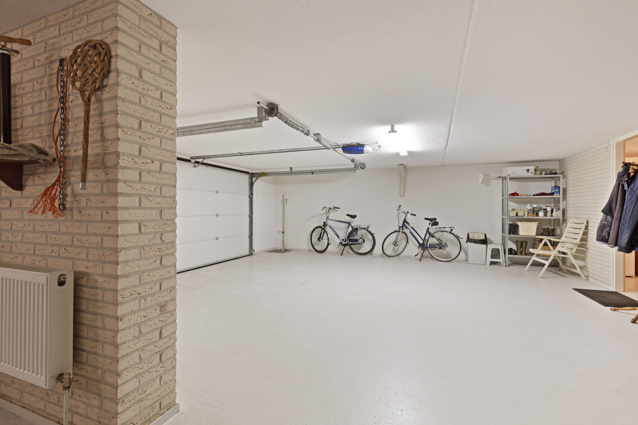 De kelder met een drive-in garage en een grote werkruimte meet een oppervlak van 75 m² en leent zich uiteraard prima voor het parkeren van de auto, fiets en grasmaaier, maar doordat de ruimte geïsoleerd is, kan hier ook met gemak de bioscoop worden ingericht, de langgewenste man-cave gerealiseerd – compleet met biljarttafel en bar, of de wellness worden ingebouwd, met sauna, dompelbad en douche.