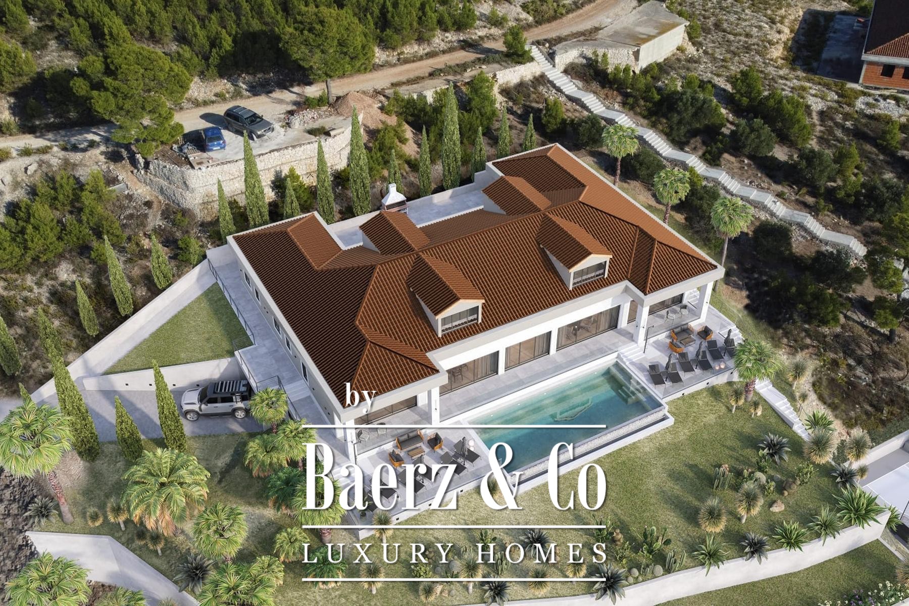 De hoofdresidentie beschikt over zes slaapkamers en zes badkamers, een doordacht ingedeelde keuken, een eetruimte en een stijlvolle woonkamer. Natuurlijke ruimtelijkheid en comfort komen overal in het huis tot uiting, versterkt door een zolderruimte van 250 m² voor extra flexibiliteit. Buiten kijkt een verwarmd infinity zwembad van 50 m² uit over de Adriatische Zee, terwijl een binnenbad van gelijke grootte, sauna, jacuzzi en gym alle seizoenen ontspanning bieden. Een garage, speelkamer en wasruimte benadrukken het doordachte luxegevoel.