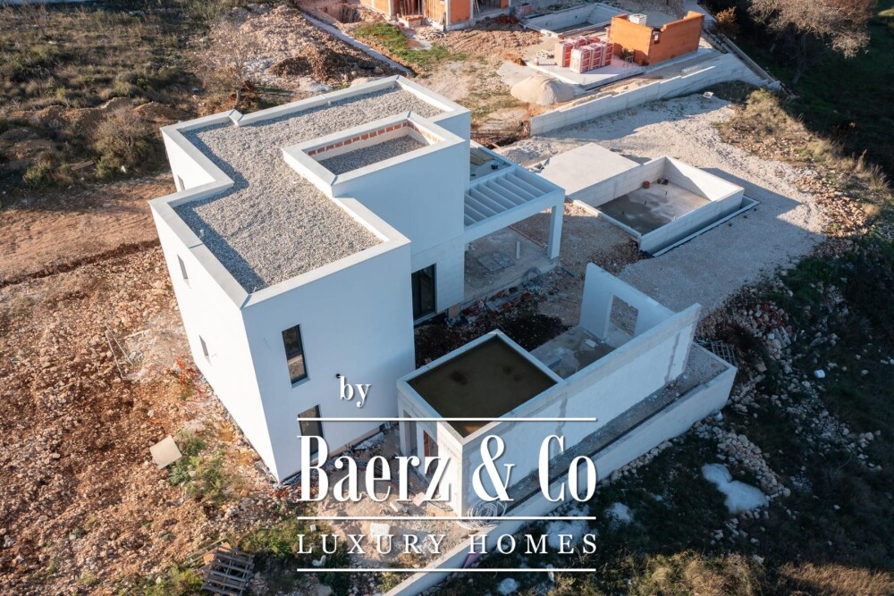 Townhouse Nin met panoramisch uitzicht op het Velebit-gebergte is een voorbeeldig toevluchtsoord, gesitueerd in de rustige omgeving van Žerava, Kroatië. Deze nagenoeg afgewerkte moderne villa beschikt over 270 m² woonruimte op een perceel van 2.172 m² en biedt een gelegenheid voor wie architectonische helderheid en de tijdloze aantrekkingskracht van ongerepte natuur weet te waarderen. Het ontwerp is doordrenkt van discretie en milieubewustzijn; de woning beschikt over vier slaapkamers met en suite badkamers, een verwarmd zoutwater-infinitypool met automatisering en vloerverwarming in de gehele woning—including verwarmde douches—zodat comfortabel jaarrond wonen vanzelfsprekend is.