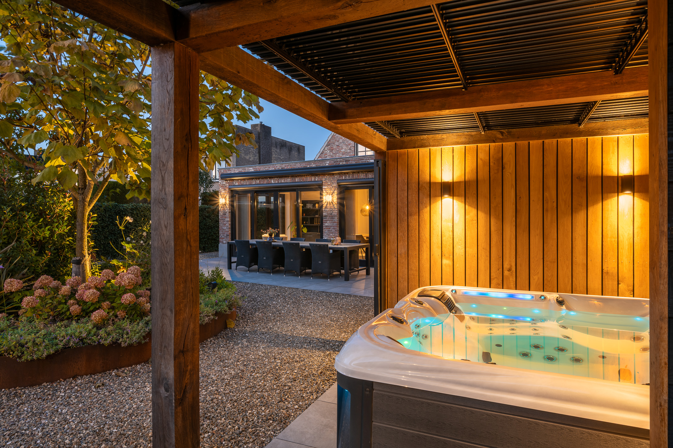 - Architectonisch aangelegde tuin met jacuzzi en overdekte buitenkeuken;
