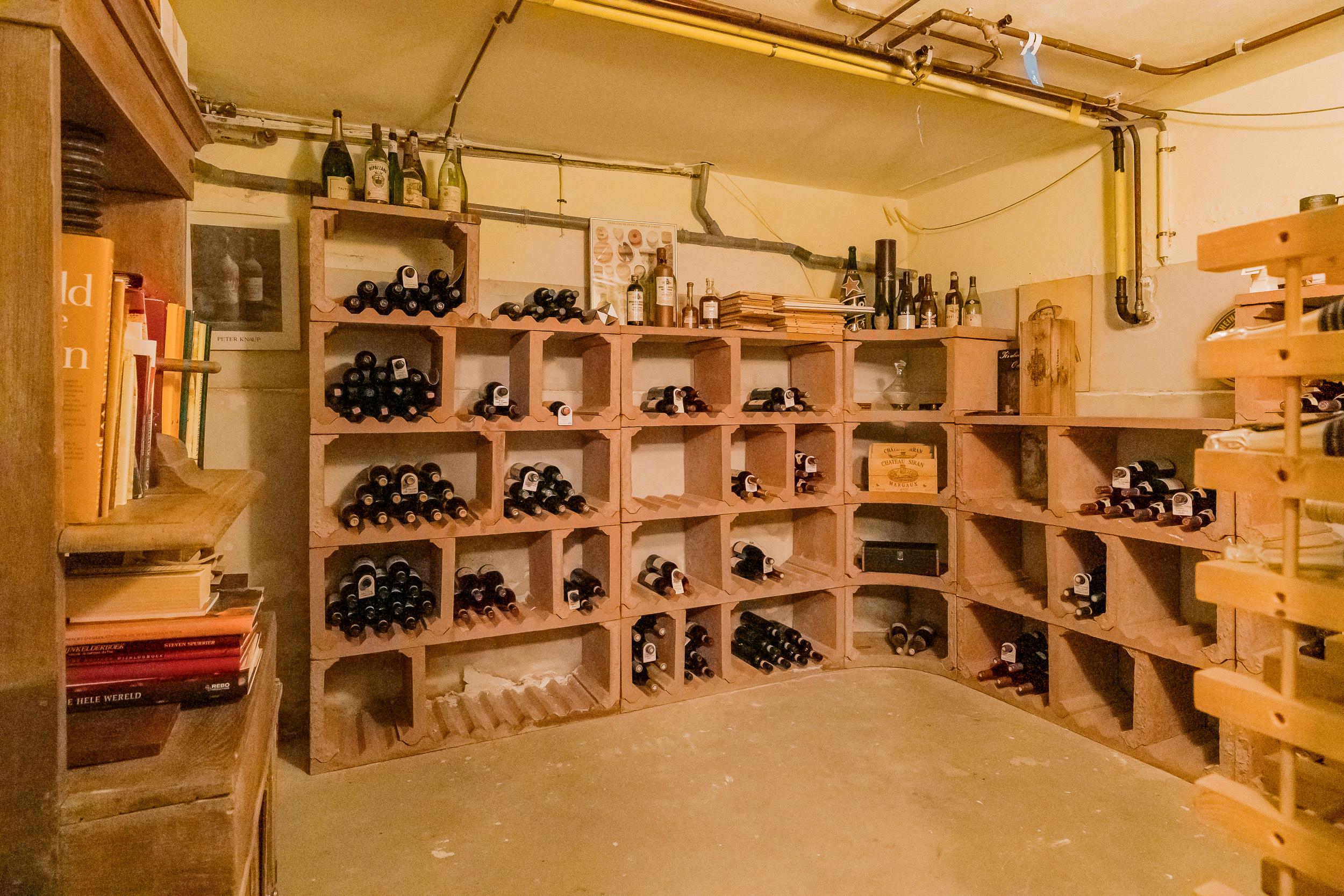 De woning is volledig onderkelderd. Hier bevinden zich de sauna met danarium, de karaktervolle wijnkelder opgebouwd met lavasteen, royale bergruimten, de garage met openslaande deuren en een deur met directe toegang tot de tuin.