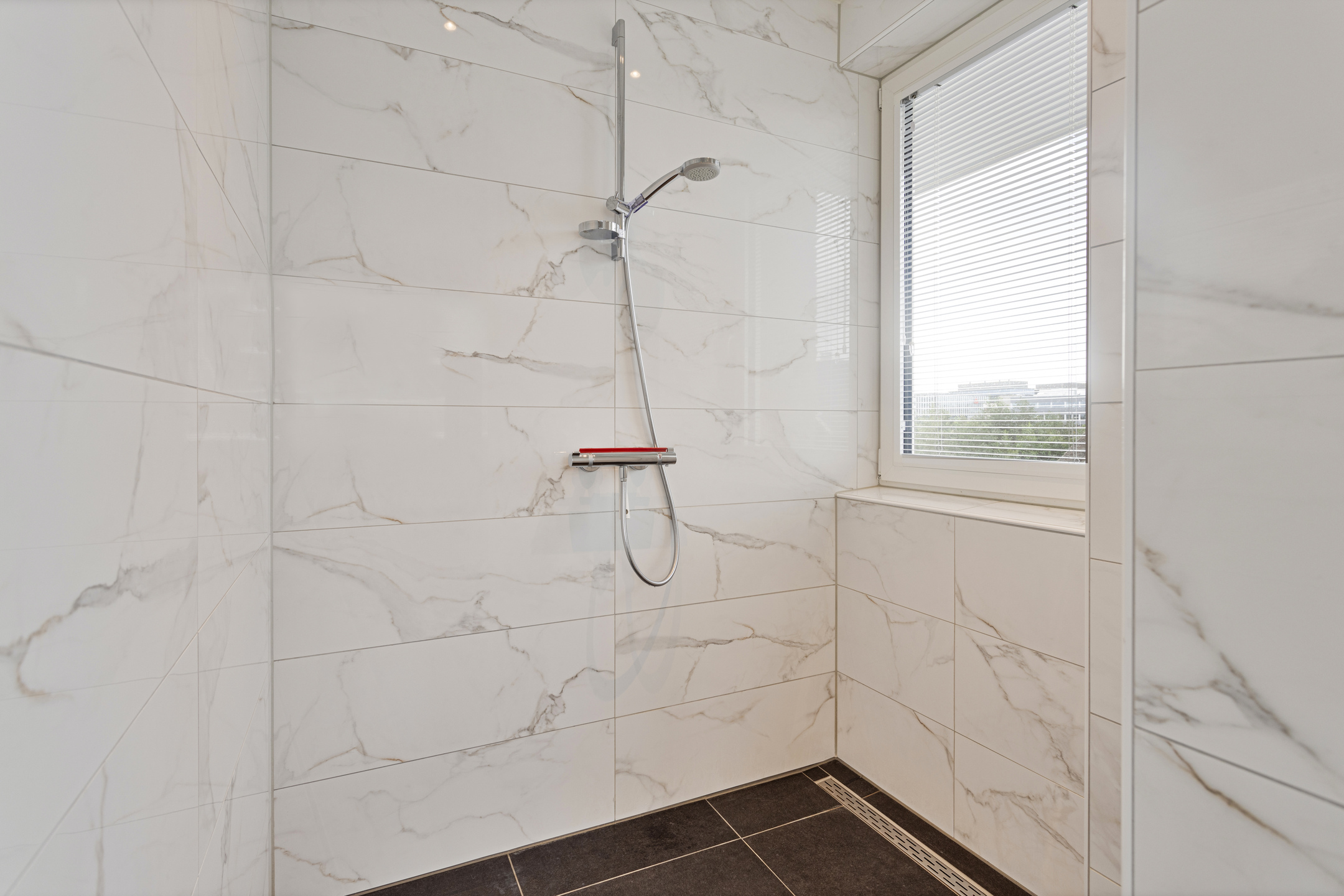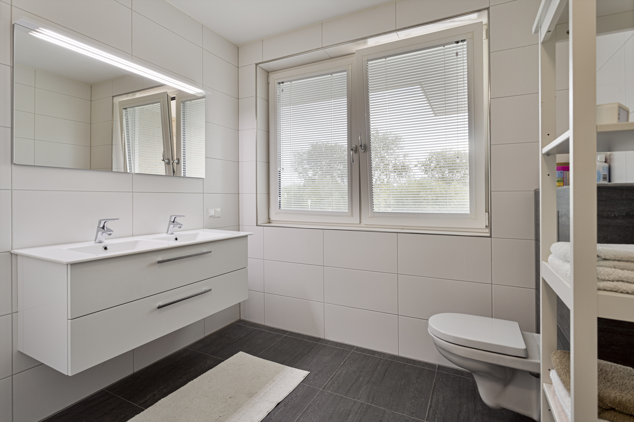 Ruime overloop met aparte wasruimte en technische ruimte. Verder treft u op deze woonlaag 4 zeer royale slaapkamers aan. De ouderslaapkamer beschikt over een zeer ruime inloopkledingkast met op maat gemaakte kasten en daarachter een luxe badkamer en suite voorzien van bad, douche, dubbele wastafel en toilet. Eén van de andere slaapkamers beschikt ook over een badkamer en suite (met douche, wastafel en toilet). De andere twee slaapkamers delen een prachtige ruime (3e!) badkamer met douche, dubbele wastafel en toilet. Een luik op de overloop geeft toegang tot een zeer ruimte bergzolder.