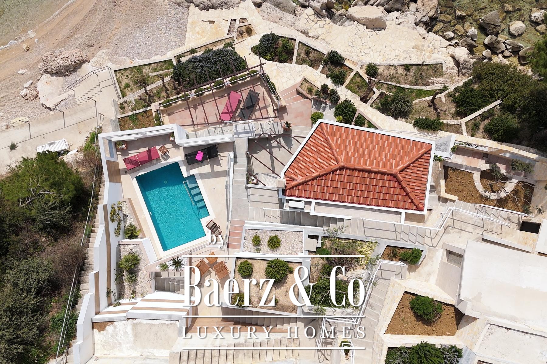 Het perceel van 650 m² omvat drie afzonderlijke eenheden met in totaal vijf slaapkamers en vijf badkamers, ontworpen voor flexibiliteit en privacy. Het Beach House is een lichte, compacte retreat direct aan het water, terwijl het gerenoveerde en volledig verhuurklare beneden duplex appartement een open verbinding biedt tussen wonen, eten en het terras met zeezicht; de huidige verhuurprestaties laten een gastbeoordeling van 10,0 en een seizoensgebonden netto-inkomen van circa € 40.000 zien. De bovenste duplex, met twee terrassen, biedt een inspirerende basis voor renovatie en er zijn architectonische concepten beschikbaar.