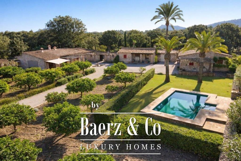 Landgoed te koop in Pollença, een uitzonderlijk toevluchtsoord op 172.483 m² rustiek Mallorquijns landschap, waar volledige privacy en weidse bergzichten samenkomen. Het hoofdgebouw beslaat 1.307 m² en omvat drie zelfstandige bungalows, verbonden door veranda’s, terrassen en aangelegde tuinen. Deze gastenverblijven, zo’n twintig jaar geleden gebouwd, zijn zorgvuldig onderhouden en harmonieus gekoppeld door uitnodigende buitenruimtes.