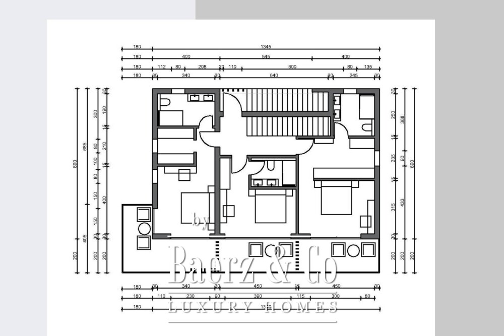 Op de eerste verdieping bieden drie slaapkamers elk een ensuite badkamer en direct toegang tot de overdekte terras. Via een buitentrap bereikt u het privé dakterras met jacuzzi en een royaal zonnegedeelte, met panoramisch uitzicht over de omgeving. Deze luxe townhouse in Poreč maakt deel uit van een exclusief ensemble van drie villa’s, waar privacy en nabijheid tot de zee samenkomen. De oplevering staat gepland voor 2024.