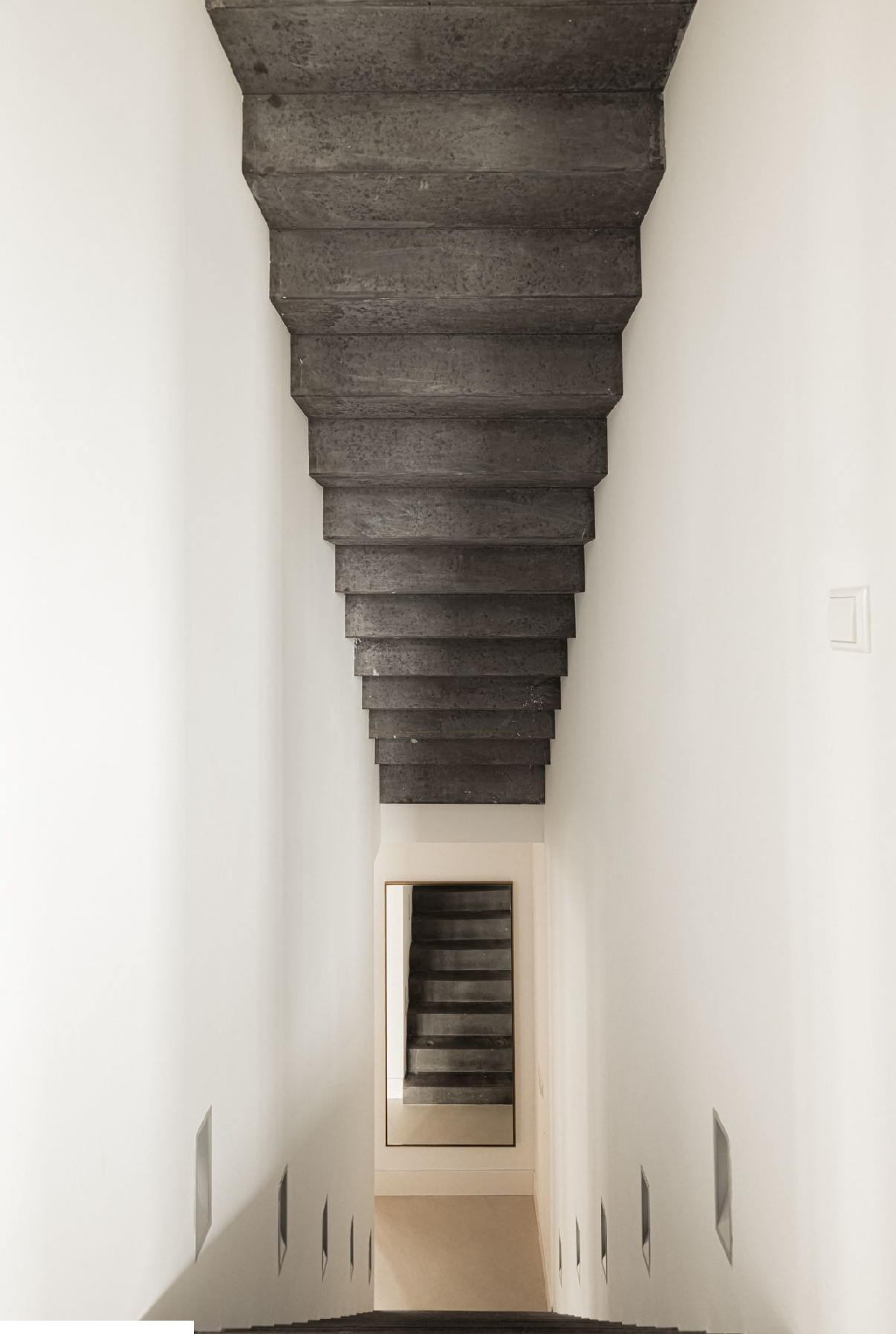 Door de verdiepte binnen patio is er veel natuurlijk licht op deze woonverdieping met hoge plafonds. De vier slaapkamers, hebben ook hier elk een eigen badkamer. Verder tref je hier 2 bergingen, technische ruimte en strijk-/ wasruimte. Vanuit de centrale hal met hoge openslaande deuren loop je de privacy biedende patio in. Met een buitentrap loop je zo naar de achtertuin en het zwembad.
