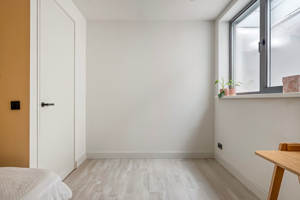Beide slaapkamers in het souterrain zijn goed onderhouden en voorzien van voldoende lichtinval. De ruimtes bieden genoeg plaats voor een tweepersoonsbed, bureau en kast, en zijn netjes afgewerkt.