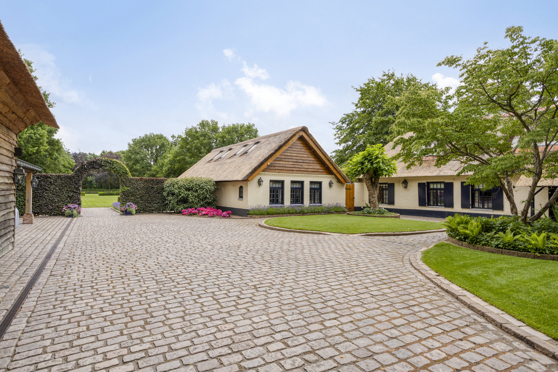In een rustige straat aan de rand van Riethoven op een magnifiek perceel van 6.755 m² gelegen prachtige in oude stijl gerenoveerde woonboerderij met rieten kap. De woning is smaakvol verbouwd en beschikt over een groot, vrijstaand gastenverblijf, een royaal bijgebouw met ontspanningsruimte en fitnessruimte/gym, een ruime carport voor meerdere auto's en een prachtig aangelegde parkachtige tuin op het westen.