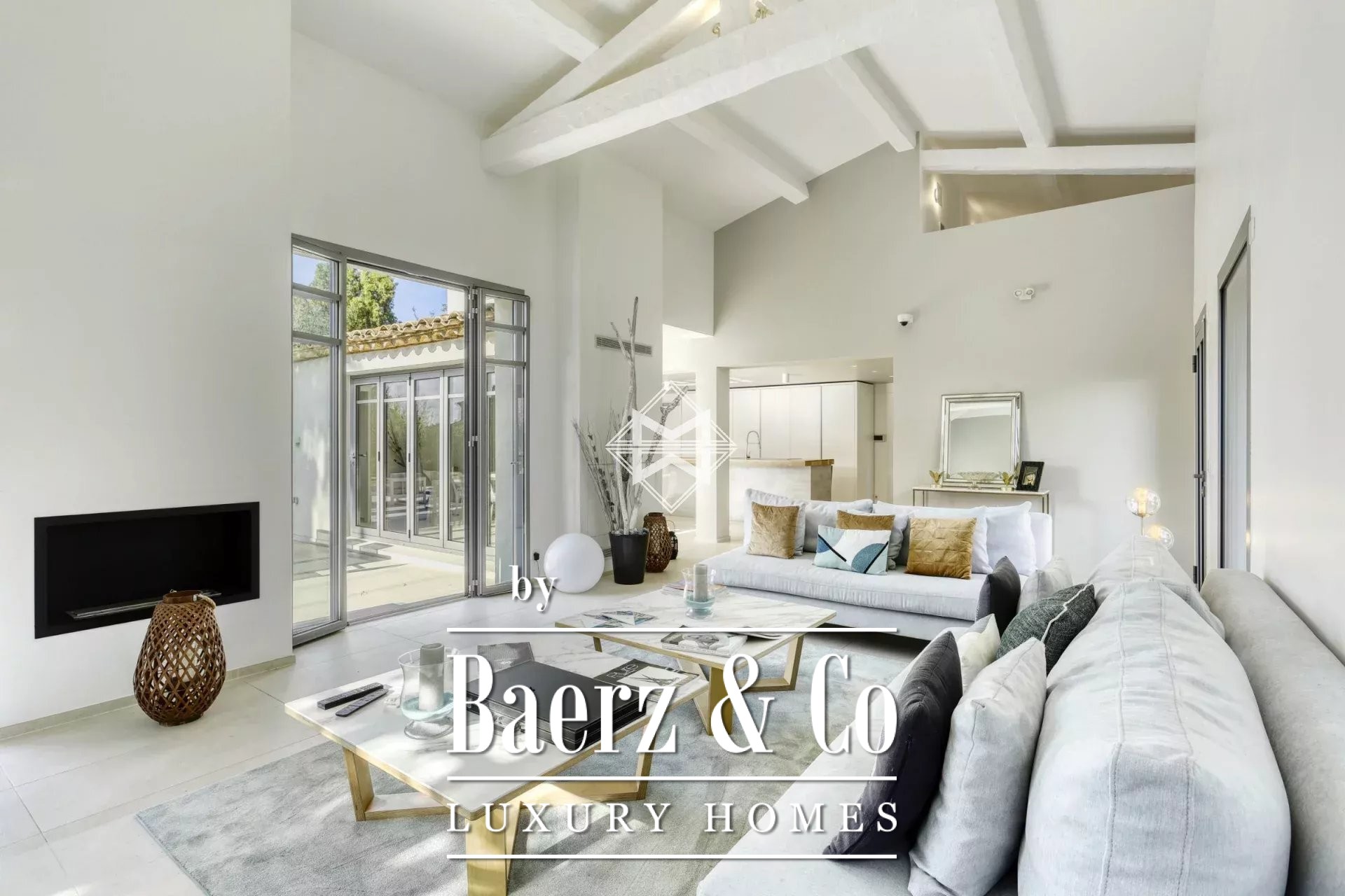 Villa Saint-Tropez combineert moderne en Provençaalse lijnen in een serene omgeving, op slechts vier minuten lopen van het strand van Canoubiers. Deze villa nodigt uit tot een ontspannen levensstijl en ligt op een royaal perceel van 1.745 m², waar het natuurlijke licht en de rust centraal staan.