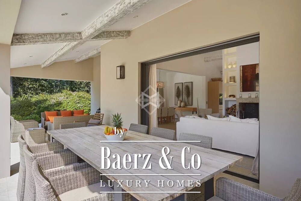 Elke van de vijf slaapkamers met en-suite badkamer is doordacht ingericht om optimaal comfort en privacy te garanderen, terwijl geavanceerde domotica het gemak en de veiligheid verhoogt. De villa is volledig geïntegreerd in haar omgeving en opent naar een perceel van 2.387 m², omzoomd door volwassen, weelderige beplanting. De verwarmde buitenzwembad vormt het centrale punt, perfect gepositioneerd voor zon en privacy, met een onbelemmerd uitzicht over de heuvels en tuinen.