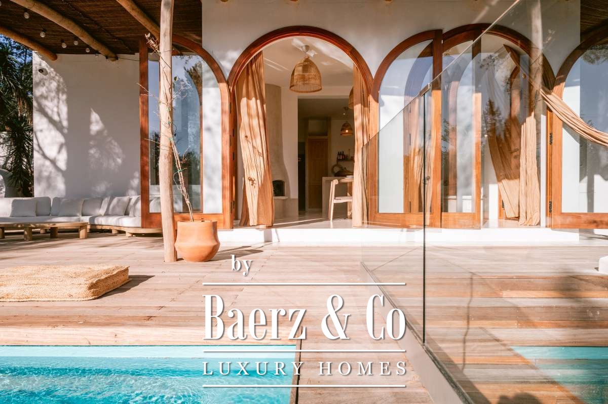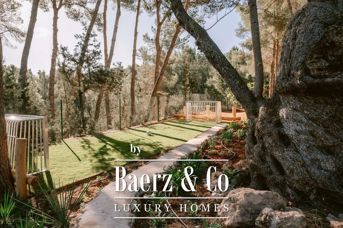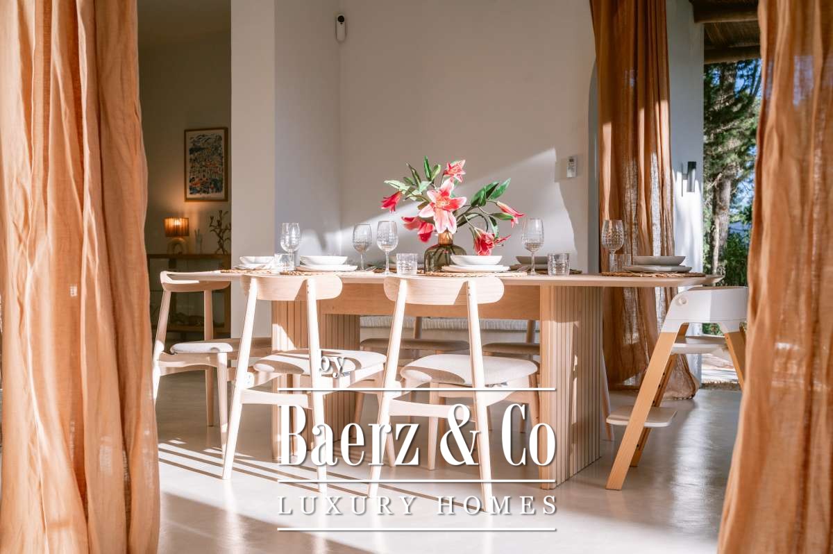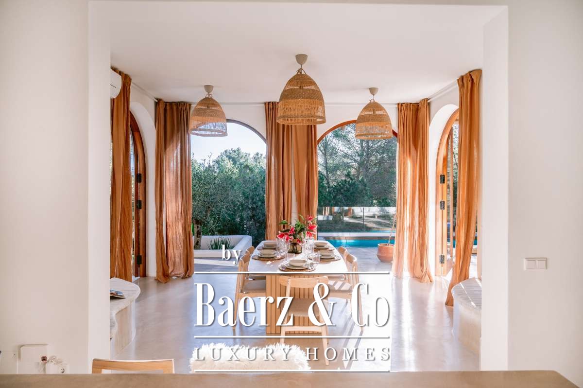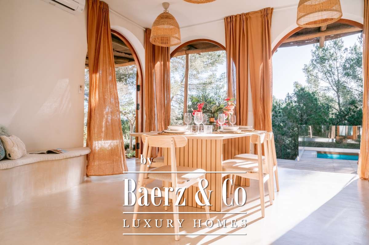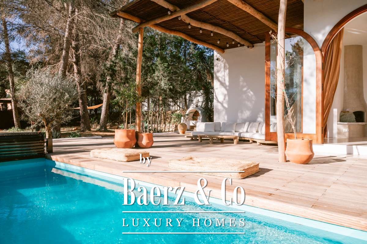 De omgevingGelegen in het prachtige en groene San Agustín ligt deze villa in een bosrijke omgeving waar privacy en natuur samenkomen. Hier is het authentieke Ibiza-gevoel nog duidelijk aanwezig, ver weg van de drukte maar toch centraal gelegen. Verscholen op een volledig omheind perceel ontstaat een oase van rust, terwijl gezellige restaurants, lokale hotspots en enkele van de mooiste stranden van de westkust zich op korte afstand bevinden. Een plek waar het buitenleven centraal staat, met lange lunches, zonsopkomsten, zonsondergangen en een ontspannen sfeer die kenmerkend is voor Ibiza.De villaDeze volledig gerenoveerde villa beschikt over een bebouwde oppervlakte van circa 175 m² en is gelegen op een royaal perceel van 1.783 m². De woning telt vier slaapkamers en twee badkamers en wordt volledig gemeubileerd aangeboden, waardoor deze direct instapklaar is. De sfeer in huis is warm, stijlvol en ontspannen, met een uitgesproken binnen-buitengevoel dat perfect aansluit bij de natuurlijke omgeving.De indeling is overzichtelijk en comfortabel, met lichte leefruimtes en een natuurlijke verbinding tussen binnen en buiten. Grote raampartijen zorgen voor veel daglicht en versterken het gevoel van ruimte en rust. De villa is met zorg gerenoveerd en combineert comfort met een eigentijdse, zachte afwerking. Daarnaast beschikt de woning over een kelder, die een waardevolle aanvulling vormt op het geheel. Ook het dakterras vormt een mooie aanvulling en biedt een extra plek om in alle rust van de omgeving te genieten.De buitenruimtesDe buitenruimtes geven deze woning een uitgesproken ontspannen en luxe karakter. Op het royale perceel bevindt zich een grote tuin met meerdere outdoor-loungeplekken, waardoor er op elk moment van de dag een fijne plek is om te ontspannen, te dineren of gasten te ontvangen. Het verwarmde zoutwaterzwembad vormt het centrale punt van de tuin en maakt het mogelijk om het hele jaar door van het buitenleven te genieten.Daarnaast beschikt het perceel over een eigen voetbalveld, een kabelbaan en volop ruimte voor zowel ontspanning als activiteit, wat deze villa ook zeer geschikt maakt voor families. Er is een overdekte parkeerplaats voor twee auto’s en in totaal zijn er vier parkeerplekken aanwezig. Dankzij de bosrijke setting, het volledig omheinde perceel en de vele beschutte zithoeken ontstaat een uitzonderlijk gevoel van vrijheid en rust. Deze villa in San Agustín is daarmee een ideale woning voor eigen gebruik, als luxe vakantieverblijf of als investering op een bijzondere plek op Ibiza.