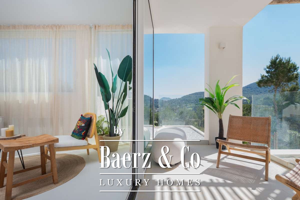 De omgevingVerscholen in de groene heuvels van het westen van Ibiza biedt deze villa een zeldzame combinatie van rust, ruimte en indrukwekkende vergezichten. Gelegen op een royaal perceel van maar liefst 19.600 m² geniet u hier van absolute privacy, omringd door mediterrane natuur en glooiende heuvels. Vanaf verschillende plekken op het terrein kijkt u uit over het landschap met in de verte zelfs een glimp van de zee. Tegelijkertijd liggen het charmante San José en enkele van Ibiza’s mooiste stranden, zoals Cala Tarida, Cala Conta en Cala Bassa, op korte rijafstand.De villaDe villa beschikt over een totale woonoppervlakte van circa 330 m², inclusief een ruim souterrain van ongeveer 120 m², en combineert comfort, ruimte en privacy op een unieke manier. Met vier slaapkamers en drie badkamers is de woning perfect ingericht voor zowel familie als gasten, terwijl de royale opzet zorgt voor een ontspannen en luxe woonervaring. Grote raampartijen laten het daglicht rijkelijk binnenstromen en creëren een prachtige verbinding tussen de binnenruimtes en het omliggende landschap. Het comfortniveau ligt hoog: vloerverwarming en airconditioning in alle ruimtes zorgen het hele jaar door voor een aangenaam klimaat. Daarnaast beschikt de villa over diverse luxe voorzieningen zoals een indoor gym, sauna, jacuzzi en een wijnkelder van circa 20 m². Ook technisch is de woning uitstekend uitgerust met zonnepanelen, een batterijopslag van 32 kW en een watertank die wordt gevuld via een gemeenschappelijke bron.De buitenruimtesDe buitenruimtes vormen het hart van deze villa en zijn ontworpen om optimaal te genieten van het mediterrane buitenleven. Rondom de woning liggen meerdere terrassen met een totale oppervlakte van circa 300 m², waar zon, uitzicht en privacy samenkomen. Het infinity zwembad van ongeveer 30 m² met natuurlijke waterval vormt het stralende middelpunt en lijkt naadloos over te vloeien in het omliggende landschap. Daarnaast beschikt het terrein over een stijlvolle outdoor living van circa 100 m², een perfecte setting voor lange zomerdagen, diners onder de sterren en ontspannen momenten met vrienden en familie. Verspreid over het perceel bevinden zich verschillende loungeplekken en een buiten gym van circa 30 m². Binnen de huidige vraagprijs behoort tevens de mogelijkheid tot het plaatsen van een mobiele padelbaan. Ook is er een charmant houten gastenverblijf van circa 20 m² met eigen terras en een carport van circa 40 m². Dankzij het royale perceel en de uitzonderlijke privacy voelt deze villa als een privéresort midden in de natuur.