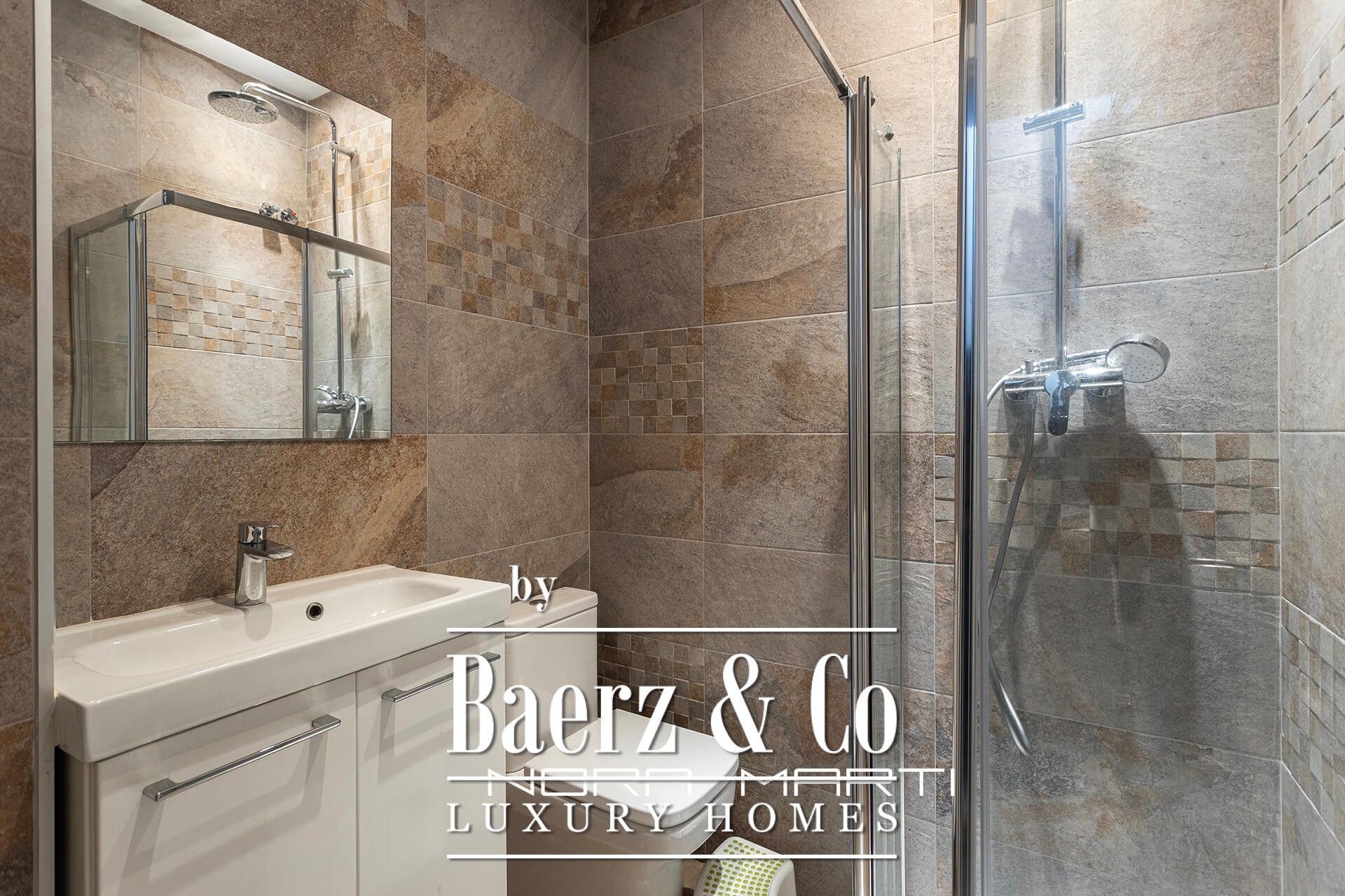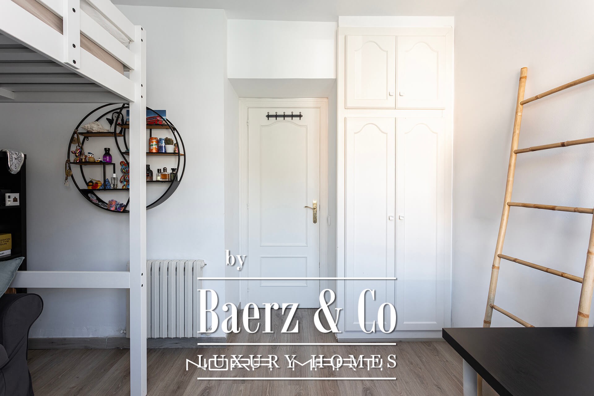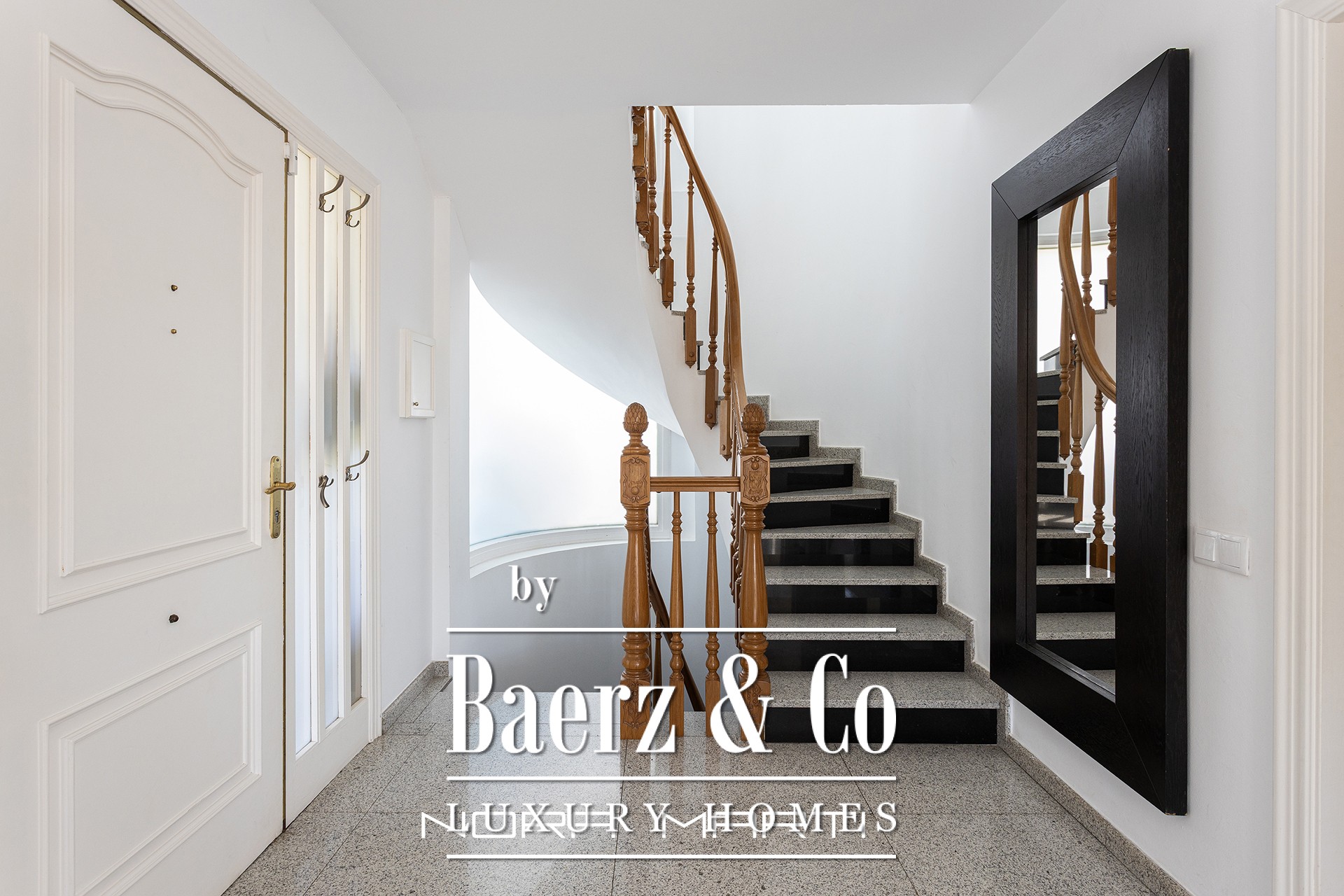 De villa beslaat drie woonlagen en is ingericht voor verfijnd gezinsleven. In het souterrain vindt u een garage voor meerdere auto’s, een wijnkelder en ruime bergruimte. De begane grond omvat een lichte woonkamer, een volledig ingerichte keuken met toegang tot een terras van 60 m² voor dineren in de buitenlucht, en twee slaapkamers met een complete badkamer. De eerste verdieping beschikt over vier ruime tweepersoonsslaapkamers, twee complete badkamers en een terras van 40 m² met uitzicht op de serene omgeving.