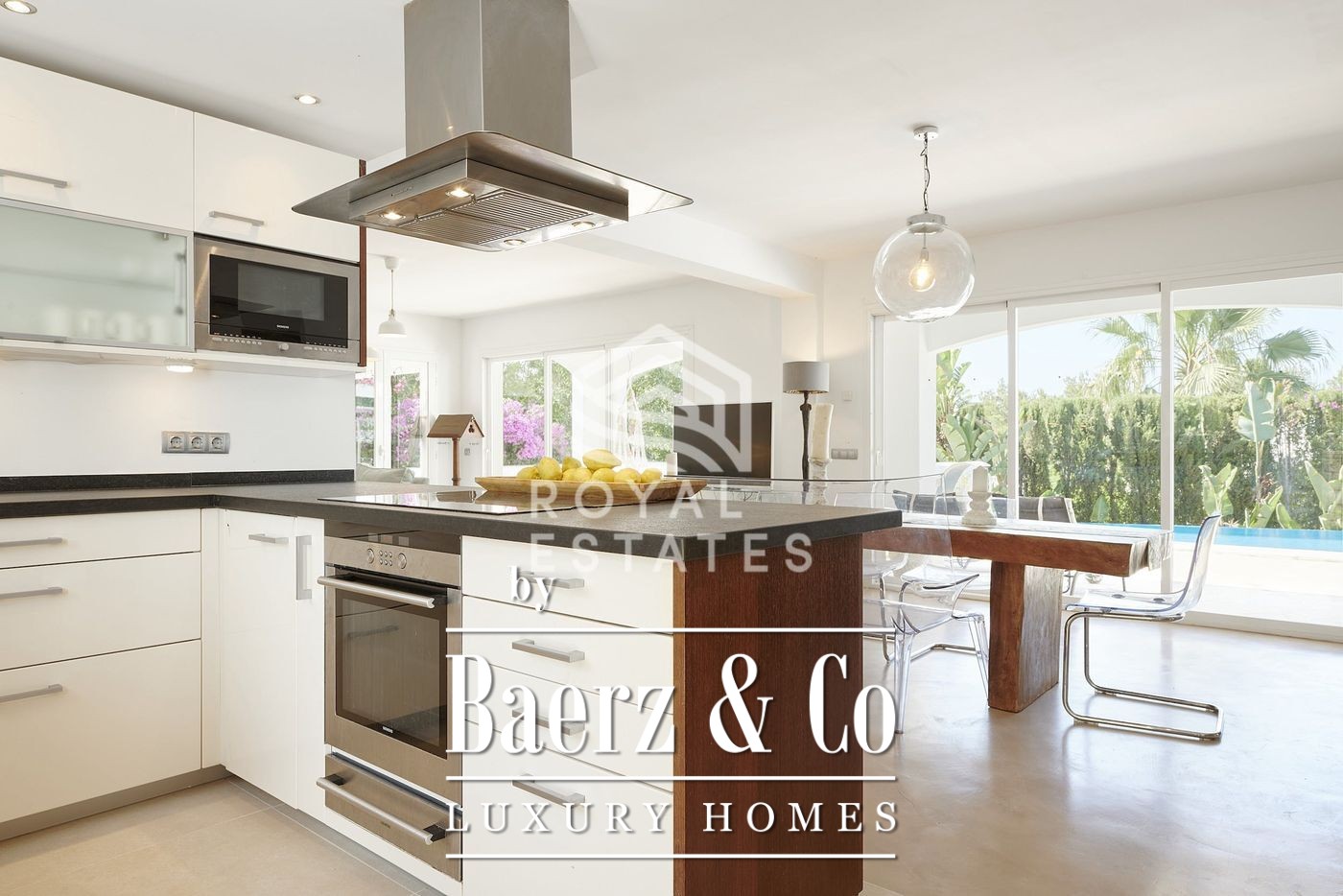 Villa te koop in Santa Eulària des Riu biedt een perfecte balans tussen privacy en comfort, gelegen in de rustige woonwijk Siesta. Deze eigentijdse villa strekt zich uit over 271 m² lichte, verfijnde interieurs en staat op een royaal perceel van 916 m², waardoor eigenaren kunnen genieten van het ontspannen tempo en de buitenlevensstijl waar Ibiza om wordt geroemd.