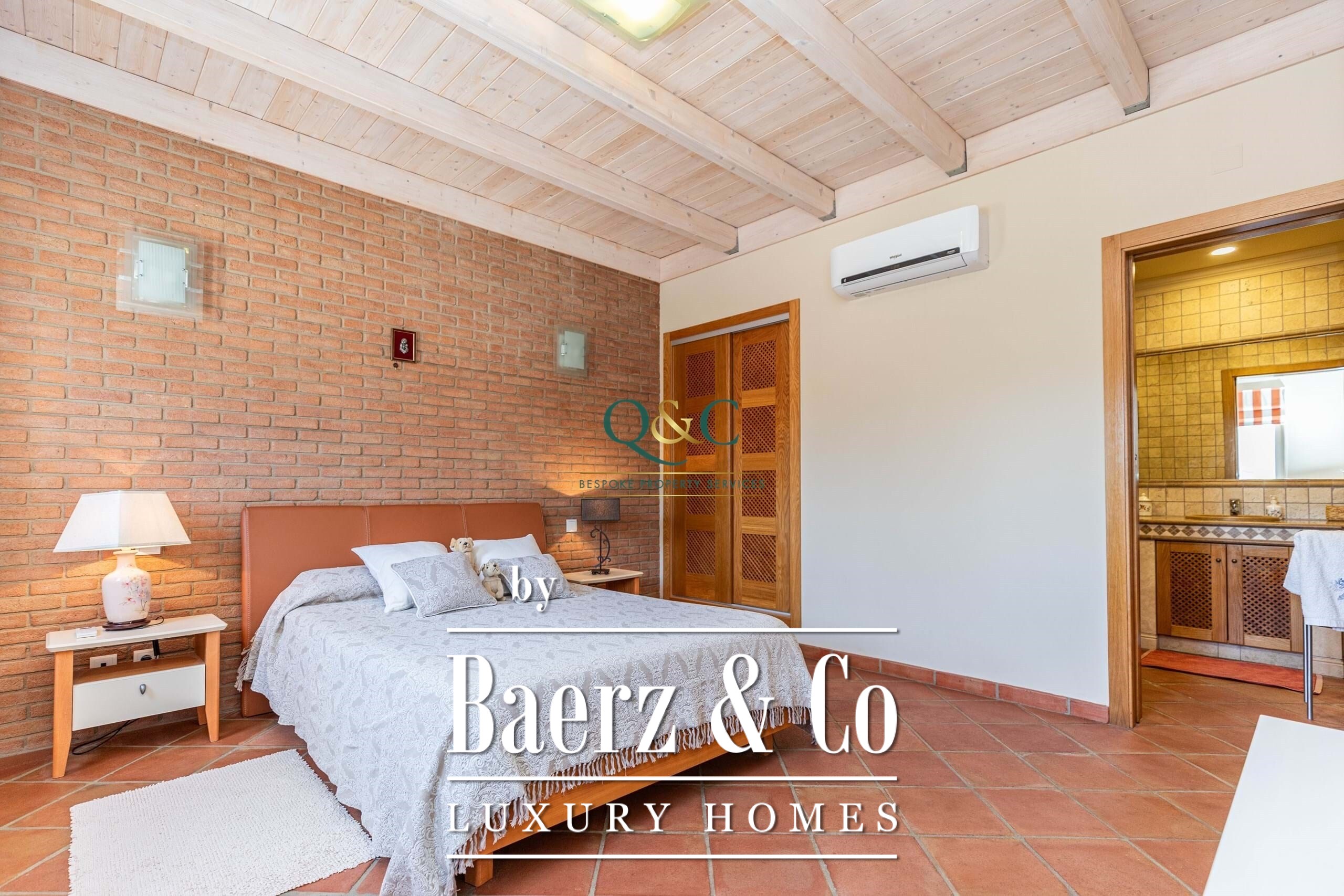 Binnen zorgen hoge plafonds van massief wit hout, badkamers met natuursteen, metselwerkwanden en rode keramische vloeren voor een authentieke, warme sfeer. De woonkamer opent direct naar het terras en het 9x4 meter zwembad, terwijl een open eetkamer en uitgeruste keuken het dagelijks leven centraal zetten. Op de begane grond bevinden zich twee ruime slaapkamers, waaronder een en suite, samen met een badkamer, bergruimte en inbouwkasten. Op de bovenverdieping vindt u een hoofdsuite met uitzicht op bergen en zwembad, dubbele inbouwkasten en een badkamer met zowel een ligbad als een douche.