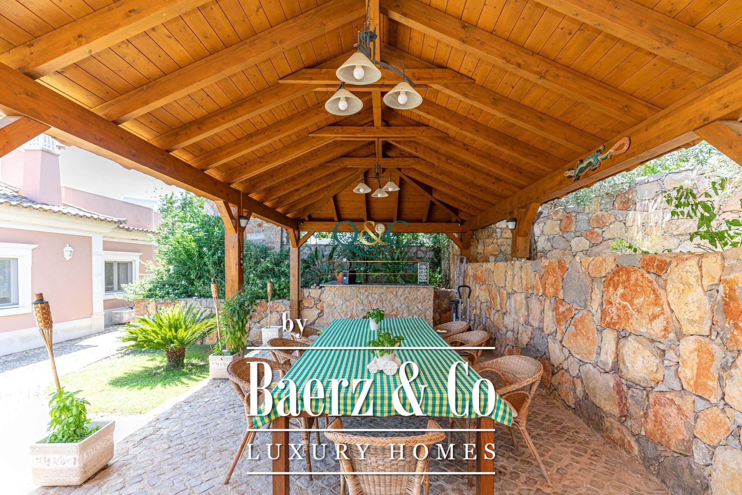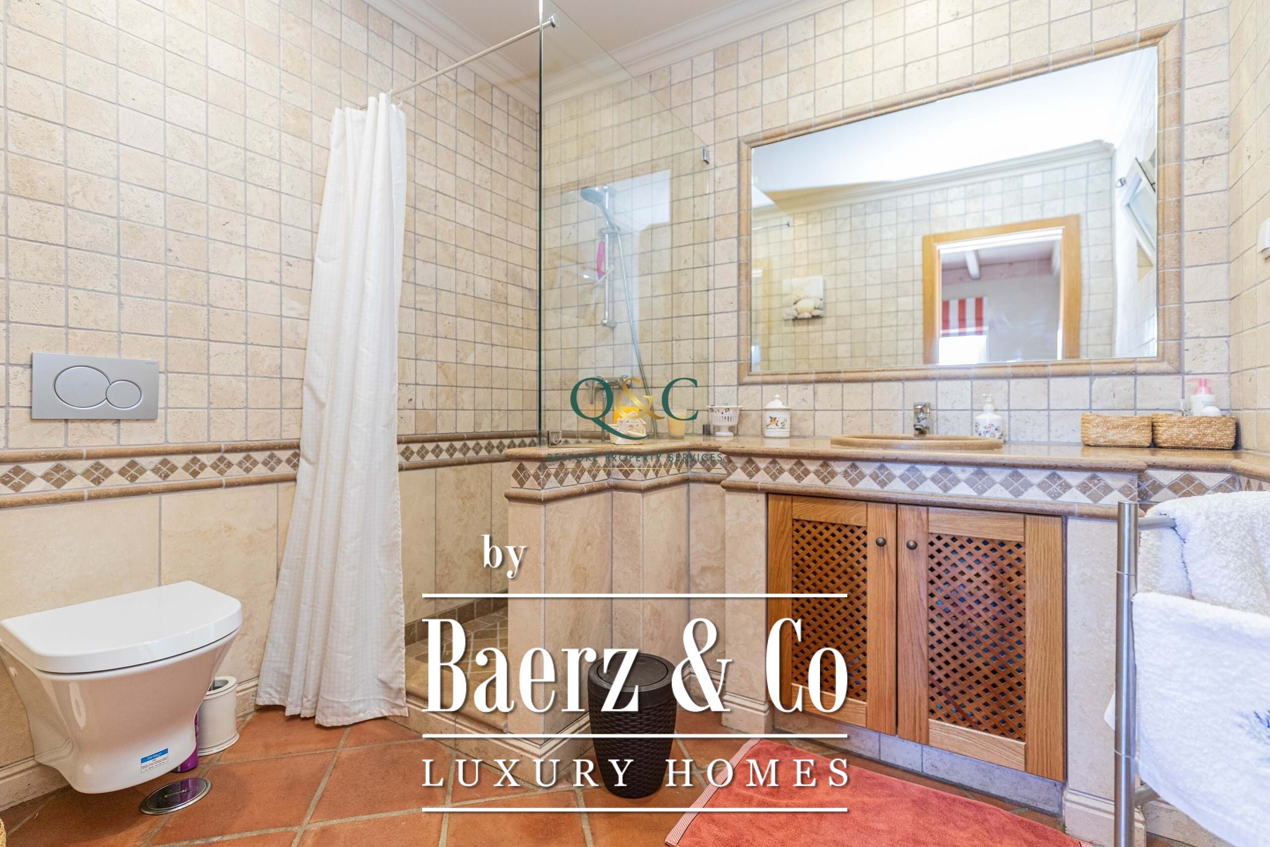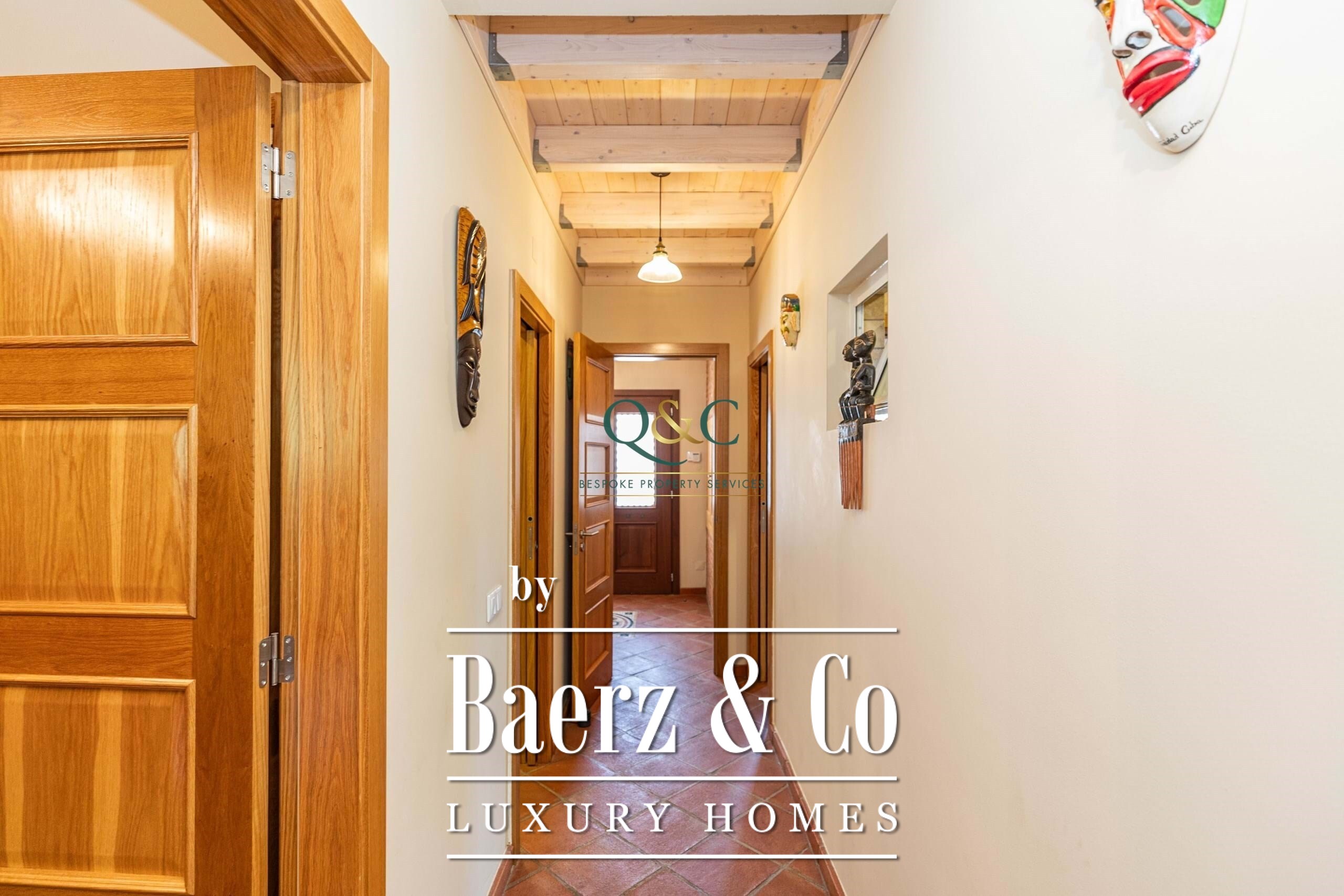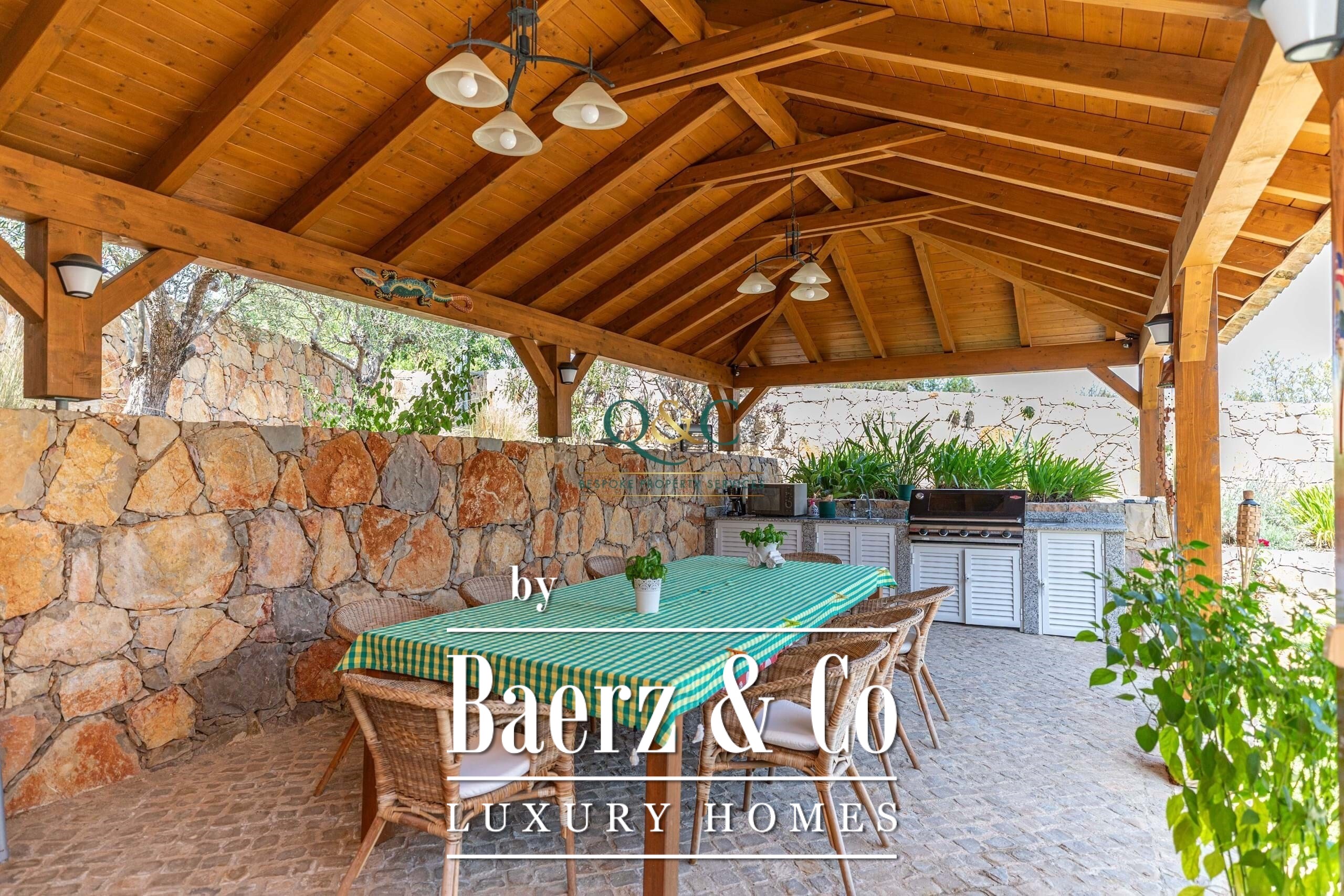 De buitenruimte vervolmaakt het geheel: rondom het huis ligt natuursteen bestrating, tuinsecties worden automatisch beregend, en onder een op maat gemaakte houten pergola bevinden zich een buitenkeuken, bar en barbecue. Airconditioning, zonnepanelen, boilers en een A-energielabel garanderen efficiëntie het hele jaar door. São Brás de Alportel, op slechts enkele minuten afstand, biedt een levendig aanbod van restaurants, winkels, markten en medische voorzieningen; de luchthaven van Faro is in 20 minuten per auto bereikbaar. Hier weerspiegelen rust, privacy en doordacht ontwerp het blijvende karakter van wonen in de Algarve.