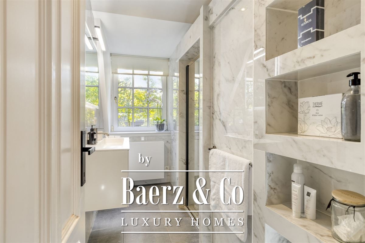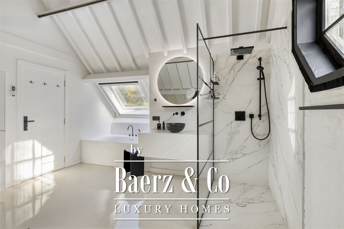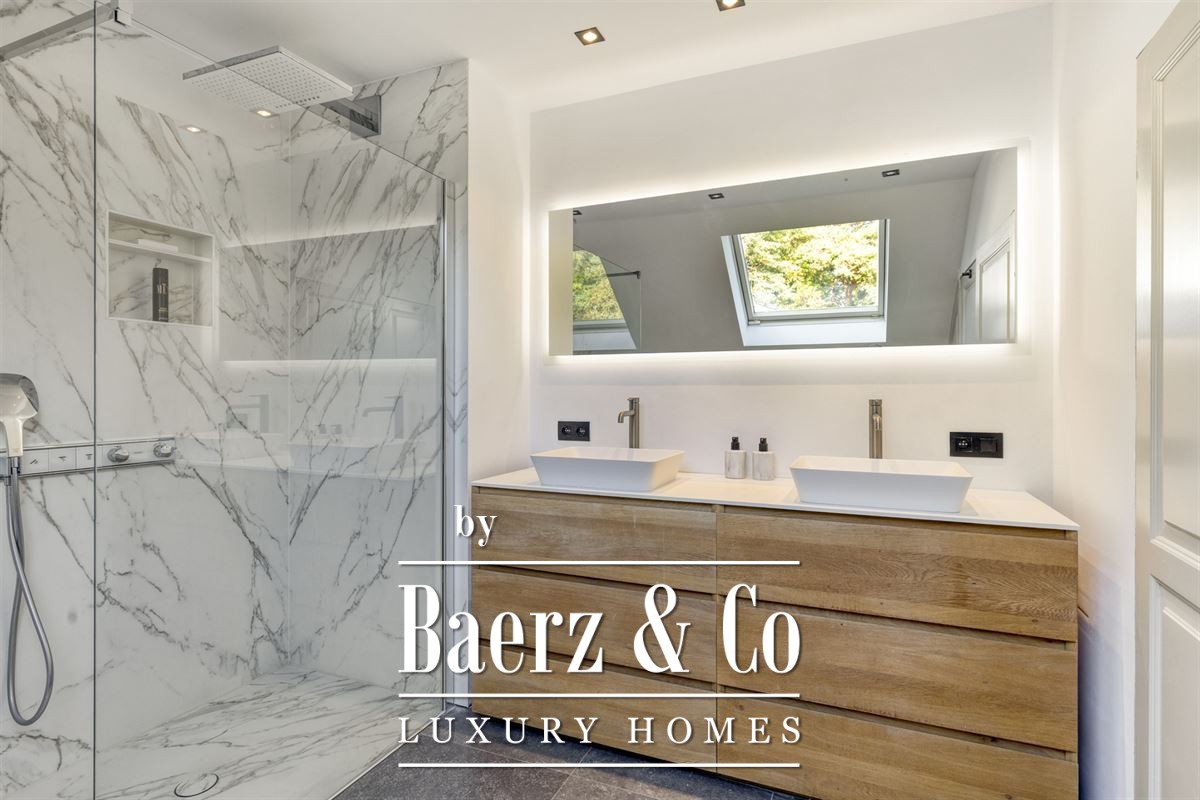 Op de verdieping: 3 slaapkamers op parket en voorzien van airco, luxe badkamer in marmer en een vaste trap naar de afgewerkte zolder. De master beschikt over dressing en ensuite net nieuwe badkamer.