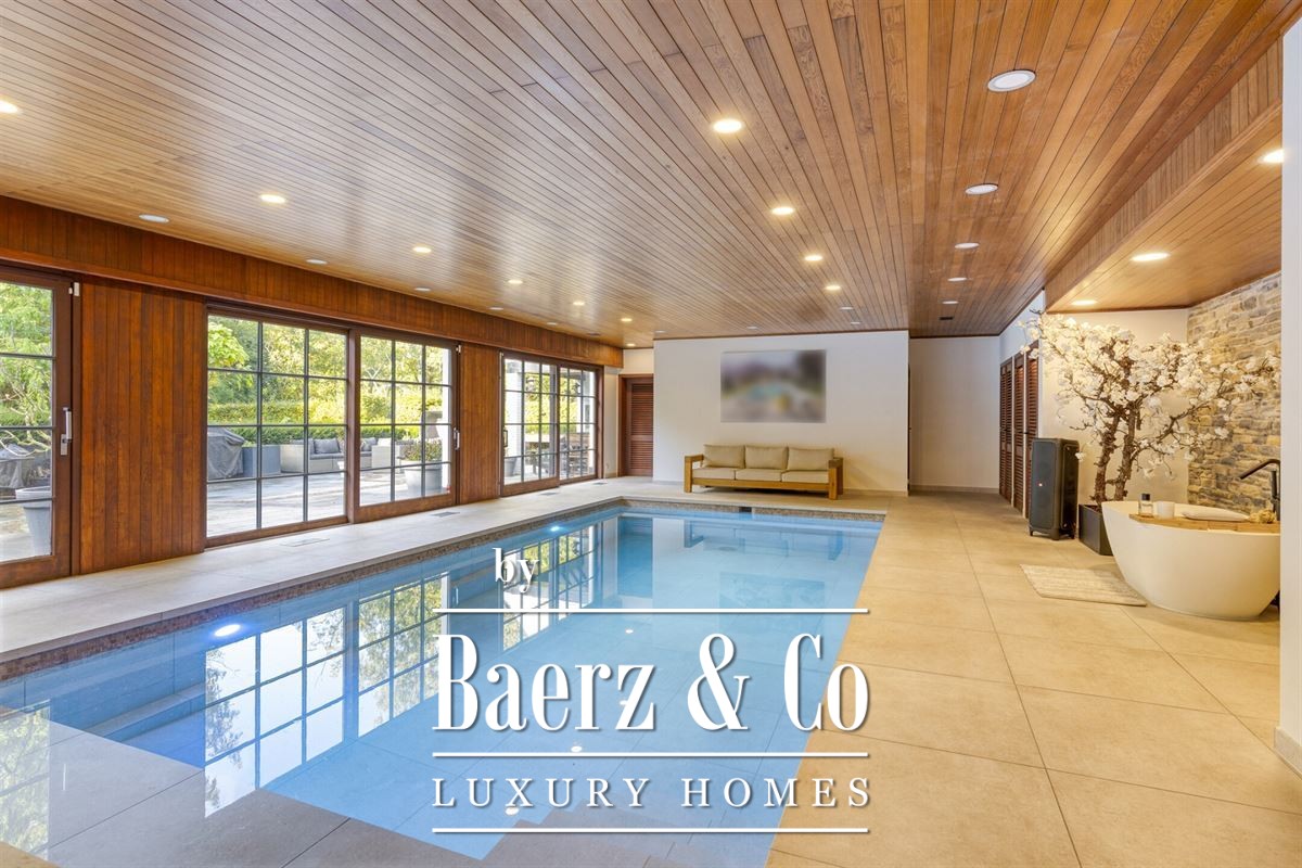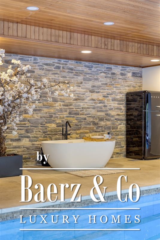 Grenzend aan de keuken vind je een stijlvolle wellnessruimte met verwarmd binnenzwembad (automatische rolluik), sunshower, Japans toilet, ligbad en grote schuiframen die volledig open kunnen. Pure ontspanning met zicht op de tuin.