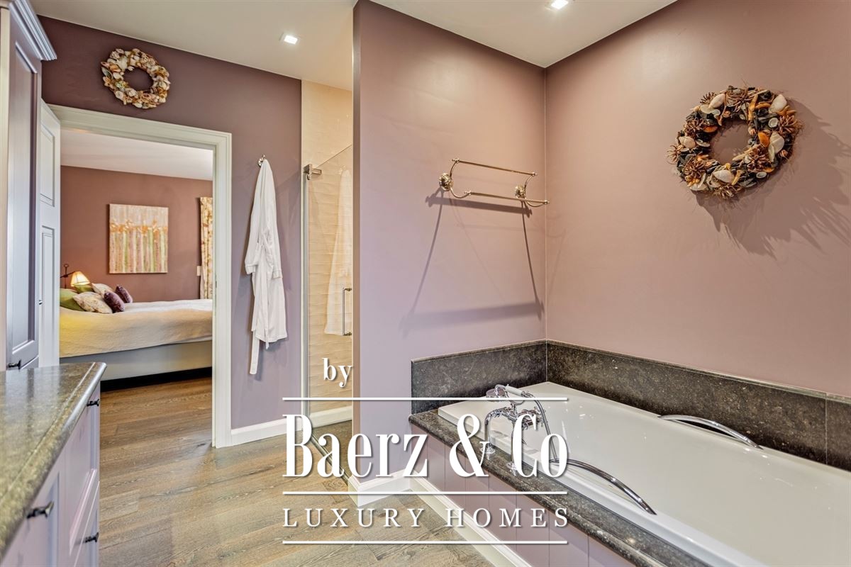 Bij aankomst op het perceel van 656m² zorgt een garage met automatische toegang en carport voor een praktische entree, discreet aan de zijkant van de woning gepositioneerd. Het interieur van 364m² is bereikbaar via lift en trap. Ambacht en maatwerk voeren de boventoon: op de eerste verdieping vallen eiken maatkasten, smeedijzeren deuren en natuurstenen vloeren op als solide basis voor de royale woonvertrekken. De keuken van 36m² vormt het hart, aangevuld met een bijkeuken voor culinair gemak, terwijl de woonkamer—42m² aan weloverwogen comfort—overloopt in een intieme lounge en kantoorruimte.