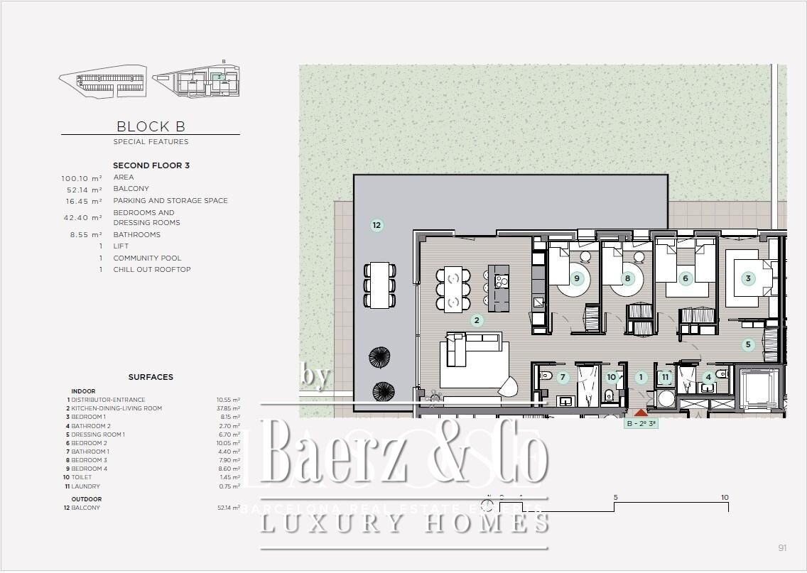 De interieurafwerking kenmerkt zich door ingetogen materialen en maatwerkopslag, terwijl het buitenleven een upgrade krijgt: elke woning beschikt over een eigen terras, omsloten tuinen voor privacy en een panoramisch uitzicht over Sitges en de zee. Tot de gemeenschappelijke voorzieningen behoren een mediterrane tuin met inheemse beplanting, een zwembad, rooftop chill-outzones met Balinese bedden en rustige wandelpaden waar bewoners van zowel sociaal als individueel samenzijn kunnen genieten. Beveiligde ondergrondse parkeergelegenheid en afgesloten bergingen bieden extra zekerheid en gemak.