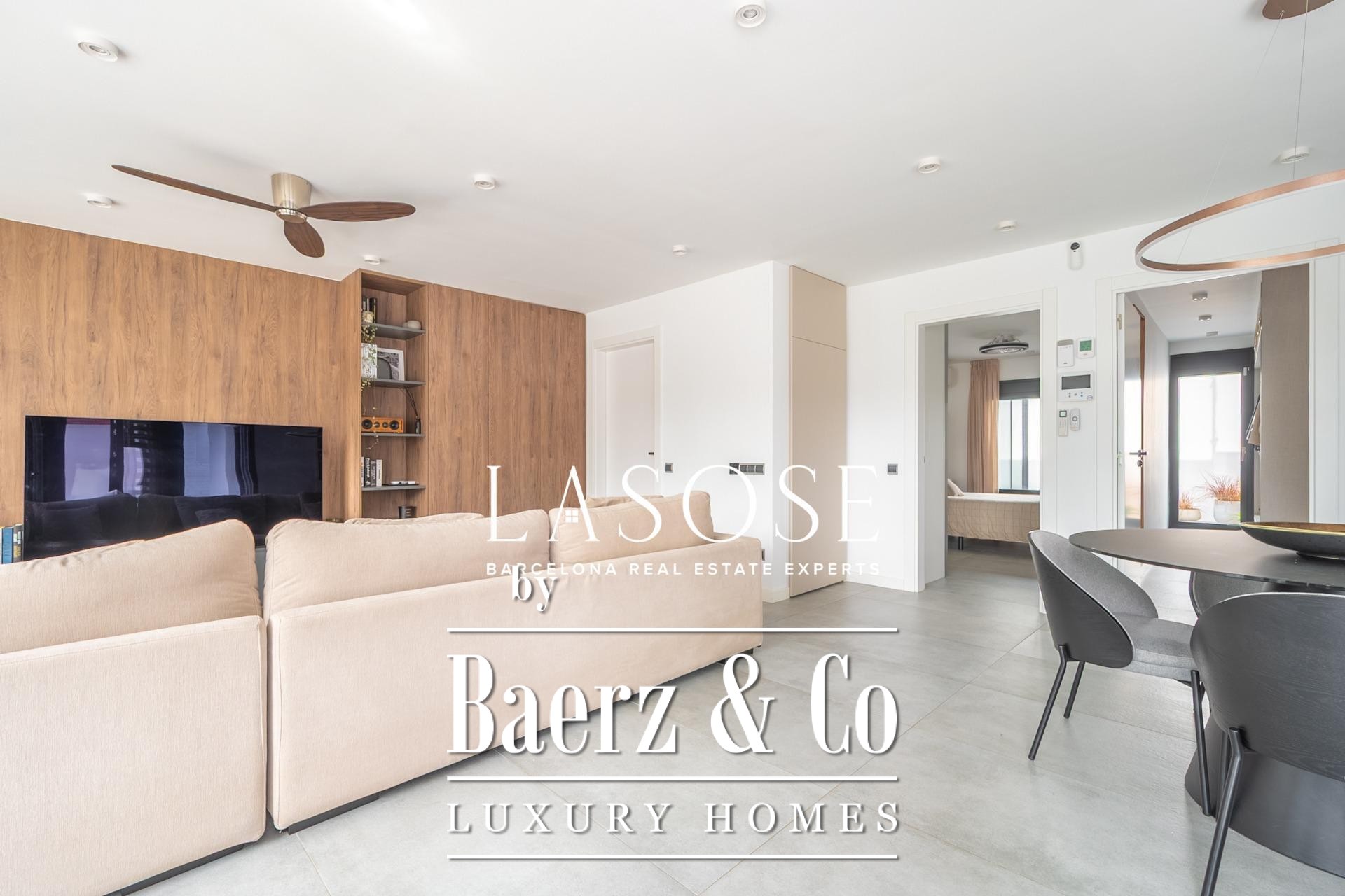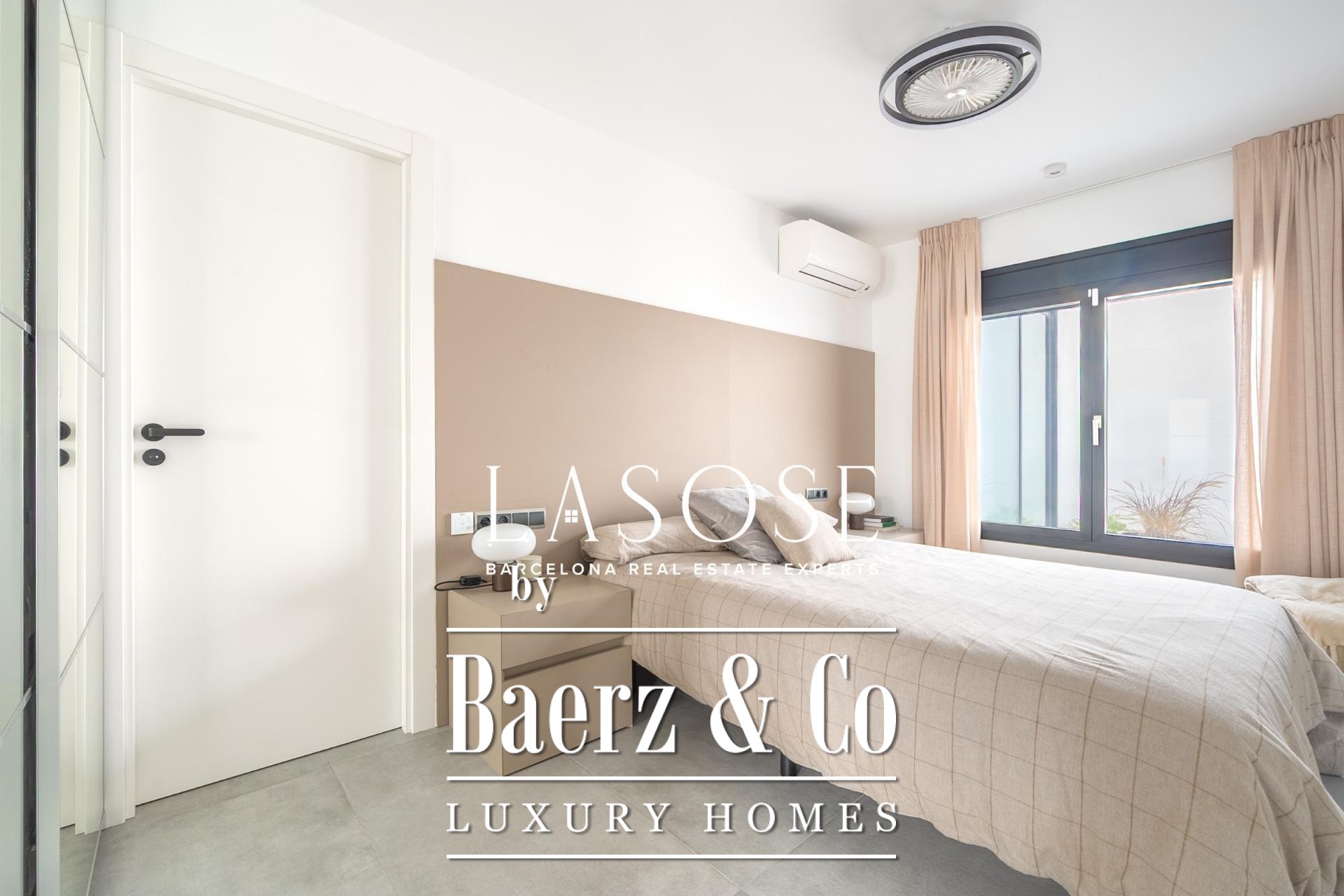 De moderne keuken, uitgerust met hoogwaardige materialen en apparatuur, vormt het kloppend hart van het huis en staat in directe verbinding met een uitnodigend overdekt terras voor moeiteloos buiten dineren. De hoofd slaapkamer beschikt over een designbadkamer en een ruime inloopkast, terwijl de tweede slaapkamer direct toegang biedt tot een volledige badkamer—met optimaal comfort en elegante privacy. Het hele jaar door is er klimaatbeheersing dankzij warmtepompen voor zowel verwarming als koeling in iedere ruimte; dubbele beglazing en verstelbare zonwering bevorderen thermische en akoestische isolatie. Alle details, van verlichting tot afwerking, tonen ingetogen tijdloze klasse.