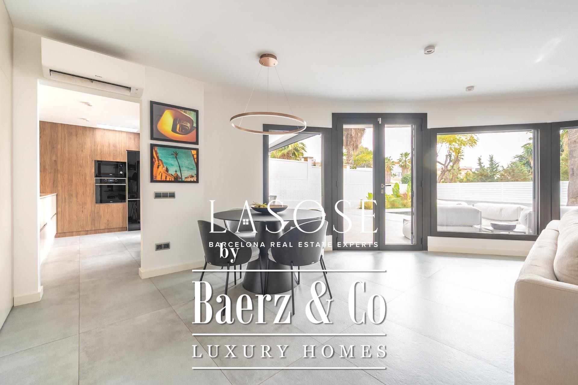Villa Sitges Vallpineda biedt verheven mediterraan wonen in een discrete, residentiële omgeving. Deze gelijkvloerse villa van 100 m² is volledig gerenoveerd volgens strakke, eigentijdse standaarden en beschikt over twee slaapkamers en twee badkamers die naadloos aansluiten op de royale leefruimtes. De woning is gelegen op een perceel van 278 m², omringd door statige palmbomen en prachtige, open uitzichten, waar rust en harmonie tussen binnen en buiten centraal staan. Ramen van vloer tot plafond laten overvloedig daglicht binnen in de hoofdwoonkamer en eetgedeelte, die natuurlijk overlopen in het terras en het privézwembad—ideaal voor familiemomenten of rustige contemplatie.
