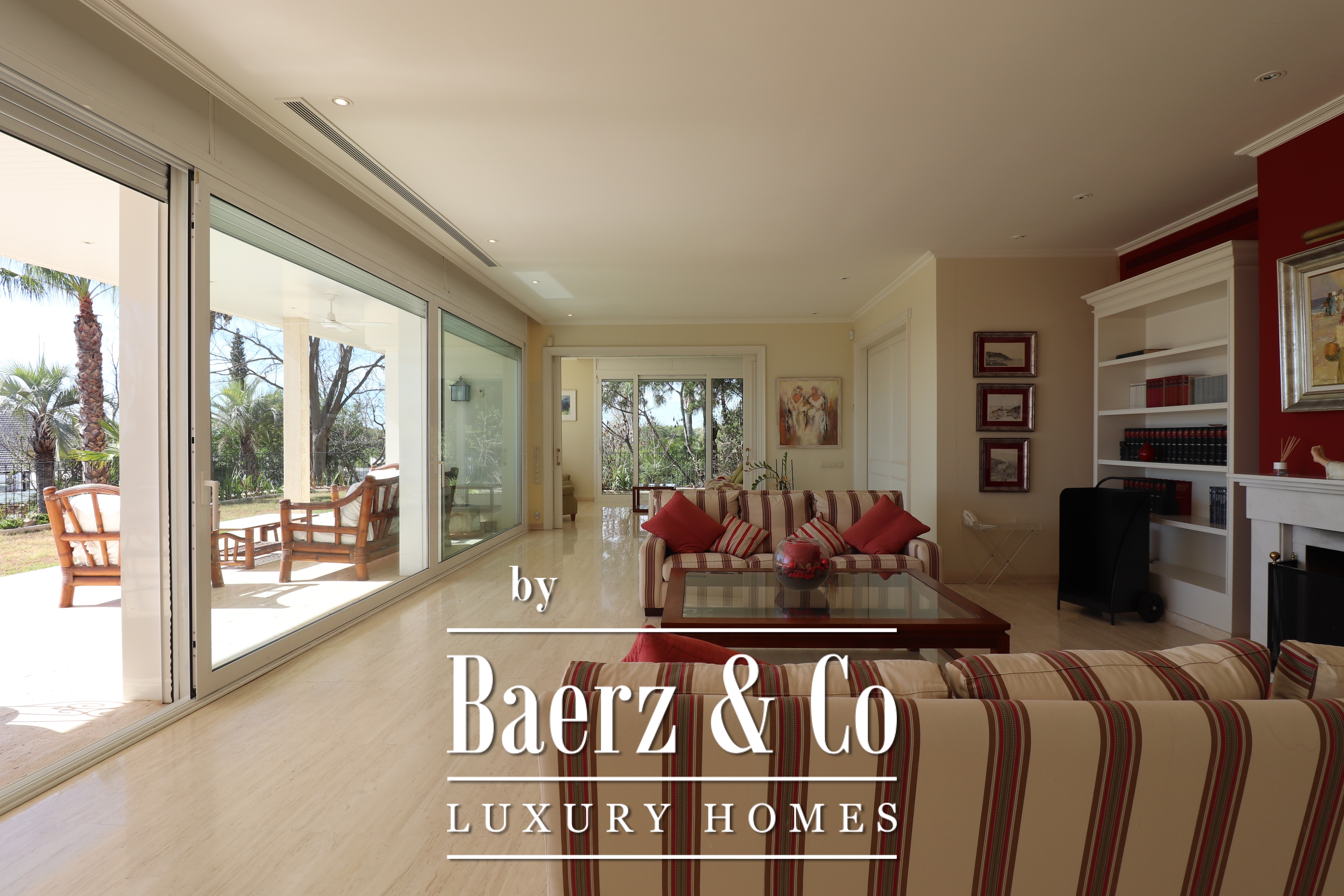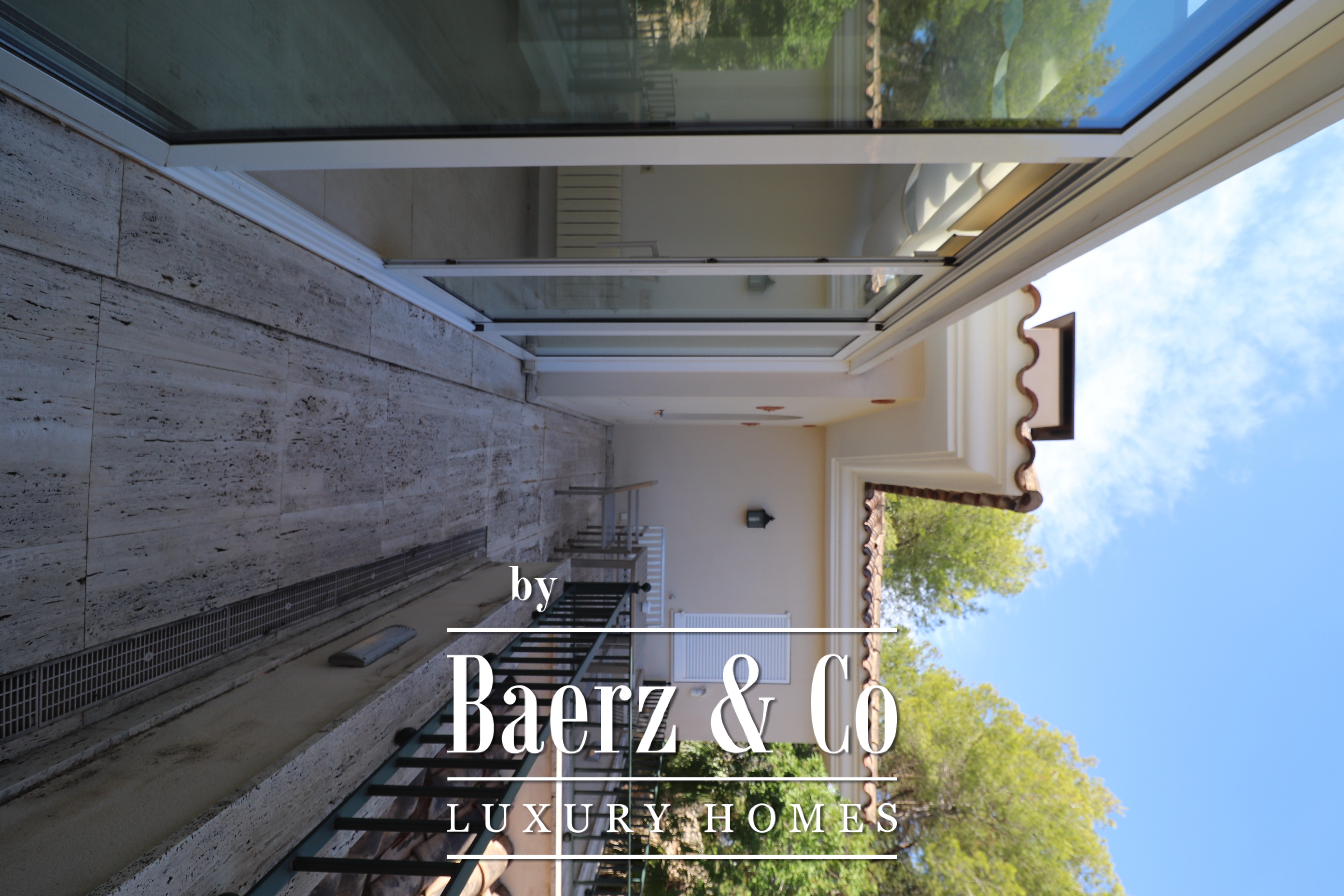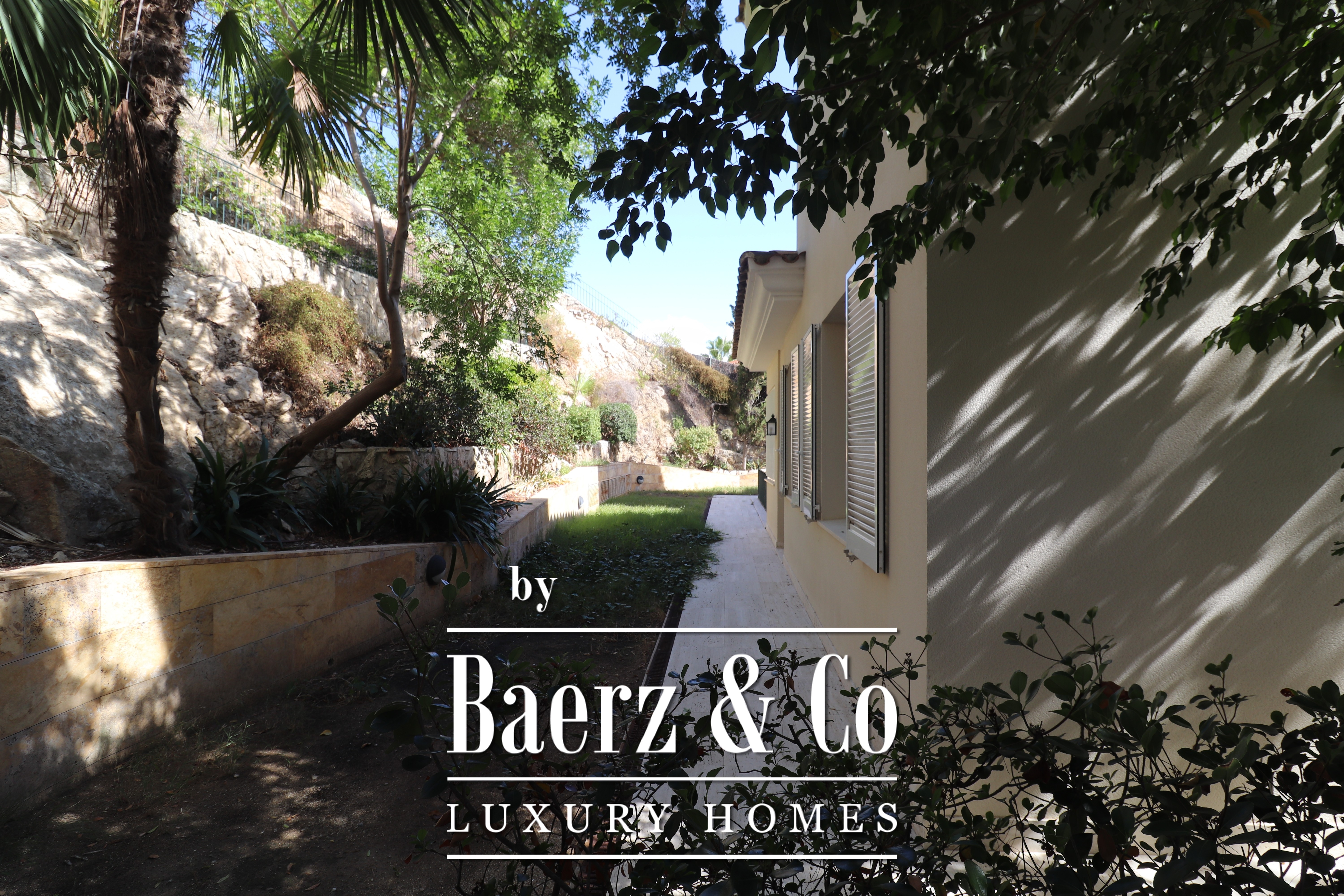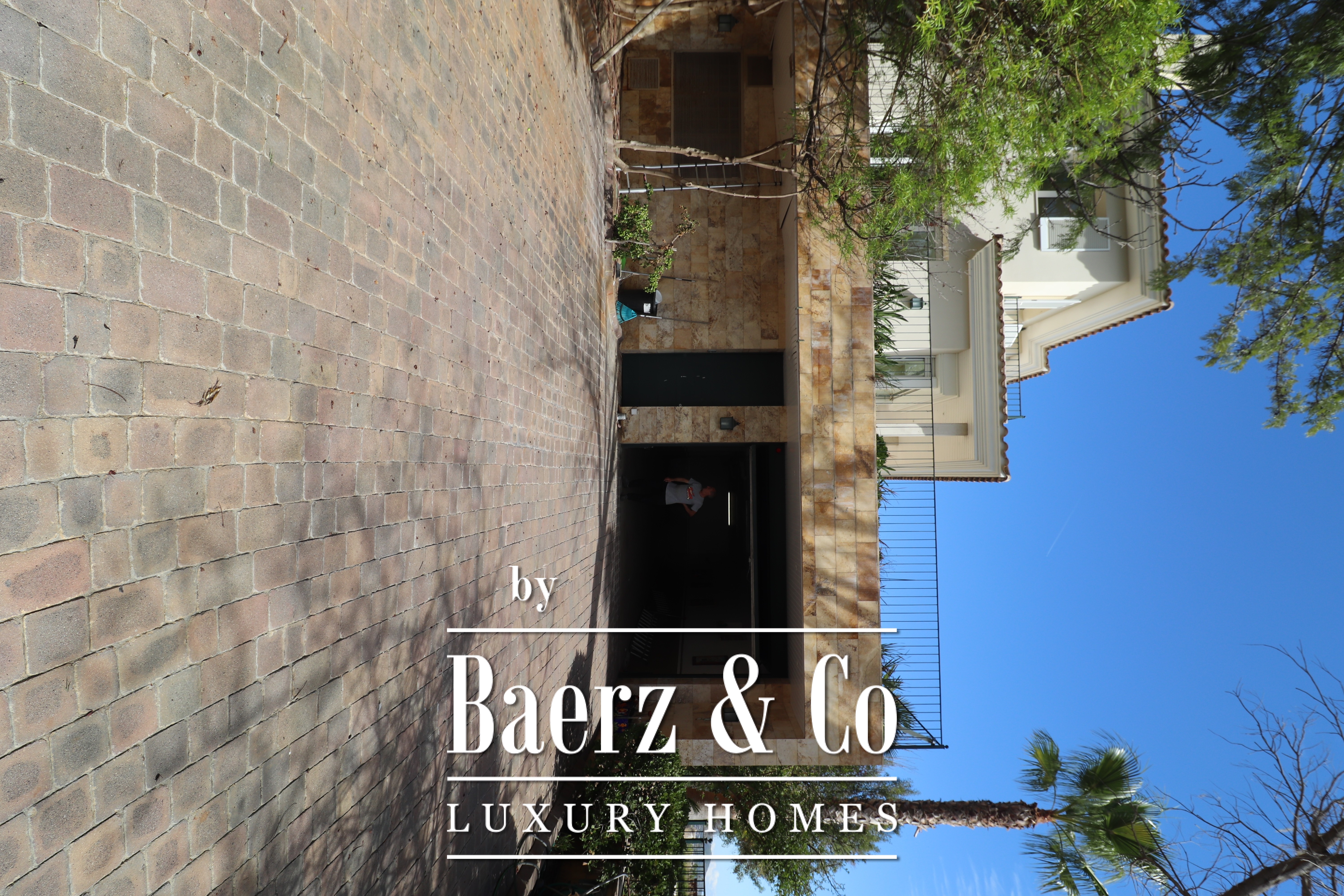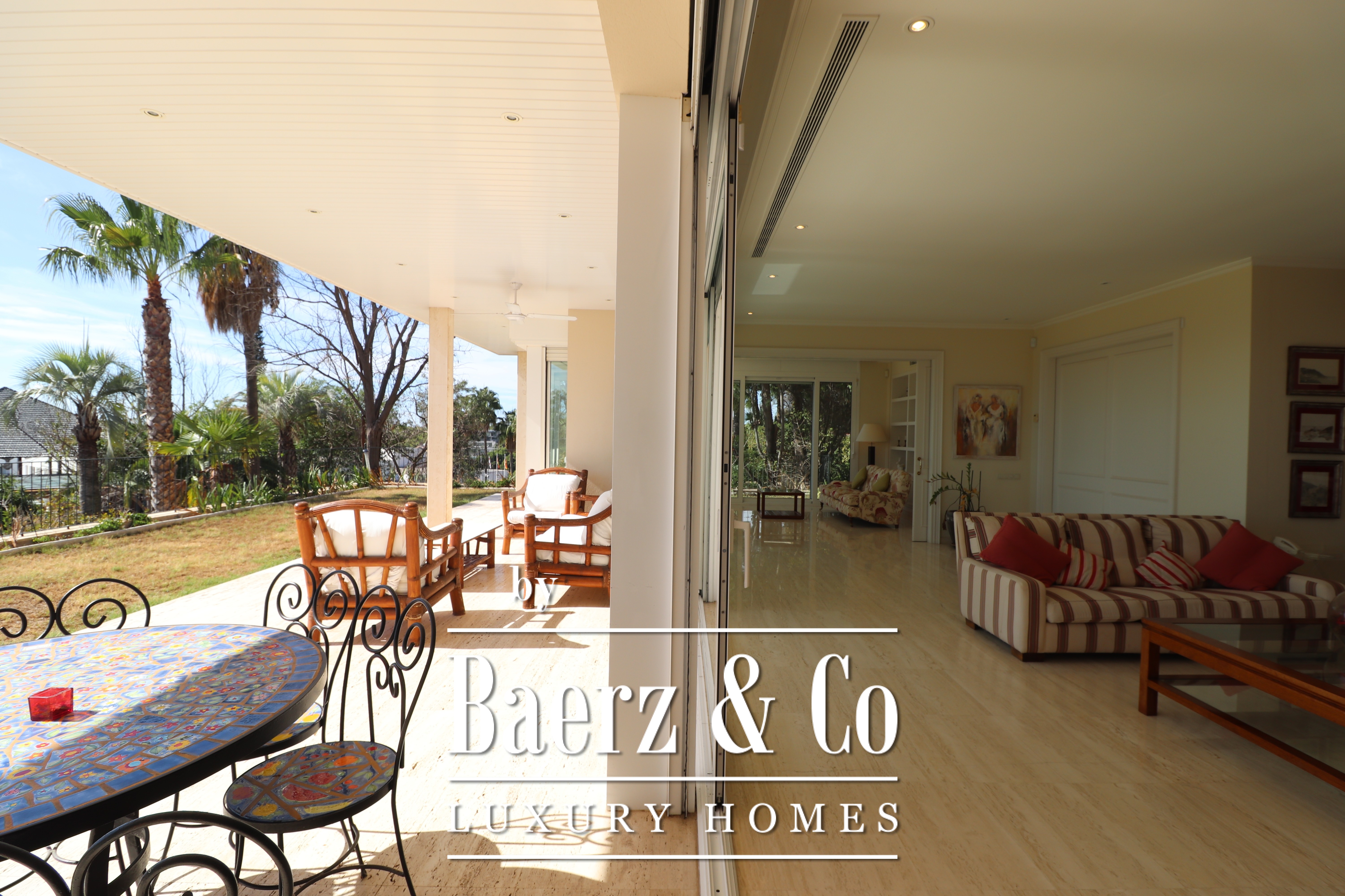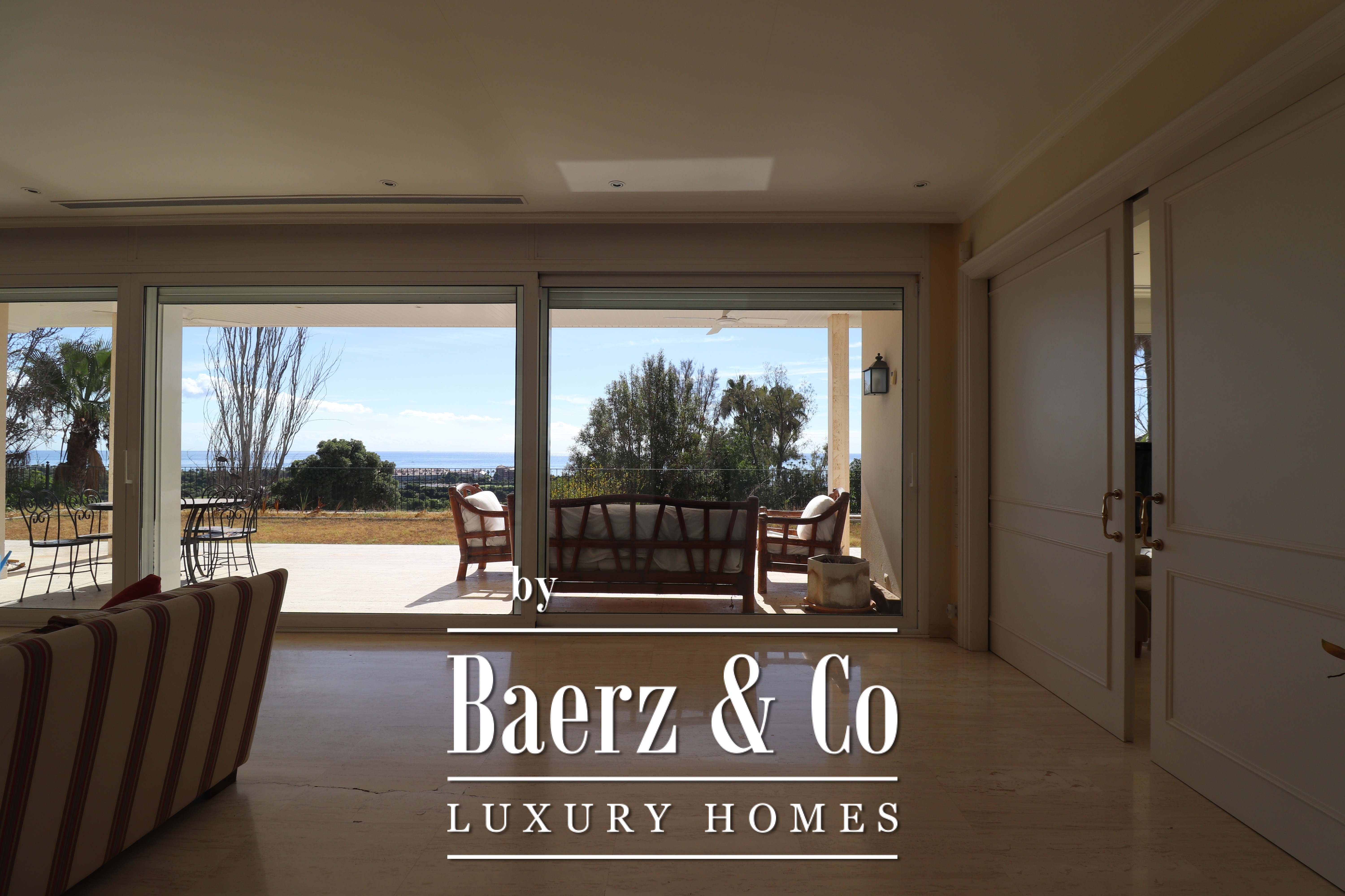 Ontworpen met oog voor discretie en comfort, spreidt de villa zich uit over drie verdiepingen, verbonden door een privé-lift. De hoofdverdieping begint met een stijlvolle entreehal en vloeit over in een open leefruimte met een salon en eetkamer, een mediaruimte, en een volledig uitgeruste keuken met aangrenzende bijkeuken en een dedicated kantoor. Vijf slaapkamers en acht badkamers bieden ruimte aan gezinsleven én grootschalig ontvangen.