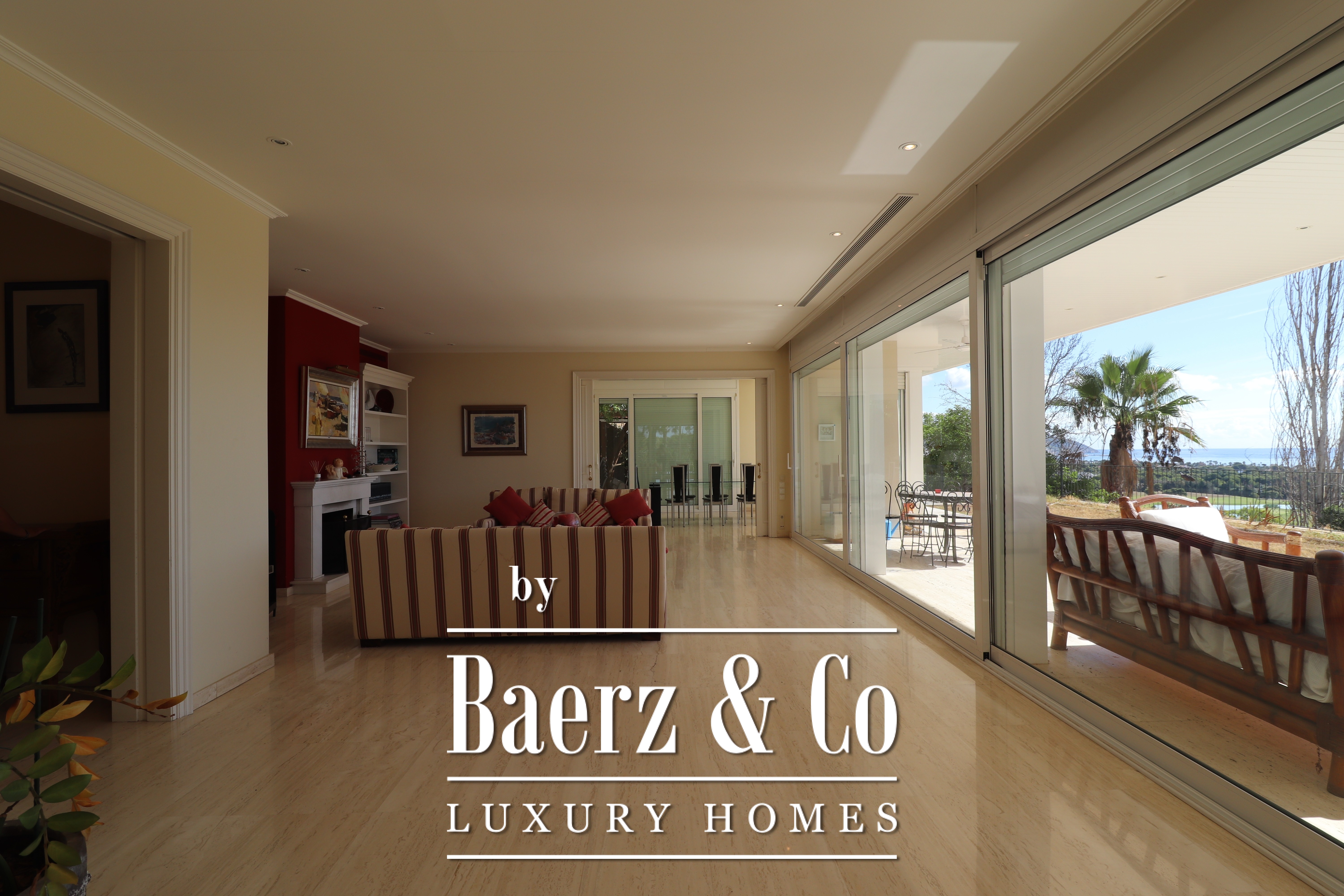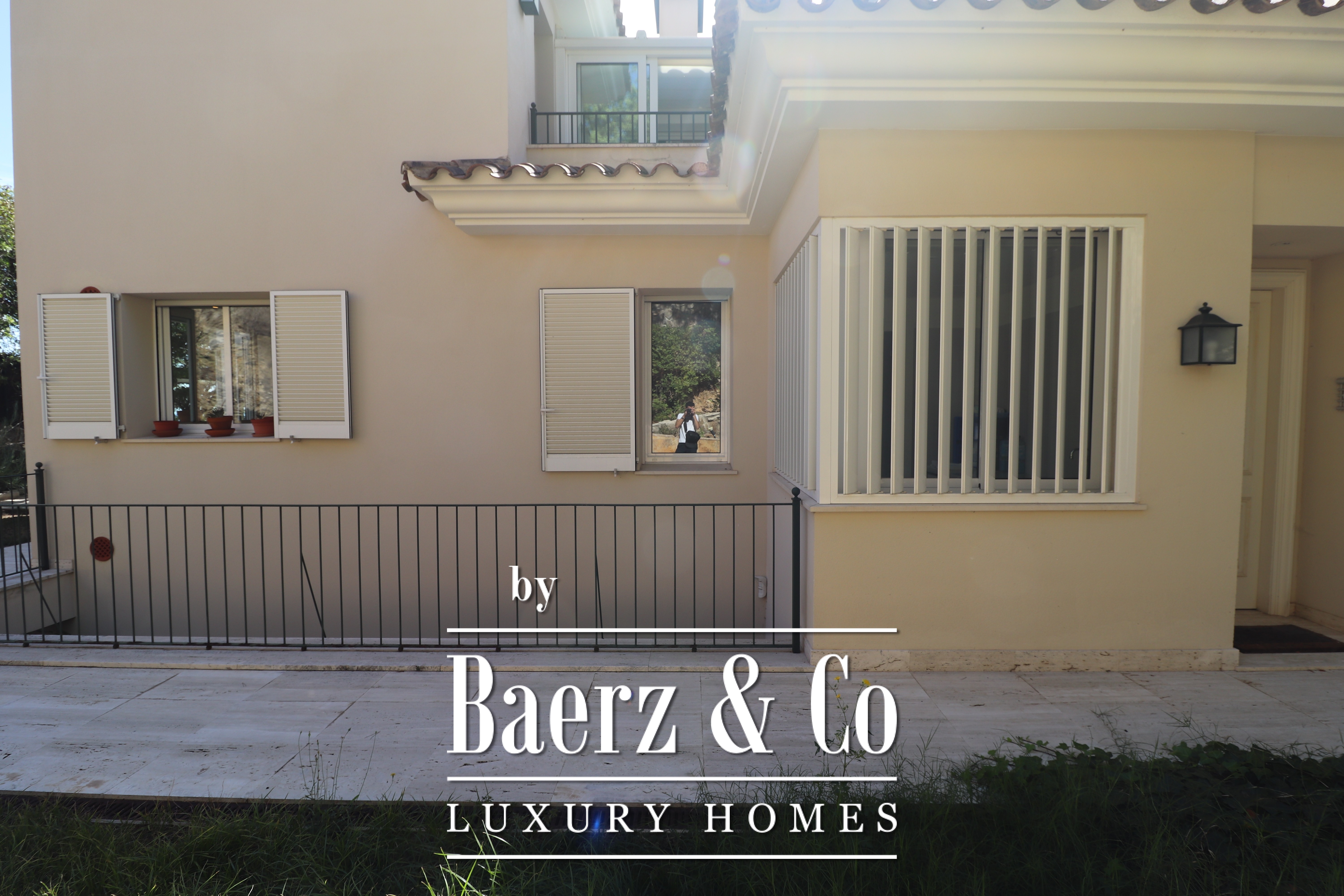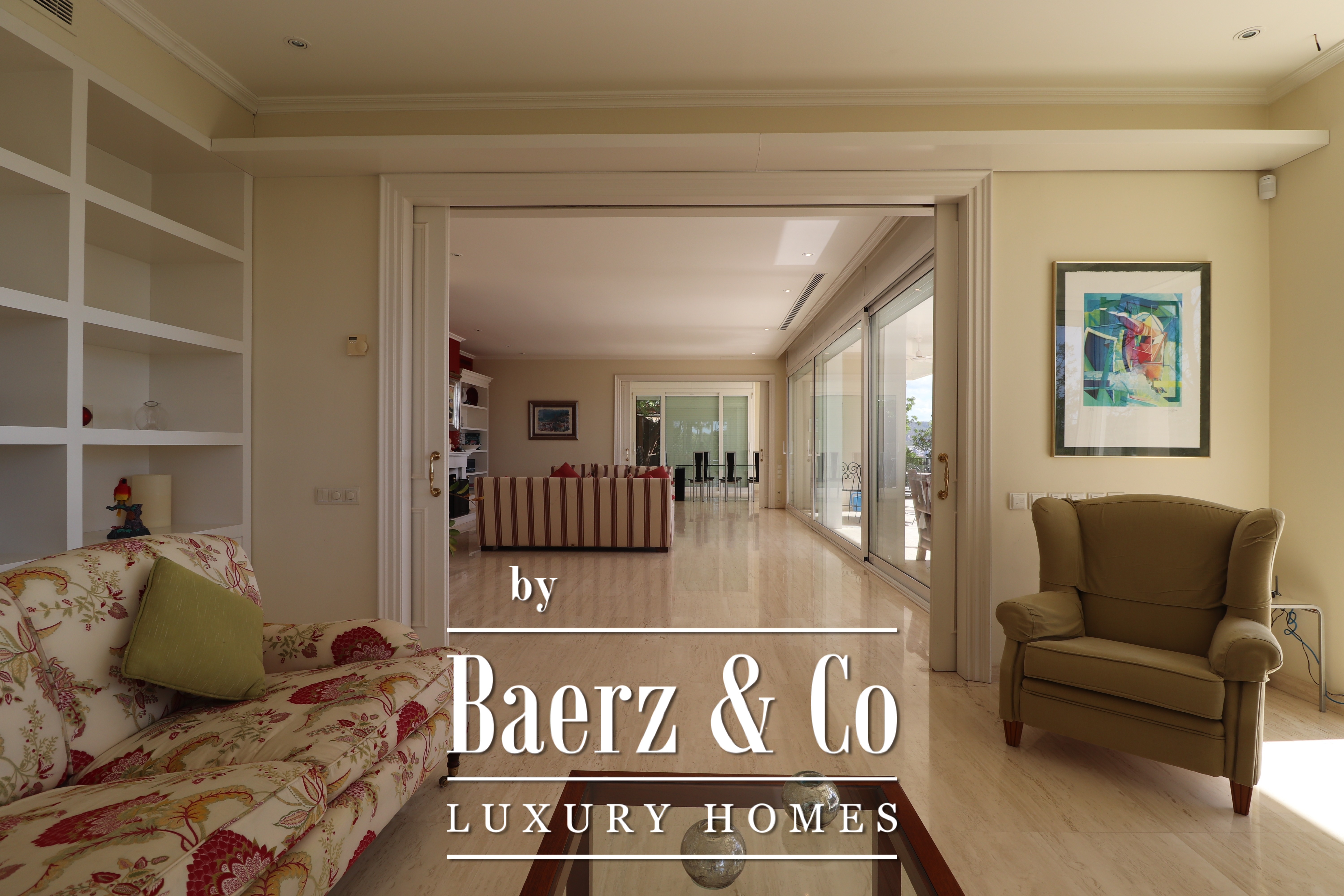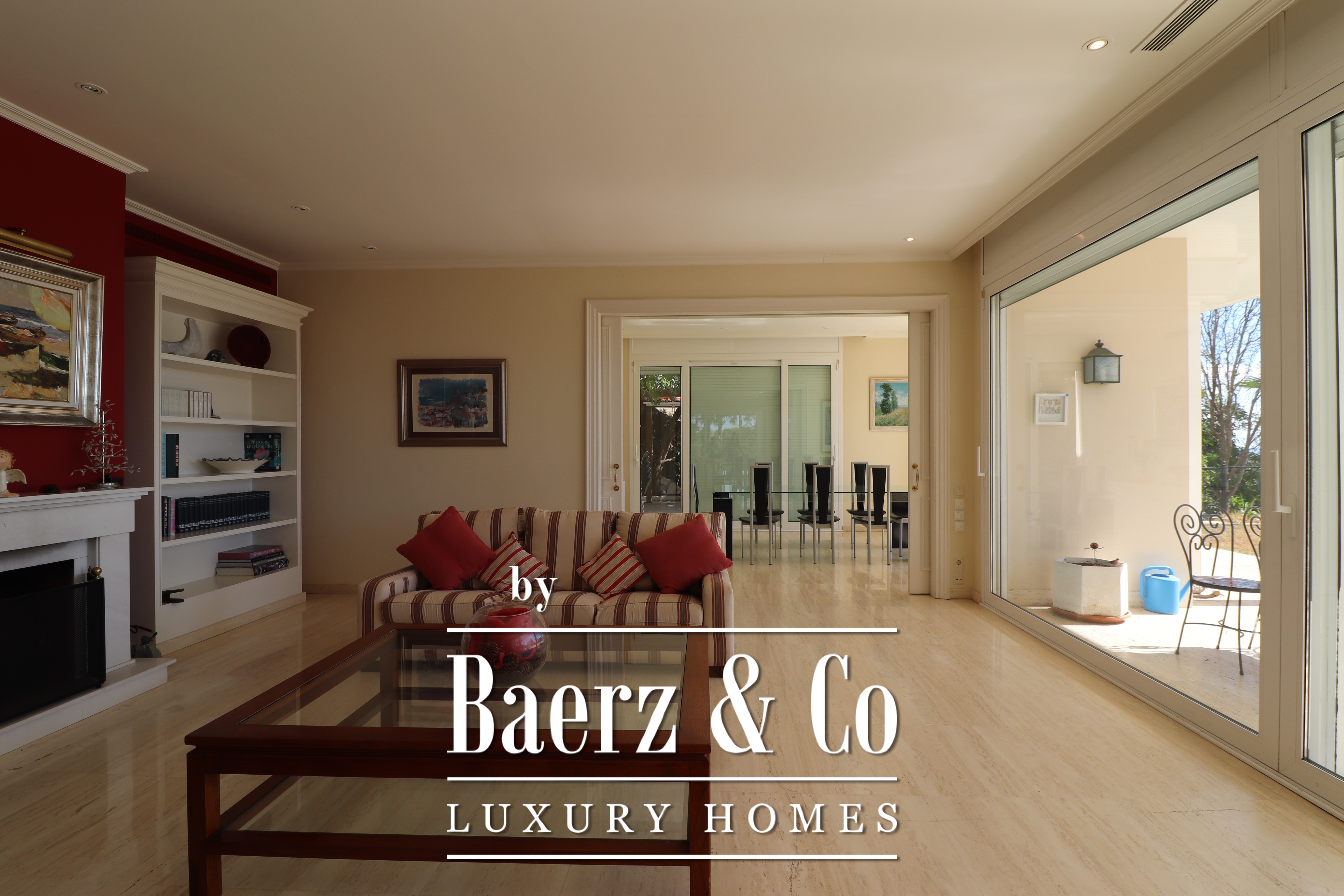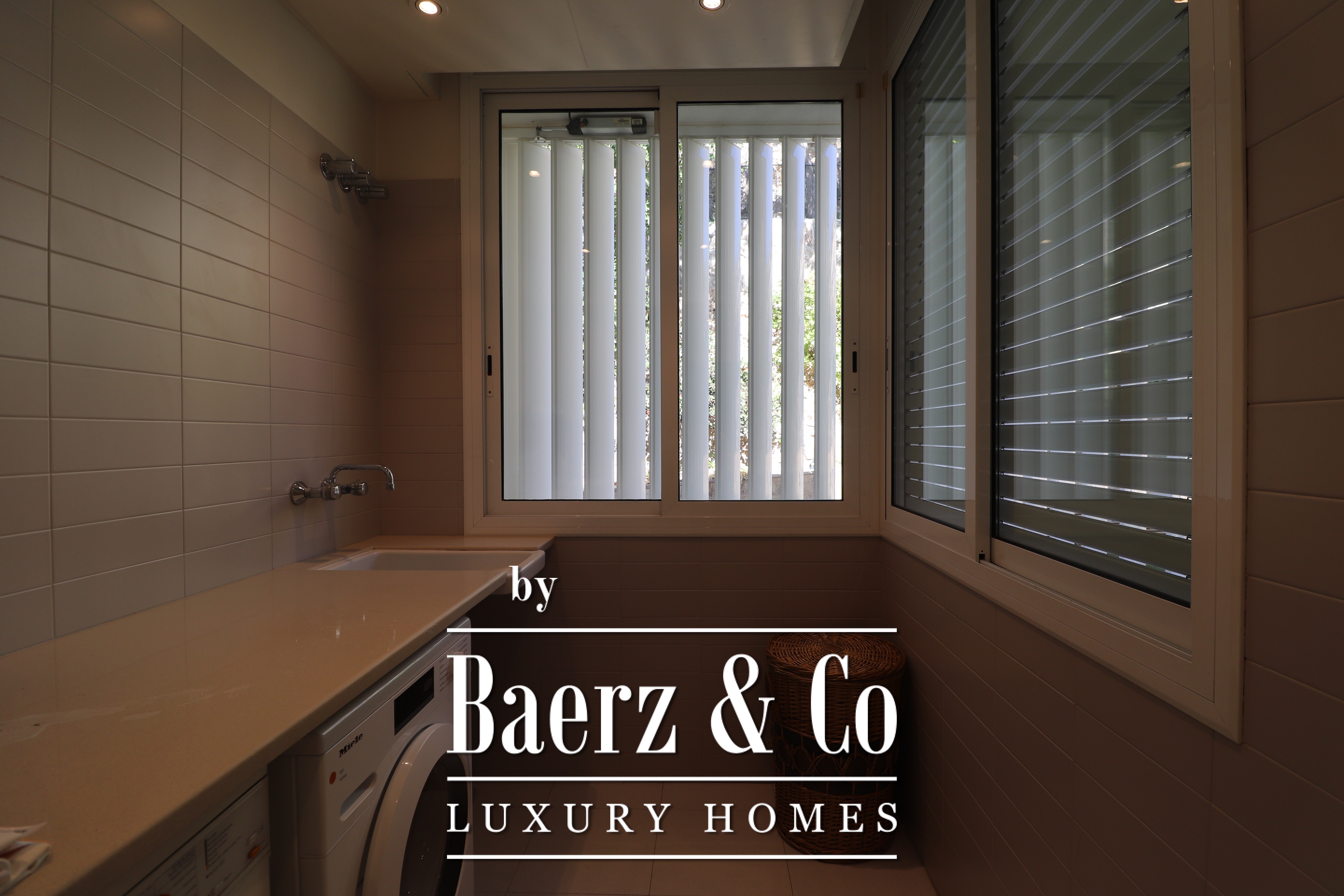 Ontworpen met oog voor discretie en comfort, spreidt de villa zich uit over drie verdiepingen, verbonden door een privé-lift. De hoofdverdieping begint met een stijlvolle entreehal en vloeit over in een open leefruimte met een salon en eetkamer, een mediaruimte, en een volledig uitgeruste keuken met aangrenzende bijkeuken en een dedicated kantoor. Vijf slaapkamers en acht badkamers bieden ruimte aan gezinsleven én grootschalig ontvangen.