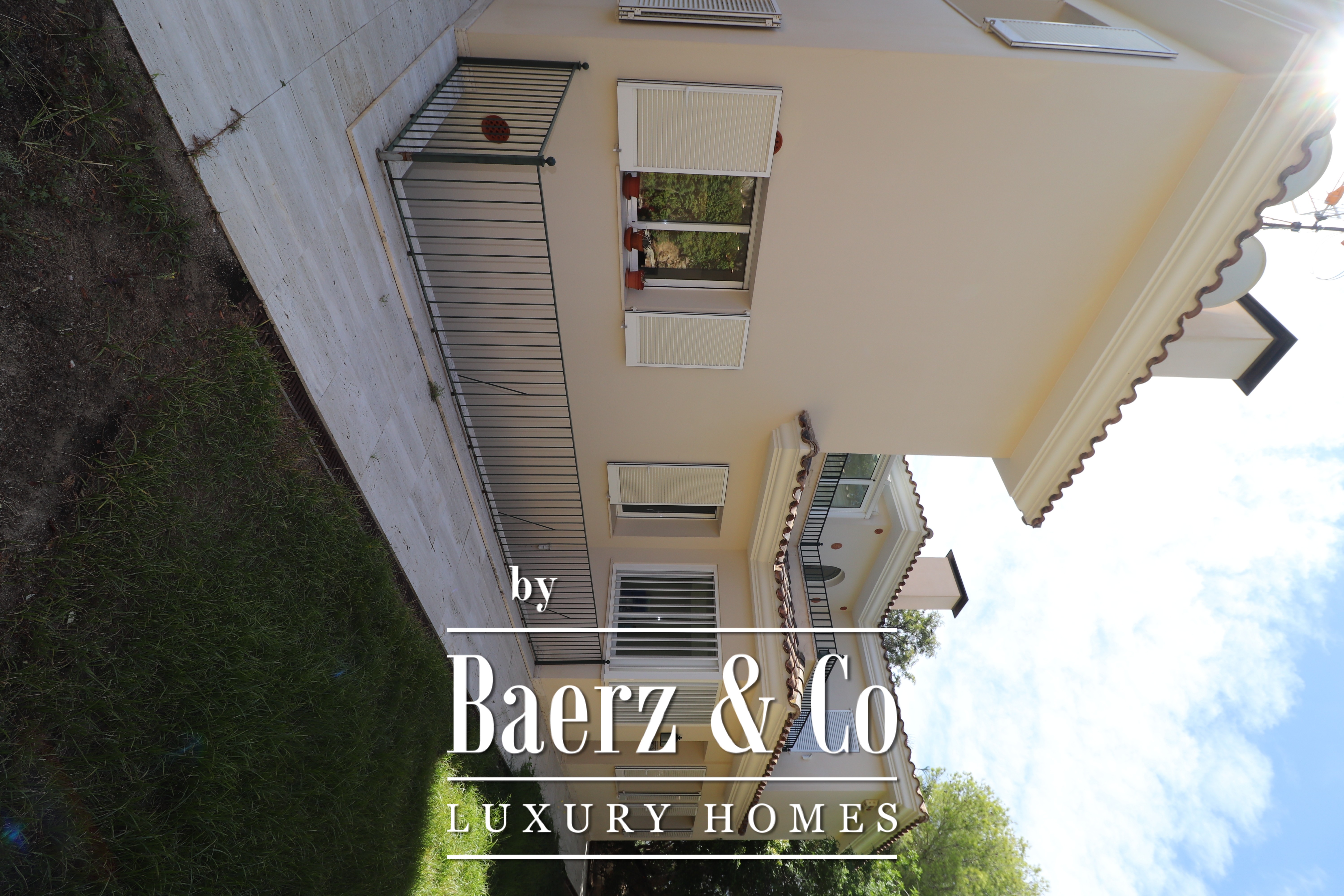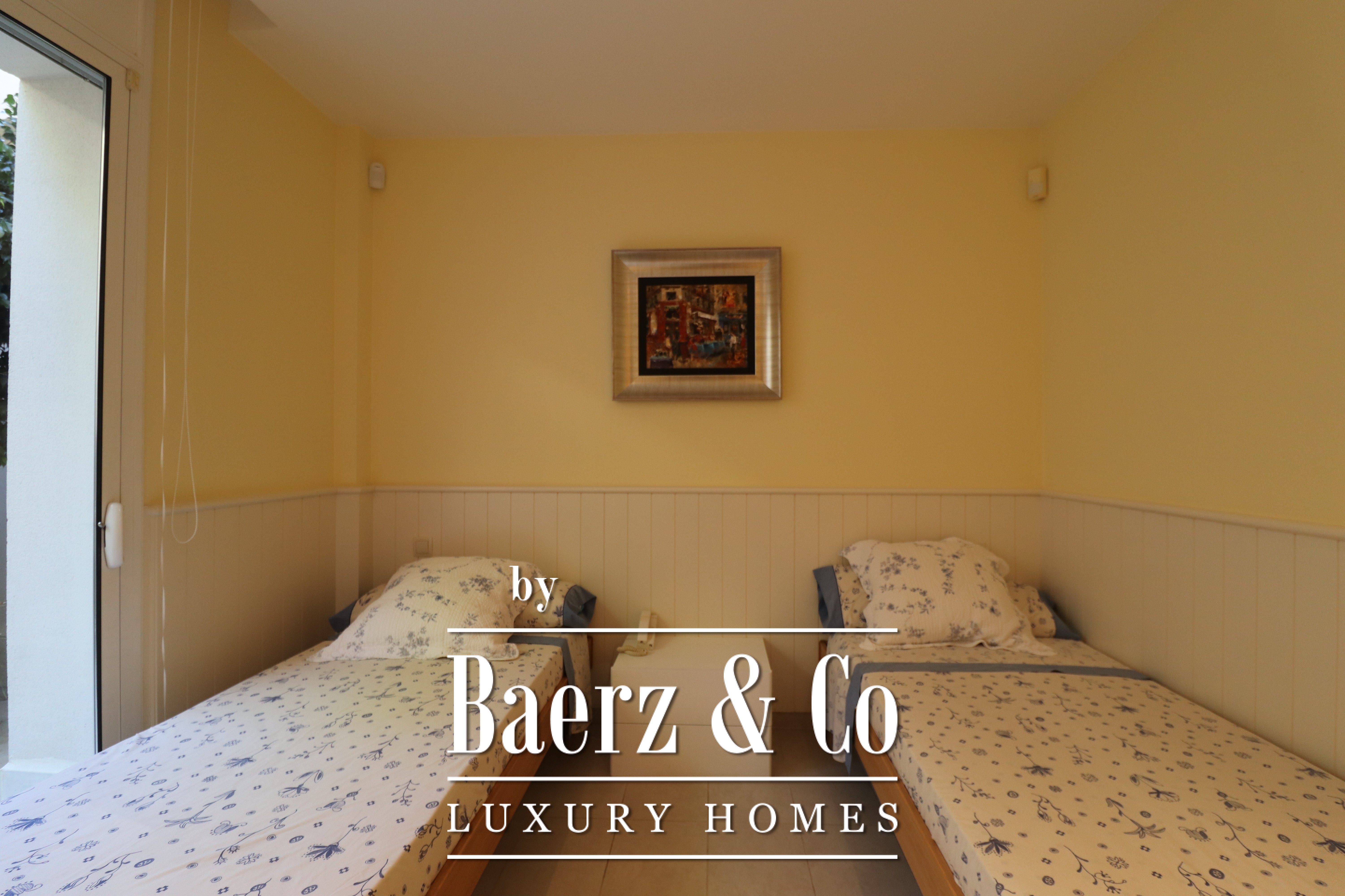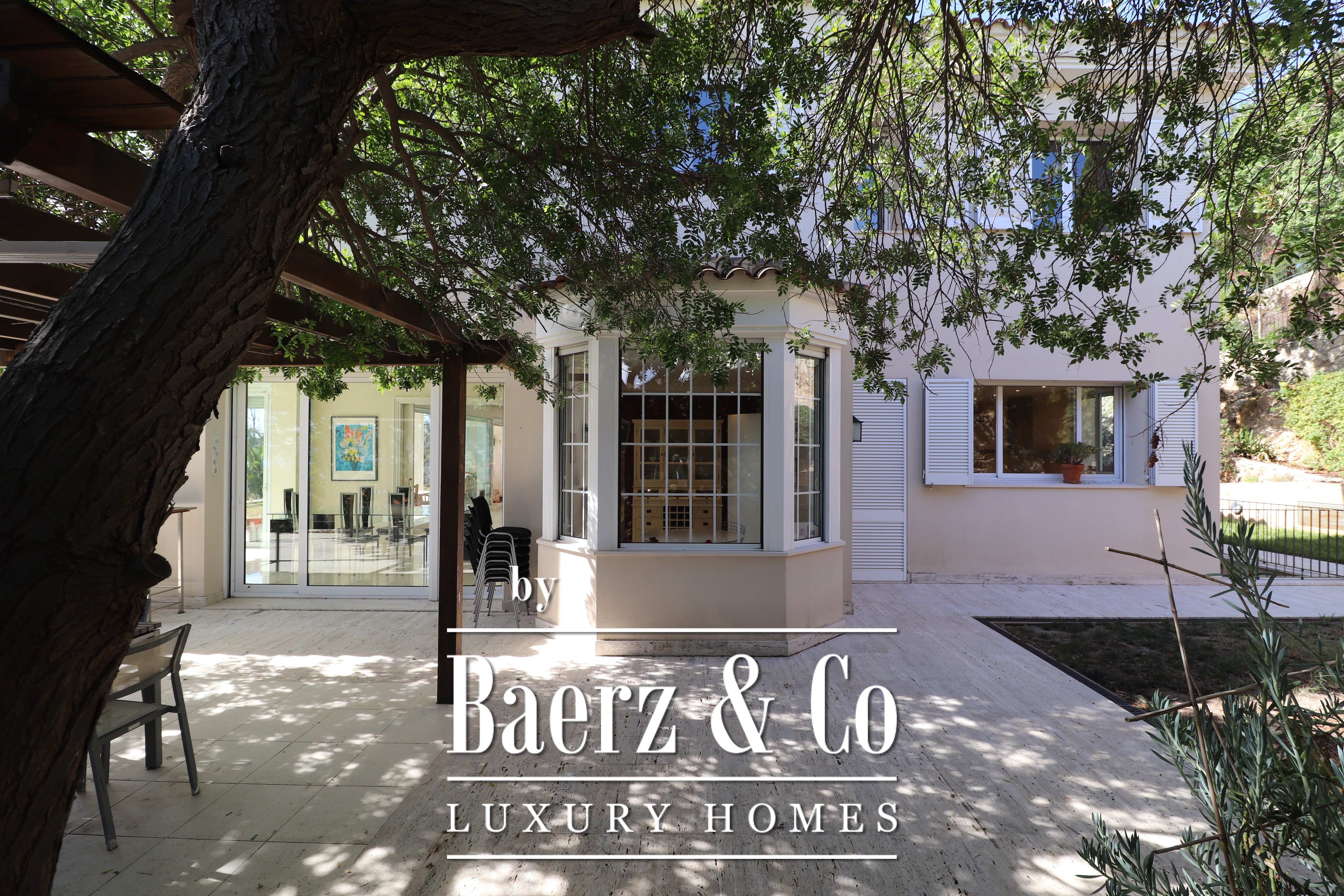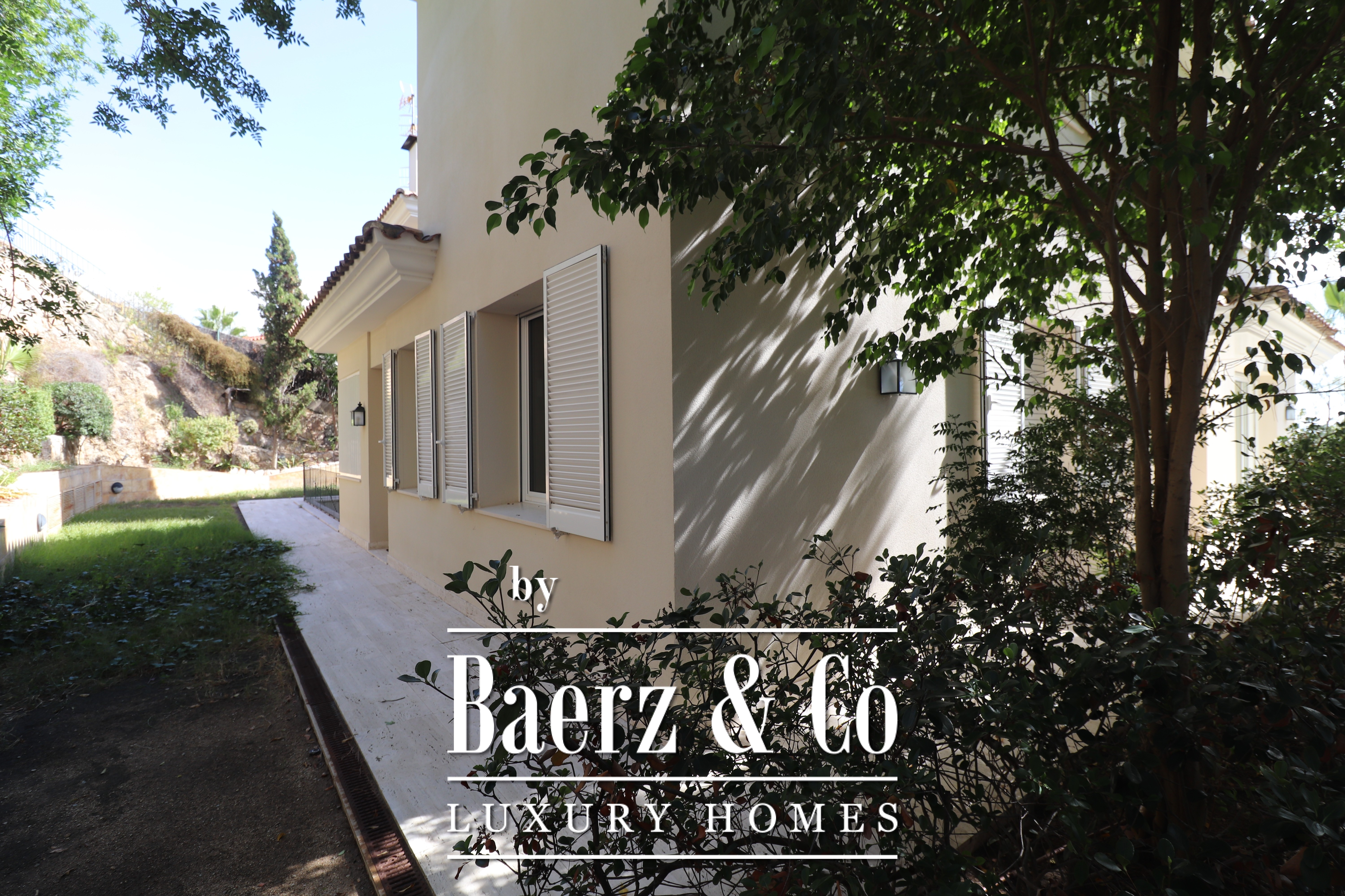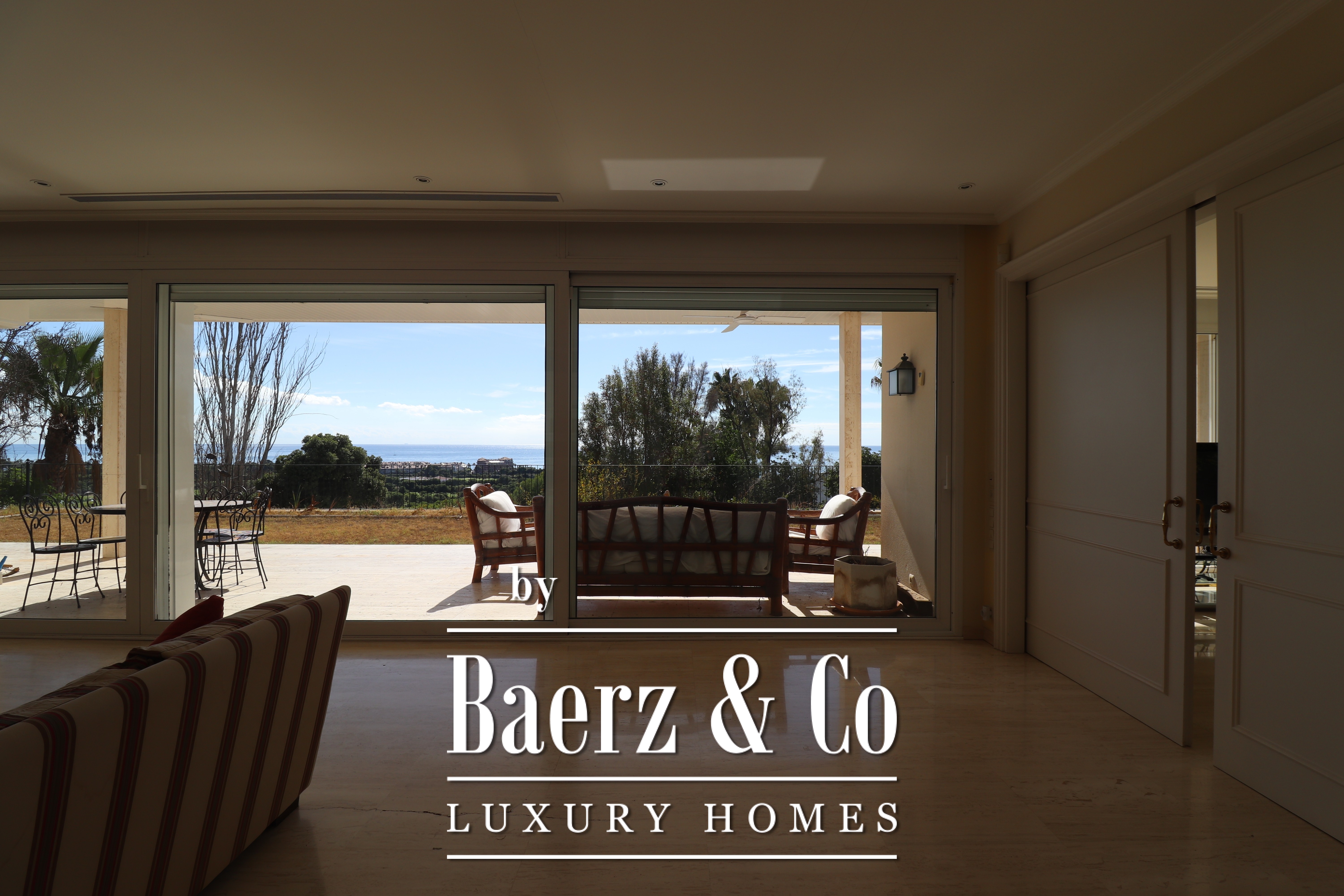 Ontworpen met oog voor discretie en comfort, spreidt de villa zich uit over drie verdiepingen, verbonden door een privé-lift. De hoofdverdieping begint met een stijlvolle entreehal en vloeit over in een open leefruimte met een salon en eetkamer, een mediaruimte, en een volledig uitgeruste keuken met aangrenzende bijkeuken en een dedicated kantoor. Vijf slaapkamers en acht badkamers bieden ruimte aan gezinsleven én grootschalig ontvangen.