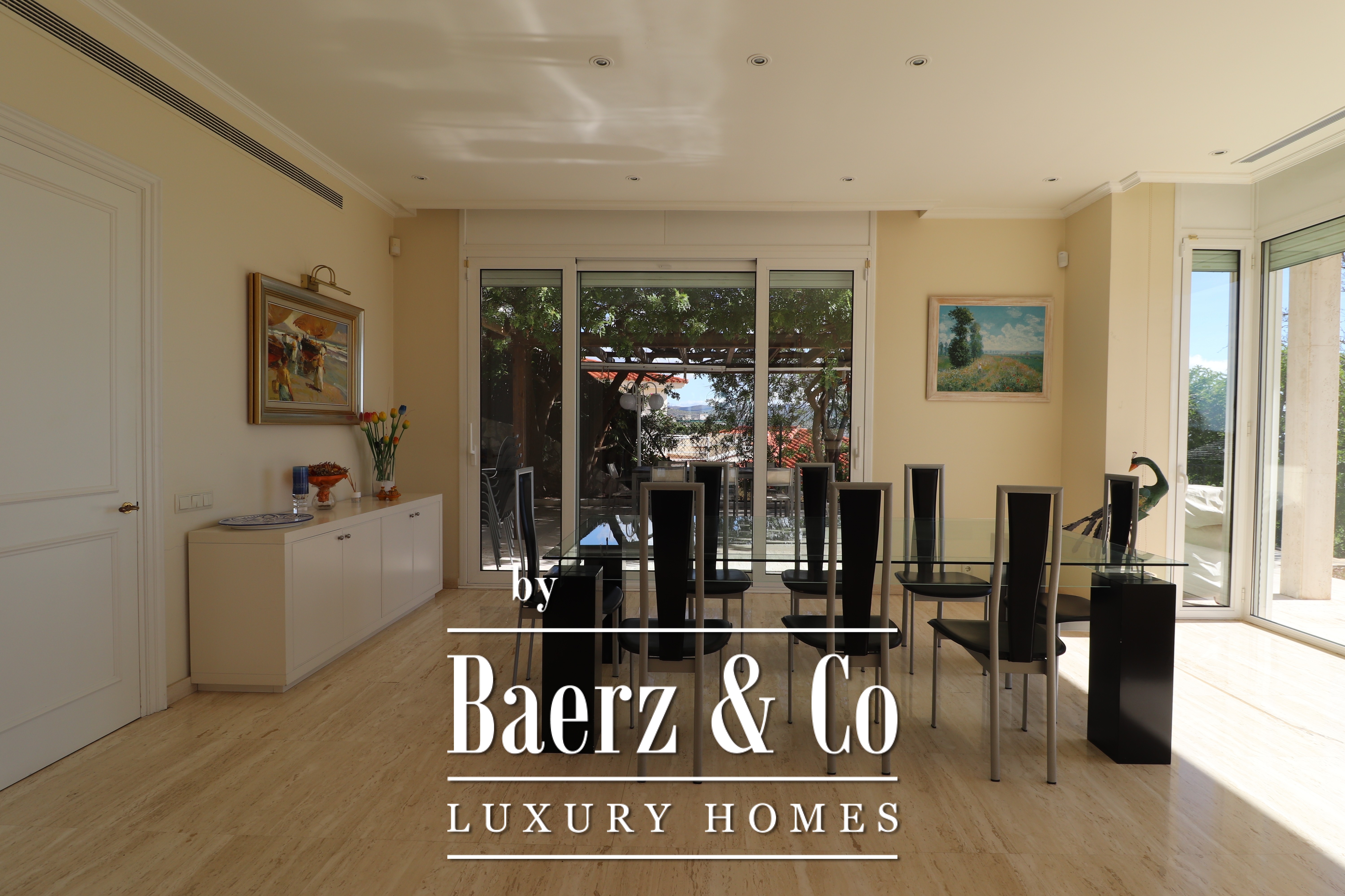 De bovenste verdieping is gericht op rust, met vier suites, elk voorzien van dressing en privéterras tegen het mediterrane decor. De benedenverdieping verrijkt het dagelijks leven met een fitnessruimte, sauna, wijnkelder met eetgedeelte, een extra slaapkamer, wasruimte en een garage met plaats voor acht auto's. Hoogwaardige materialen, marmeren vloeren, luxueuze timmerwerken en subtiele domotica kenmerken elk detail. Op slechts enkele minuten van het centrum van Sitges en de zee biedt deze luxe villa een comfortabel, privé en stijlvol leven.