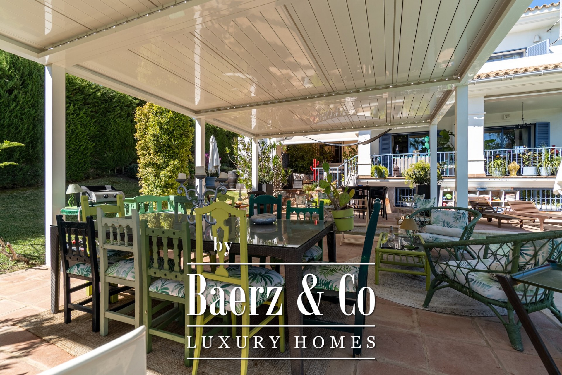 Villa Sotogrande met privézwembad ligt in de zeer gewilde B-zone van Sotogrande Costa en biedt een zeldzame kans op verfijnd gezinsleven op een toplocatie binnen het resort. Gelegen op een perceel van 1.398 m² met een bebouwde oppervlakte van 503 m², combineert deze woning hedendaagse architectuur met weelderige tuinen en de rust van een gevestigde gemeenschap.