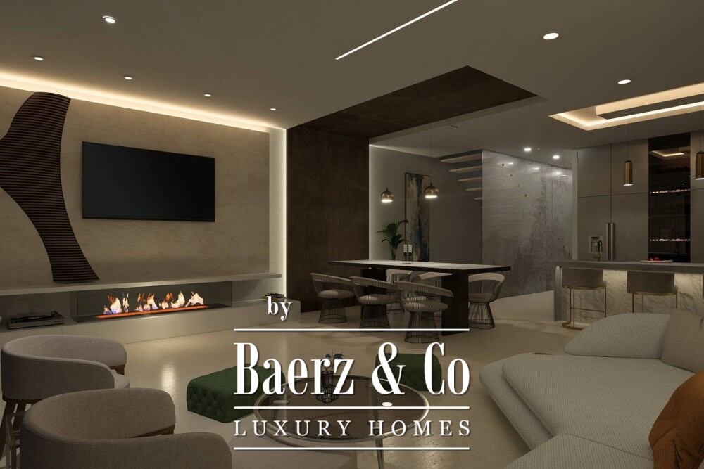 Elke verdieping biedt een genuanceerde beleving. De hoofdwoonruimte kenmerkt zich door een vloeiende verbinding tussen de keuken, eetkamer en woonkamer en opent naar een balkon dat het interieur richting de horizon verlengt. Vier slaapkamers en vier badkamers, waaronder master suites van 38 m² en 30 m², zijn elk uitgerust met open badkamers, inloopdouches, garderobes en directe toegang tot het terras.