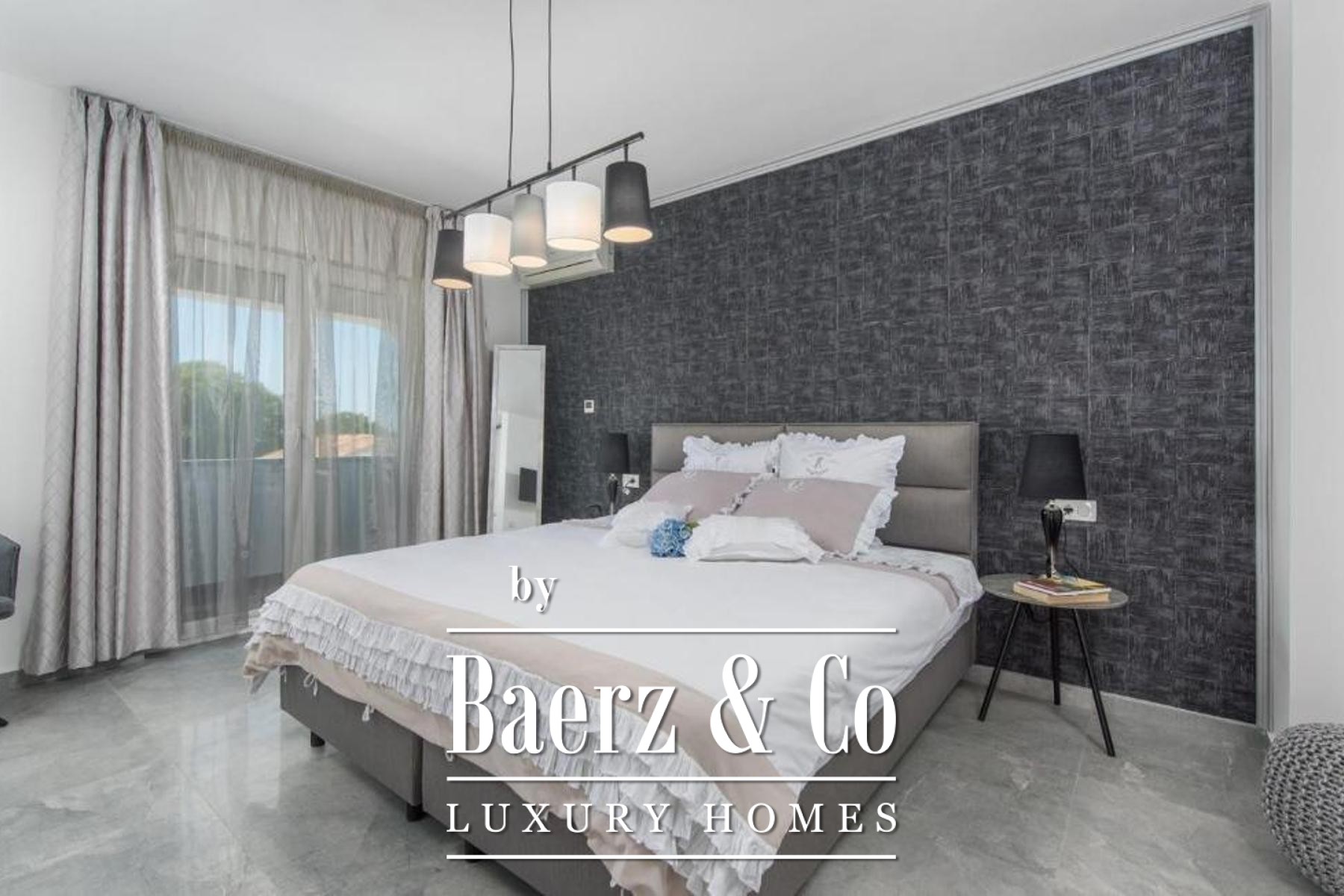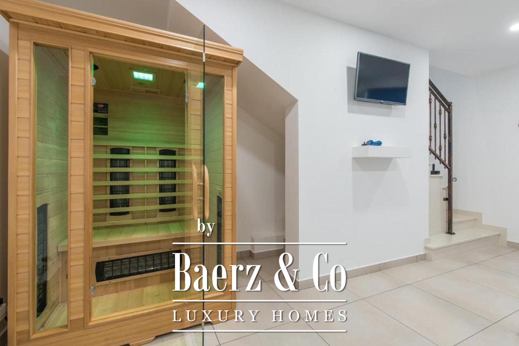 De begane grond verbindt royaal het interieur met het buitenleven en biedt een zwembad van 30 m², jacuzzi, twee overdekte terrassen en een woonkamer die naadloos overgaat in de tuin. De keuken en eetkamer hebben een eigen terras en nodigen uit tot samenzijn in zon of schaduw. In het souterrain bevinden zich een fitnessruimte en sauna voor ontspanning en welzijn. Op de eerste verdieping bieden drie slaapkamers en drie badkamers toegang tot het terras met rustgevend uitzicht op de omliggende natuur en de verre zee. De zolder beschikt over twee extra slaapkamers en twee badkamers, waardoor privacy voor gasten of familieleden is gegarandeerd. Een mezzanine heeft een slaapkamer met eigen badkamer voor extra comfort.