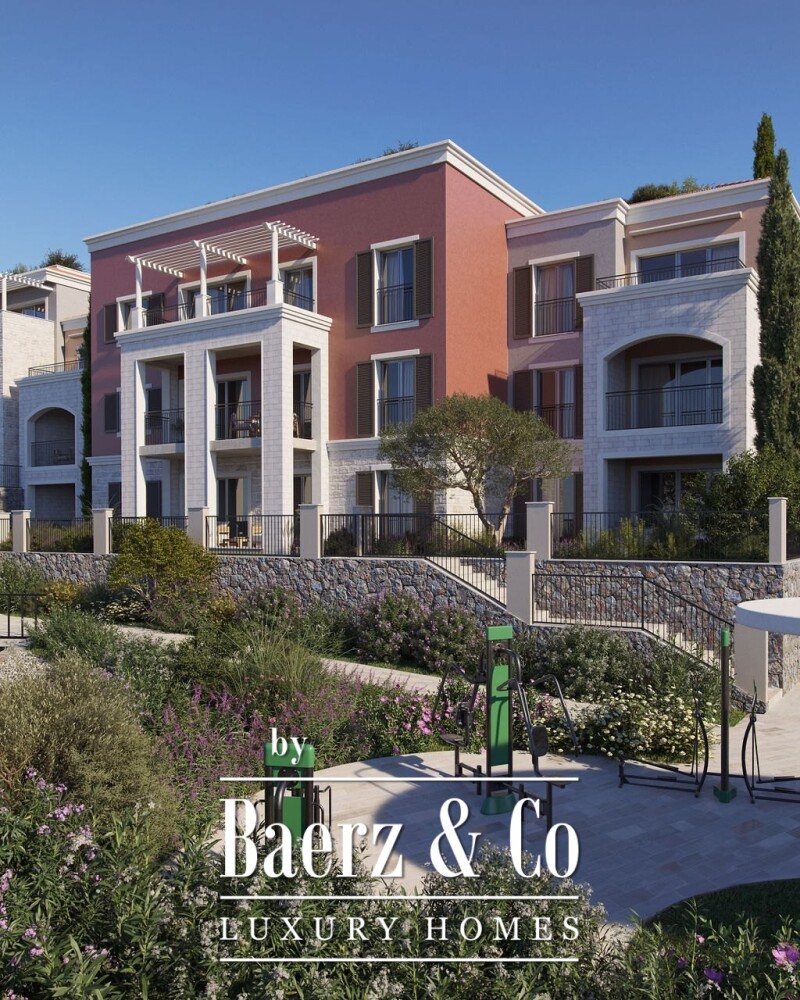 Gemeenschappelijke, fraai aangelegde tuinen met lavendel en olijfbomen, een privézwembad en een exclusieve fitness- en yogazone nodigen uit tot het rustige ritme van de Middellandse Zee. De Adriatische Zee ligt op 1,5 km afstand; de luchthavens van Tivat en Podgorica zijn eenvoudig bereikbaar. Oplevering is gepland voor december 2027 en biedt een veilige toevlucht met alle hedendaagse voorzieningen.