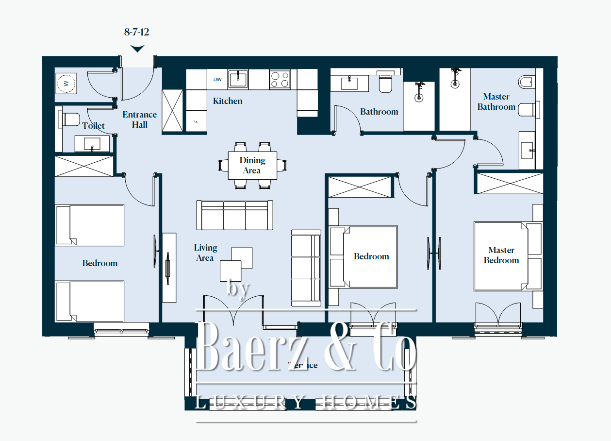De indeling ondersteunt zowel harmonie als privacy met drie slaapkamers, twee badkamers, een aparte toiletruimte en een open leef- en eetgedeelte. Vloer-tot-plafond garderobekasten, maatwerk Nolte keukens met volledig geïntegreerde apparatuur en badkamers met vloerverwarming benadrukken het doordachte karakter van dagelijks comfort. De lucht stroomt geruisloos via een tochtvrij systeem, terwijl een video-intercom toegang en privacy waarborgt.