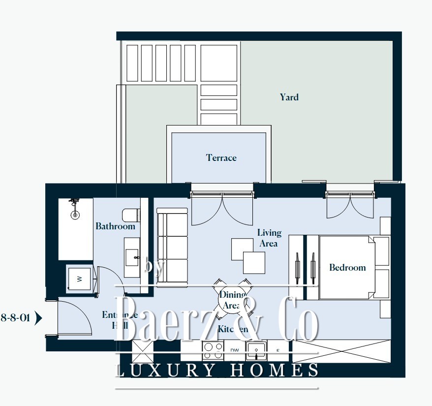 De woning meet 44 m² en beschikt over een terras van 23 m² omvatten een woonkamer met bed, keuken, eetgedeelte en een badkamer. Oplevering staat gepland voor december 2027. Bewoners hebben naadloos toegang tot gastronomische restaurants, een selectie aan boetieks en supermarkten, stijlvolle beachclubs en wellnessvoorzieningen die voldoen aan wereldwijde standaarden.