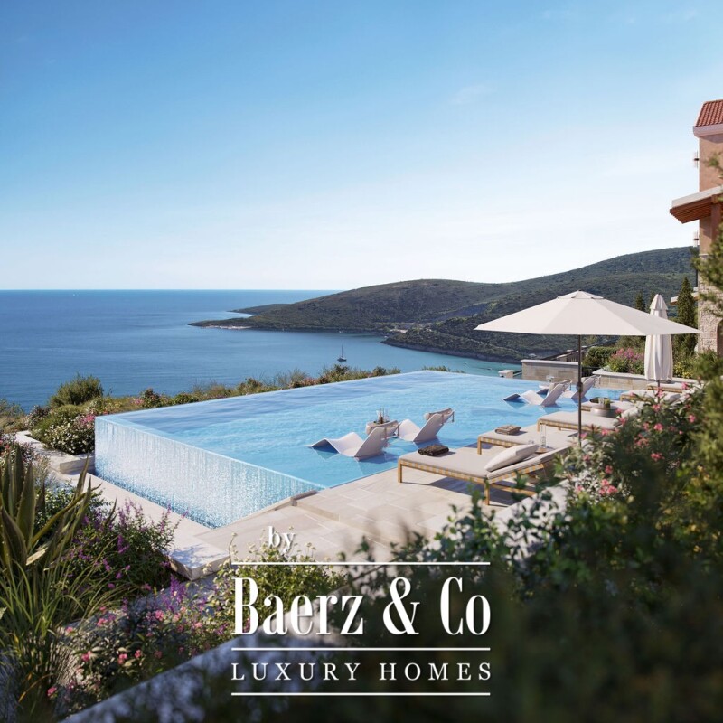 Appartement in Tivat met uitzicht op zee en bergen biedt een doordachte balans tussen privacy, hoogte en ononderbroken panoramische vergezichten. Met 40 m² woonoppervlakte beschikt de woning over drie slaapkamers en twee badkamers, ontworpen voor een verfijnde en moeiteloze levensstijl. Ruime terrassen en infinity zwembaden halen het buitenleven naar binnen, terwijl de aangelegde tuinen een rustgevend ritme creëren bij de weidse uitzichten.