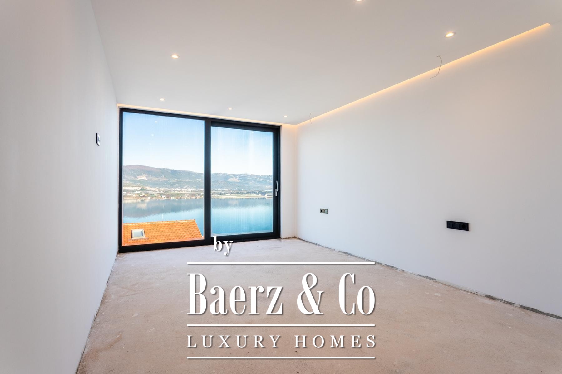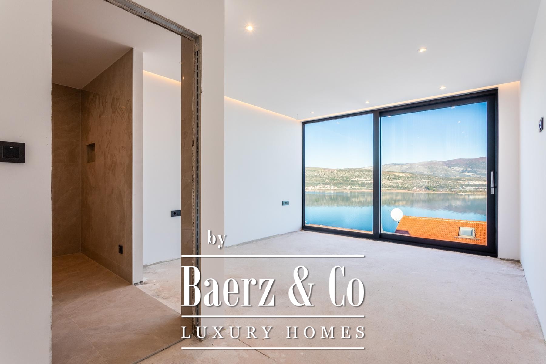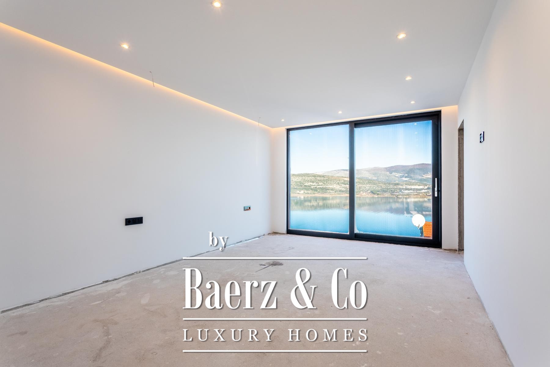 Een gang, gastentoilet met wasfaciliteiten en een multifunctionele kamer—geschikt als kantoor, fitnessruimte of speelkamer—maken de doordachte indeling van het hoofdverdiep compleet. Op de eerste verdieping beschikken drie slaapkamers elk over een en-suite badkamer en volledige beglazing, waardoor er overal een panoramisch uitzicht op de Adriatische Zee is.