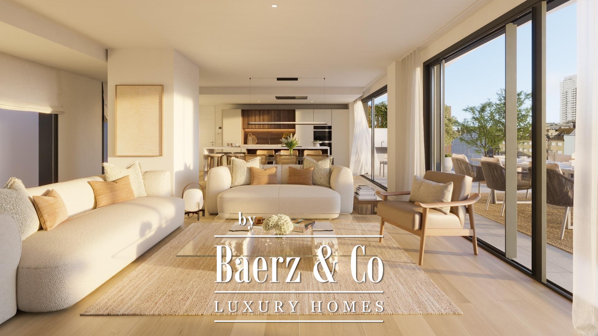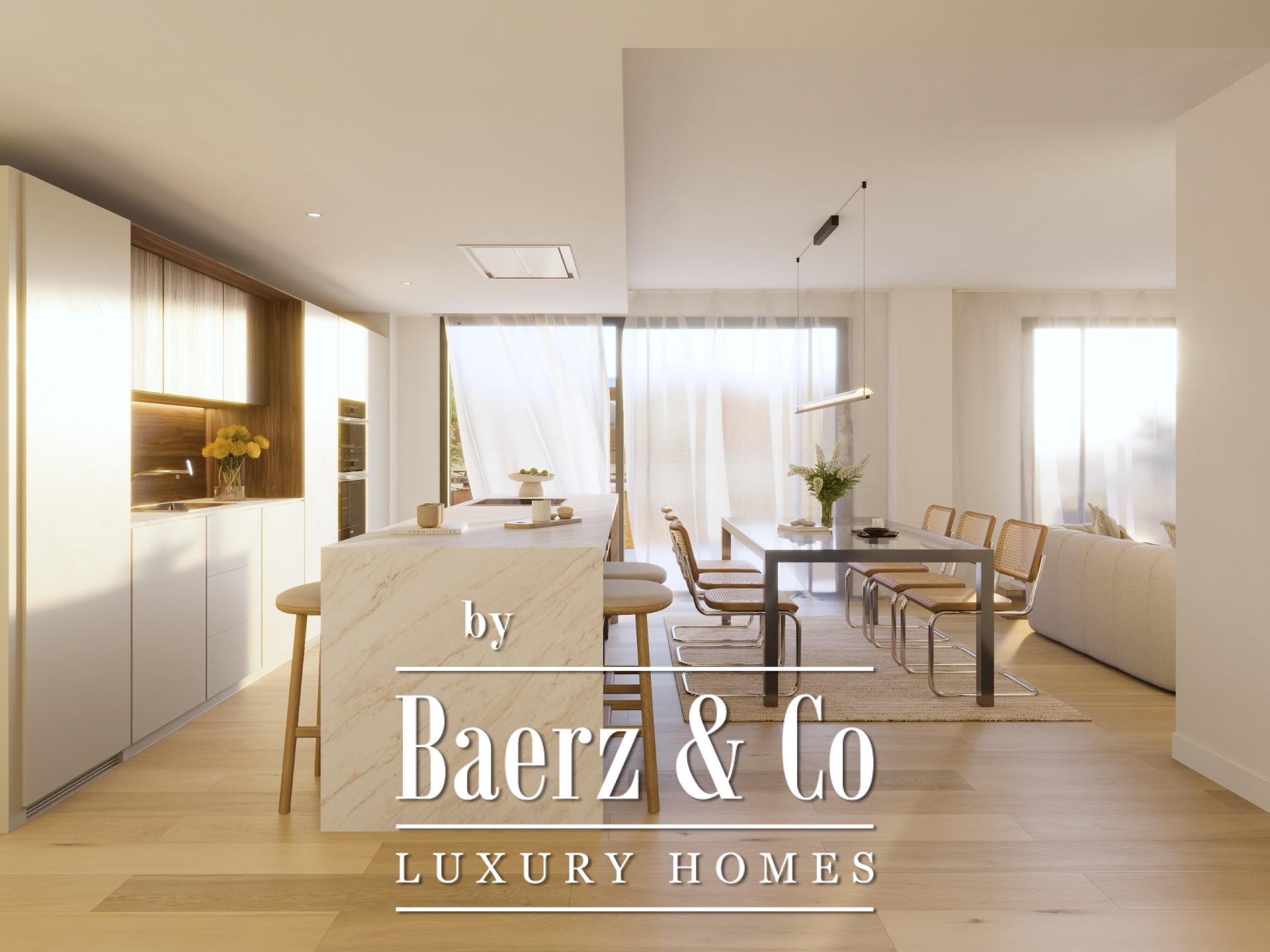 Drie slaapkamers en twee badkamers zijn uitgevoerd met verfijnde materialen, van Porcelanosa-bekleding tot vloerverwarming die het hele jaar door voor comfort zorgt. De hoogwaardige Santos-keuken integreert apparatuur discreet, waarmee de constante kwaliteit van de gehele woning wordt doorgezet. Voorzieningen zijn onder meer een privégarage, berging, fitnessruimte, zoutwaterzwembaden voor volwassenen en kinderen, en een sociëteit, ondersteund door een conciërge. De BREEAM-certificering onderstreept de inzet voor duurzaamheid en bouwkundige perfectie.
