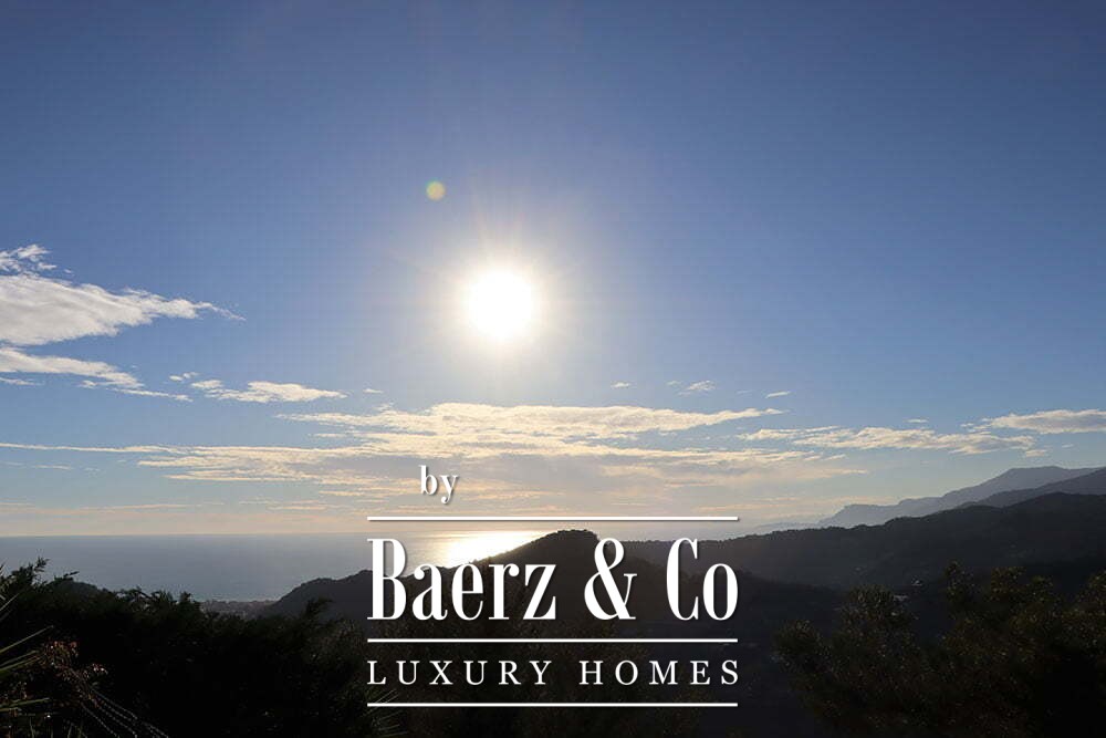 Bij binnenkomst presenteert de bovenste verdieping een royale woonkamer die uitkomt op een overdekt terras, met ongehinderd uitzicht over de Middellandse Zee en de vallei. Op dit niveau bevinden zich twee slaapkamers, elk met en-suite badkamer, terwijl de hoofdsuite beschikt over een privé inloopkast. Op de benedenverdieping biedt een ruime garage plaats aan meerdere voertuigen, en een ruim atelier of kantoor is naadloos geïntegreerd in het geheel van de woning.